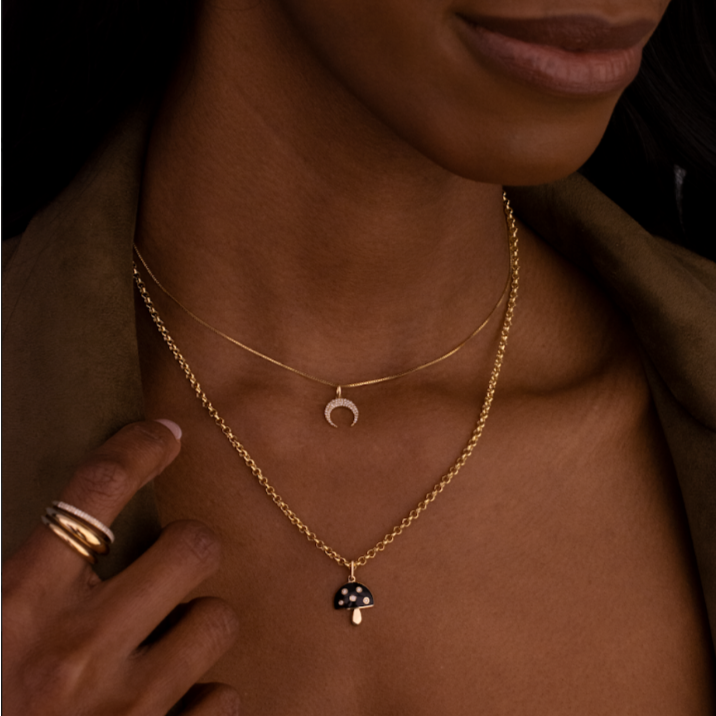 Mushrooms represent re-birth and transformation during a time of stillness. Celebrate your transformation with our black enamel diamond and pendant.