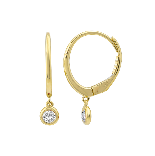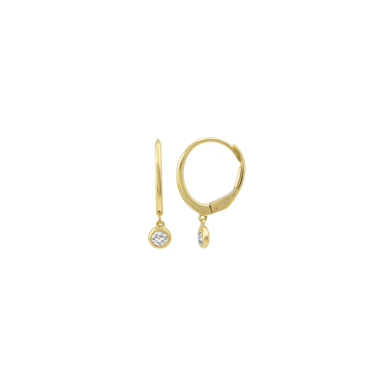 14k Yellow Gold Diamond EarringsSold as a pair Dimensions: Lever back: 12mm / Bezel: 3.5mm / Stone: Approx. 2.3~2.4mm