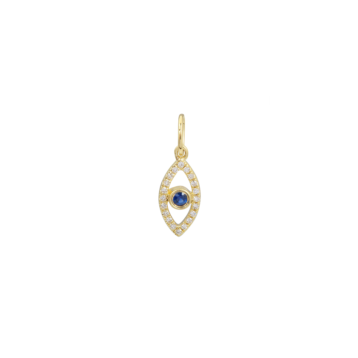 14k Yellow Gold Evil Eye Diamond and Blue Sapphire Necklace