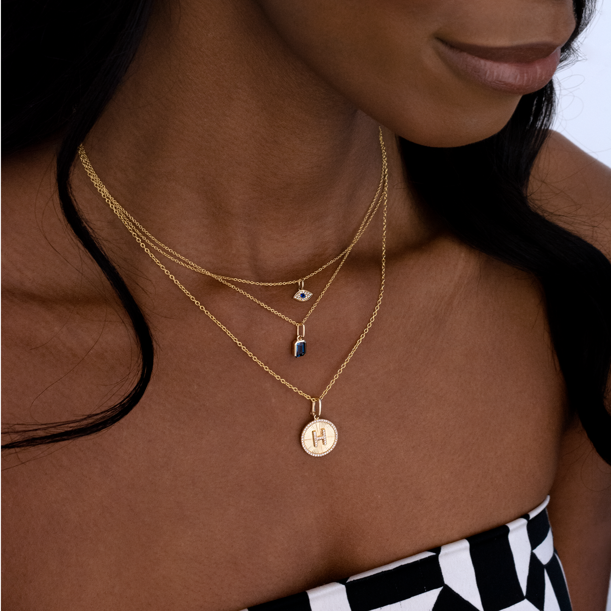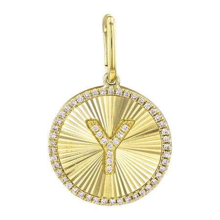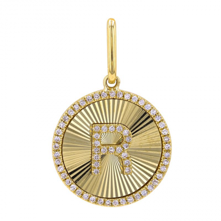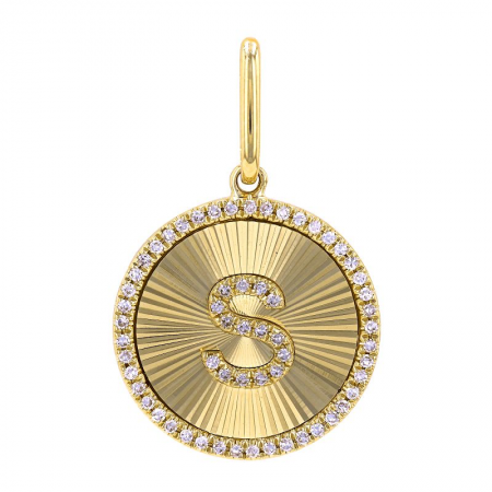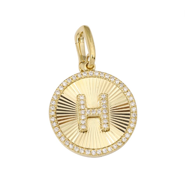 Our 14k Fluted Gold and Diamond Initial Medallion Necklace includes a 45 pave diamond halo, that surrounds the diamond initial of your choice.