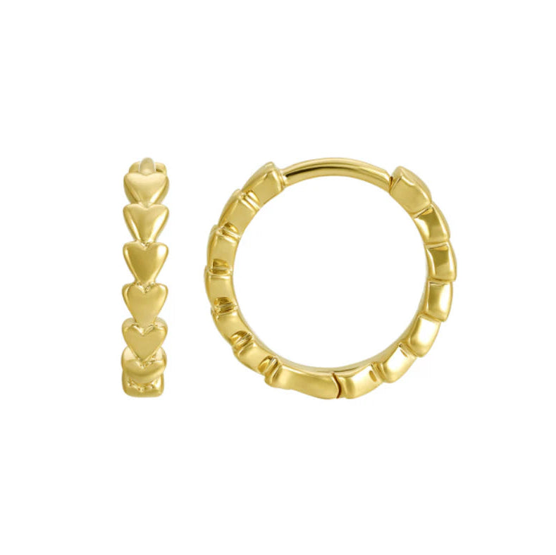 14k Yellow Gold Forever Heart Huggie Hoop Earrings