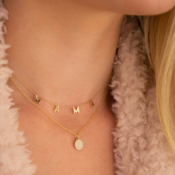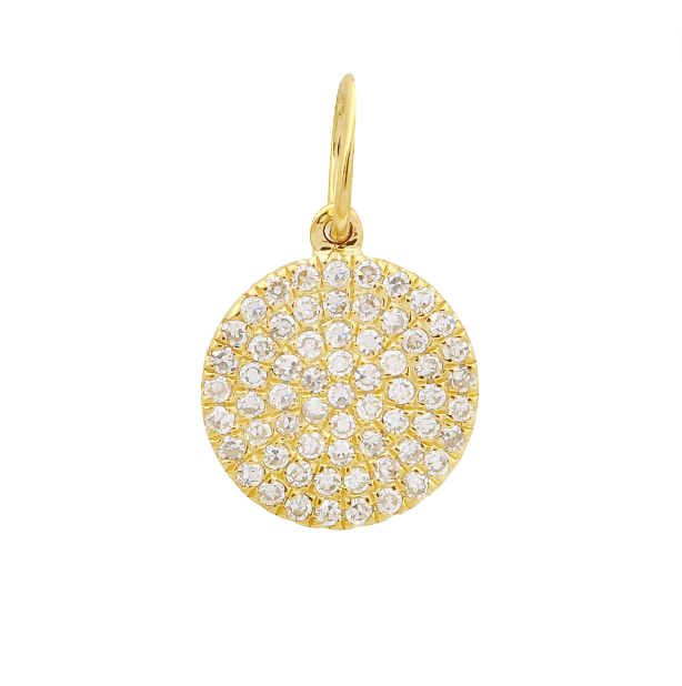 14k Yellow Gold Pave Diamond Disc Necklace.