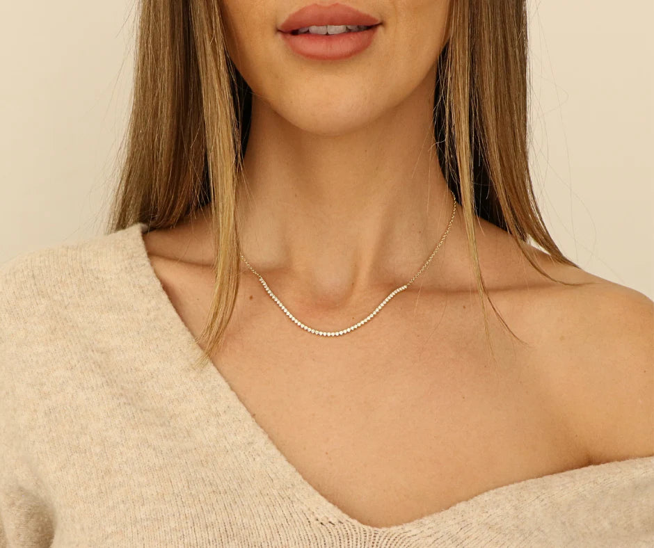 Inspired by Makalu’s bold, rugged landscape, this Half Diamond Tennis Necklace pairs sleek 14k yellow gold with a brilliant row of natural diamonds.