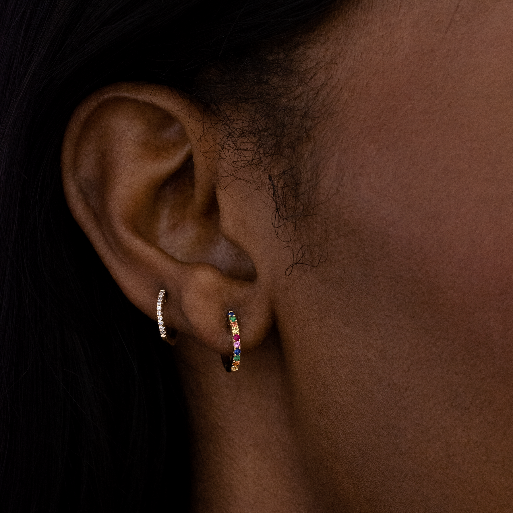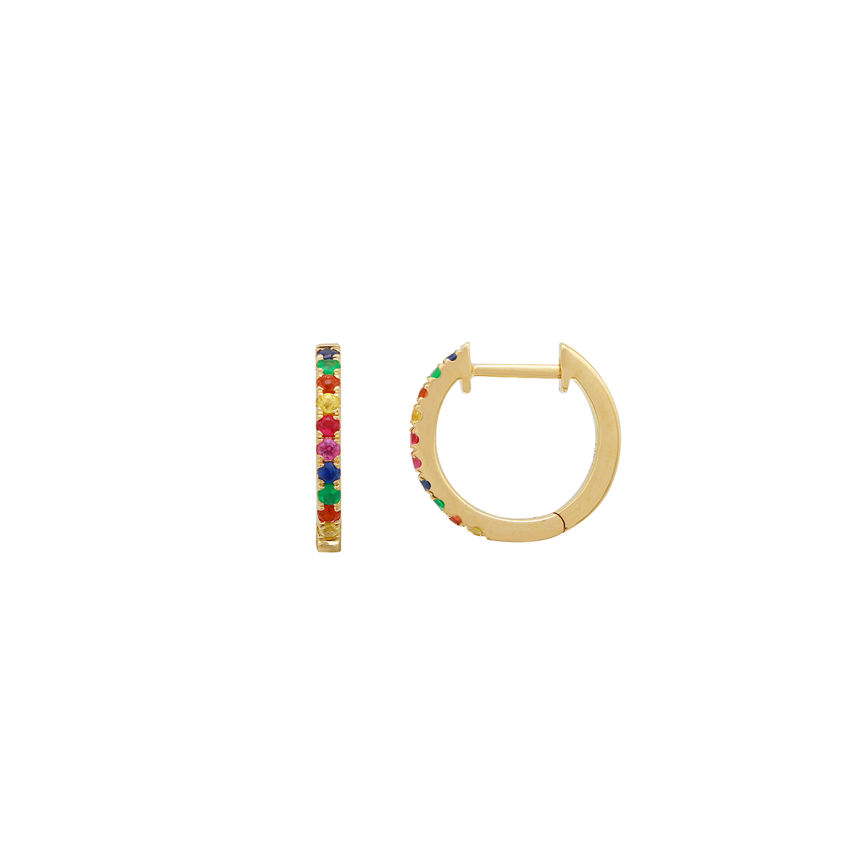 Spice up your classic diamond huggies with these Rainbow Multi Sapphire Huggie Earrings
