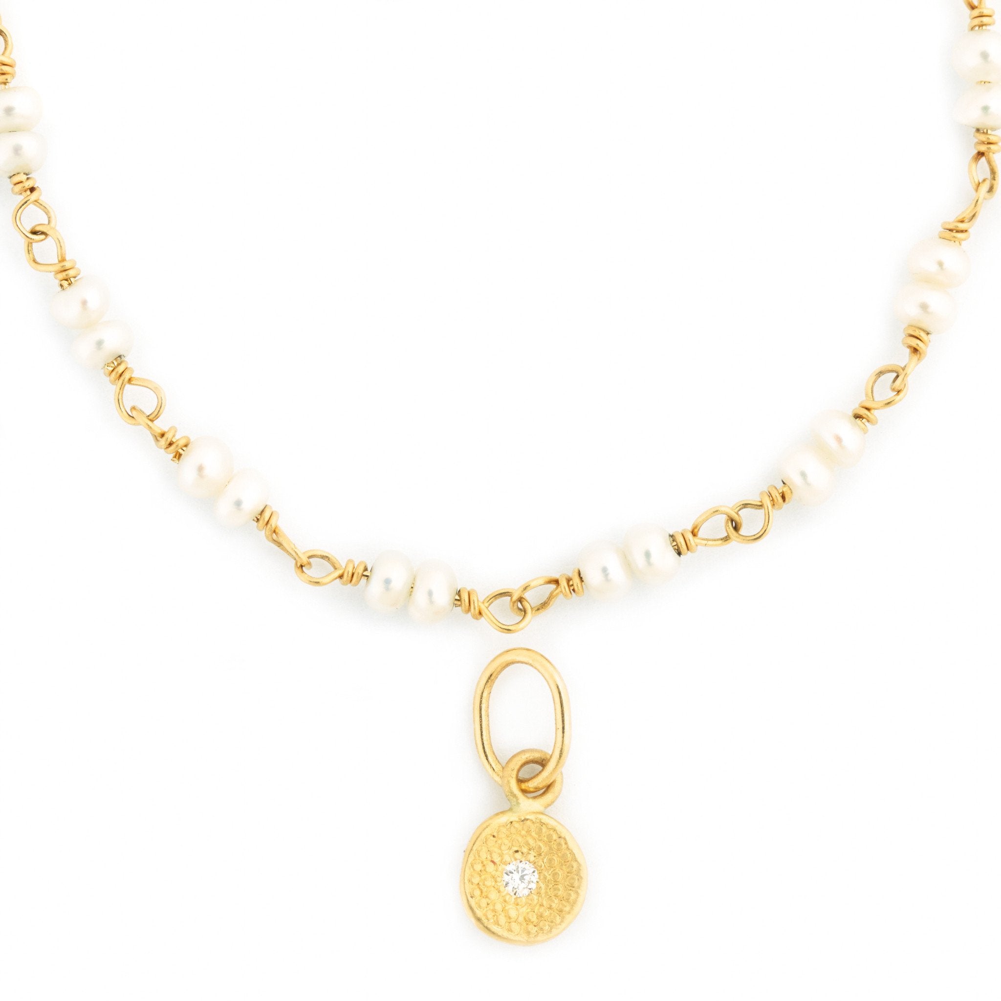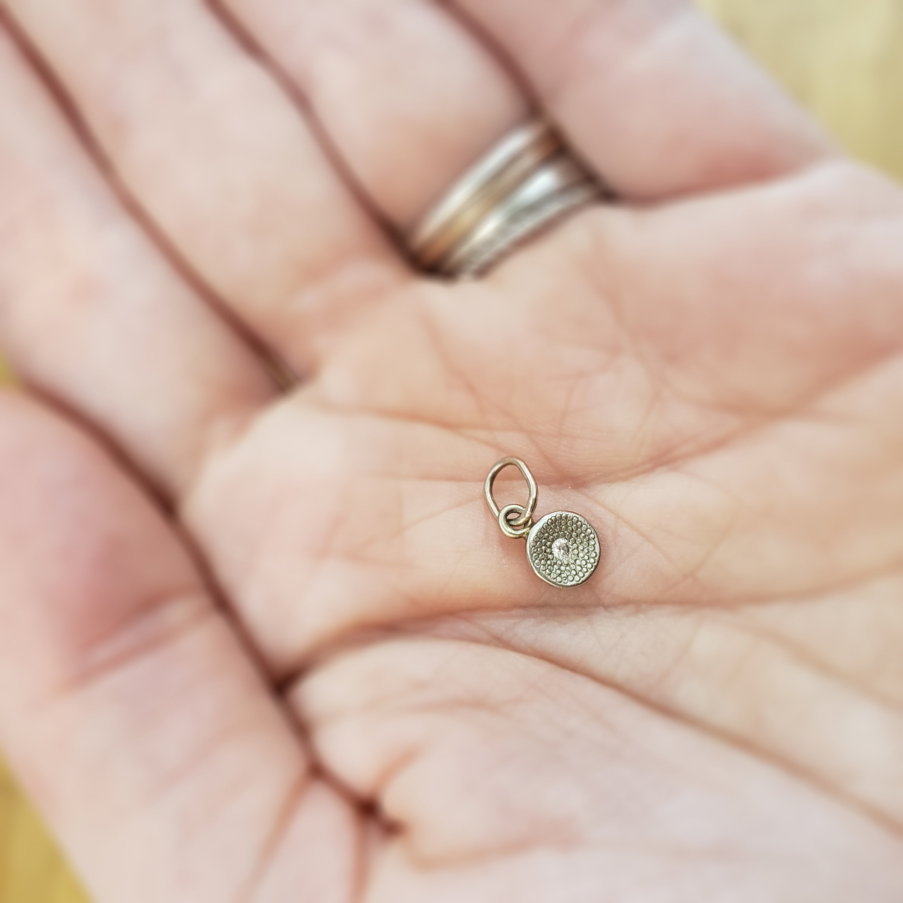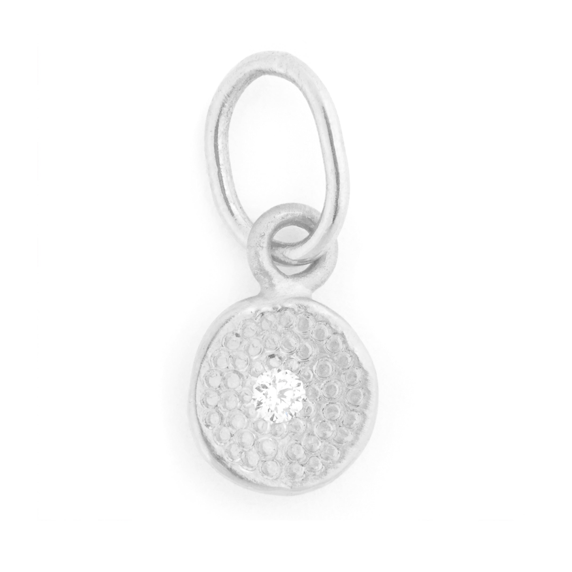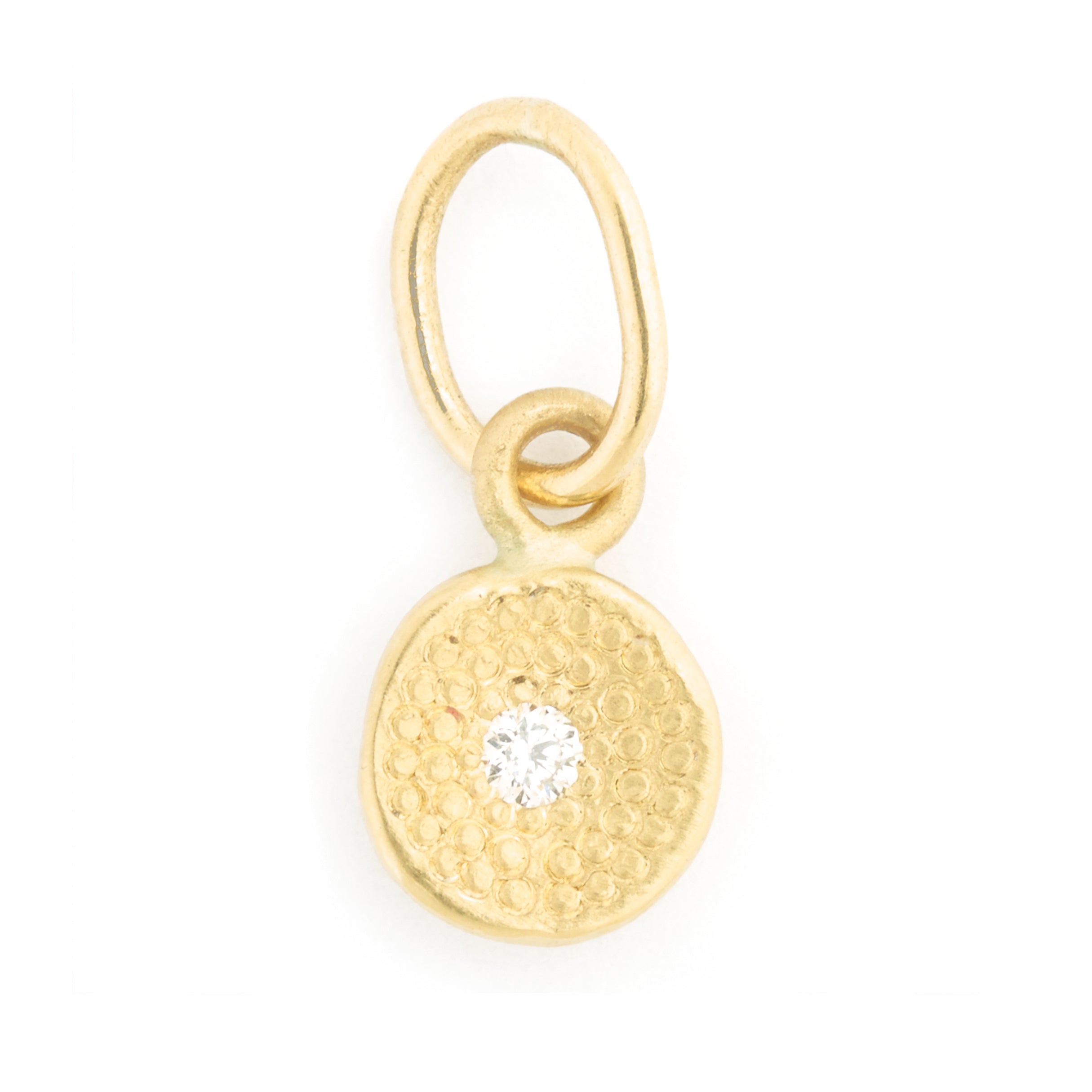 This darling charm from the Anne Sportun Charm Collection is the perfect addition to your favorite bracelet or necklace. Signature Stardust texture and single center diamond lend an understated elegance to your every day look. ~0.02 total carat weight. Dimensions ~6mm.