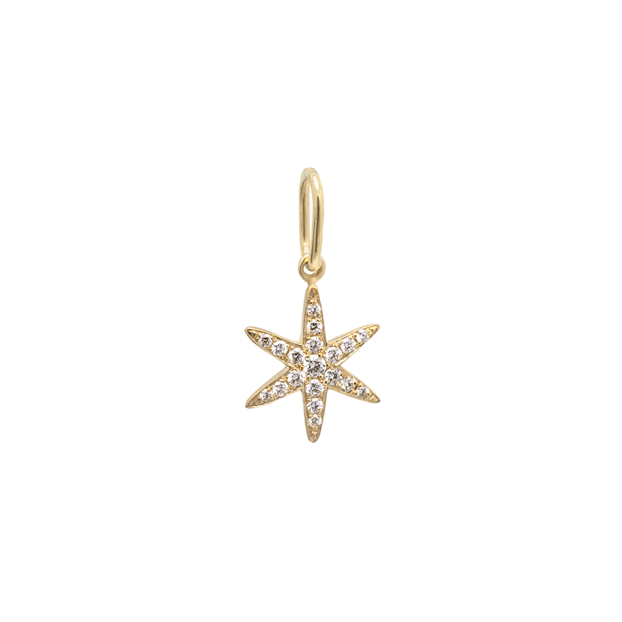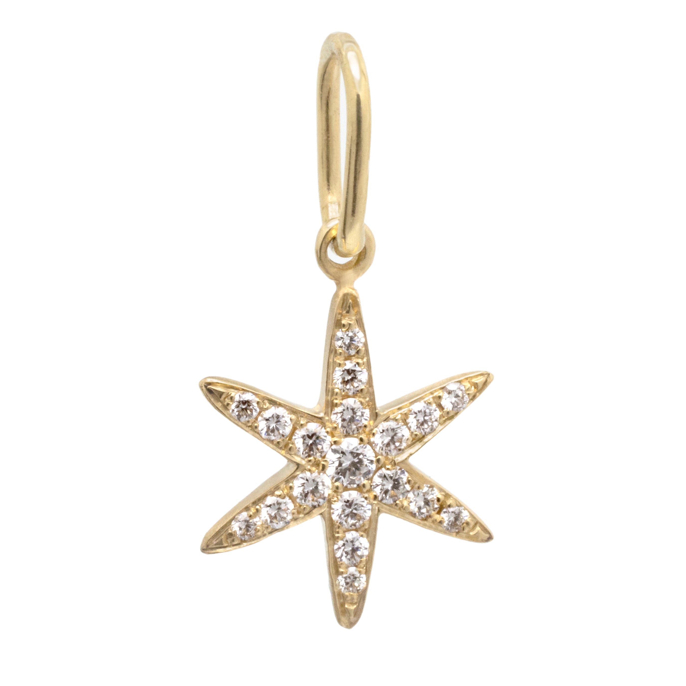 Gold star charm with graduating diamond sizes on one side ~0.093 total carat weight.