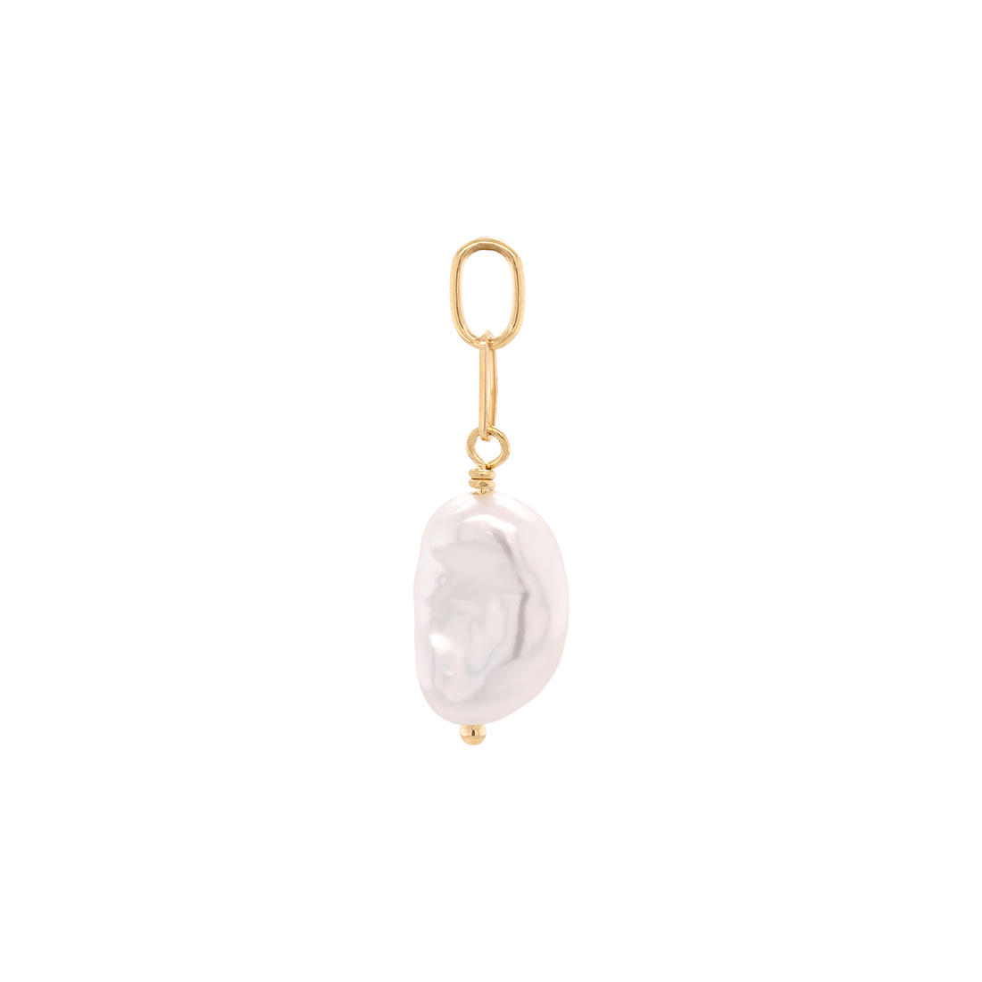 An elegant way to some drama to your charm stack: The Large Baroque Pearl Charm with Paperclip link detail.