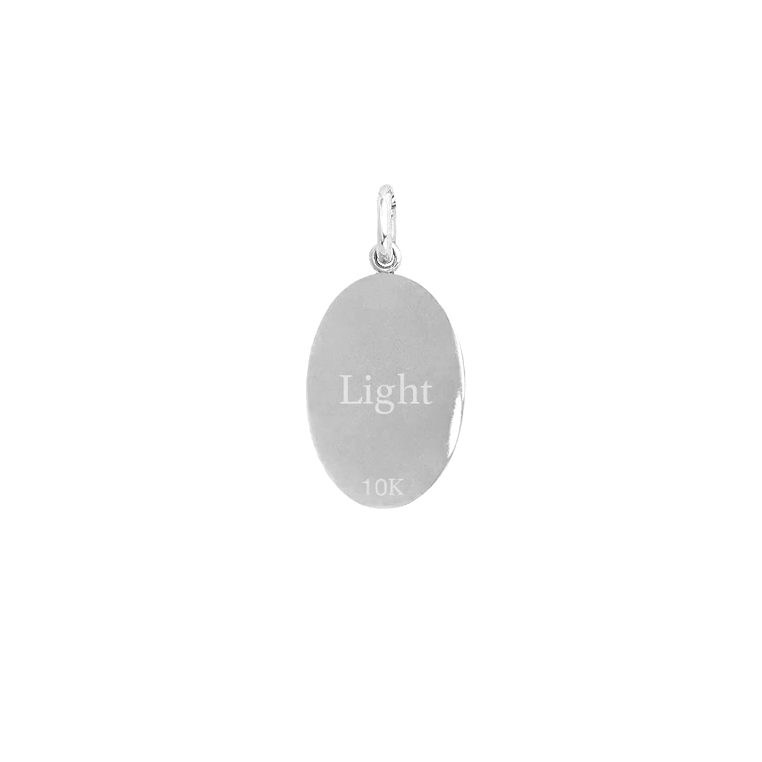 Pendant measures 12mm long x 9mm wide x 2mm thick.
