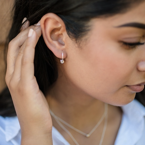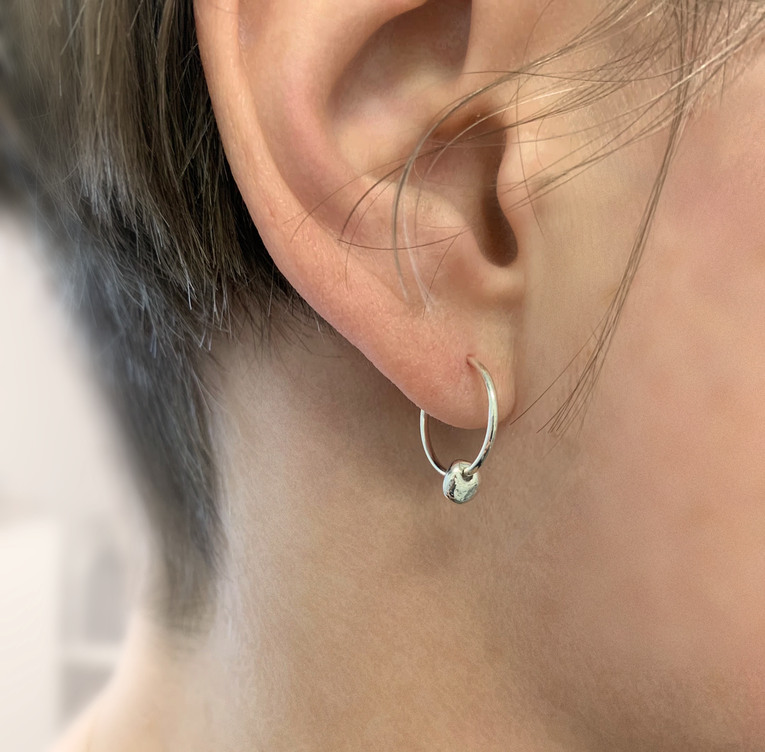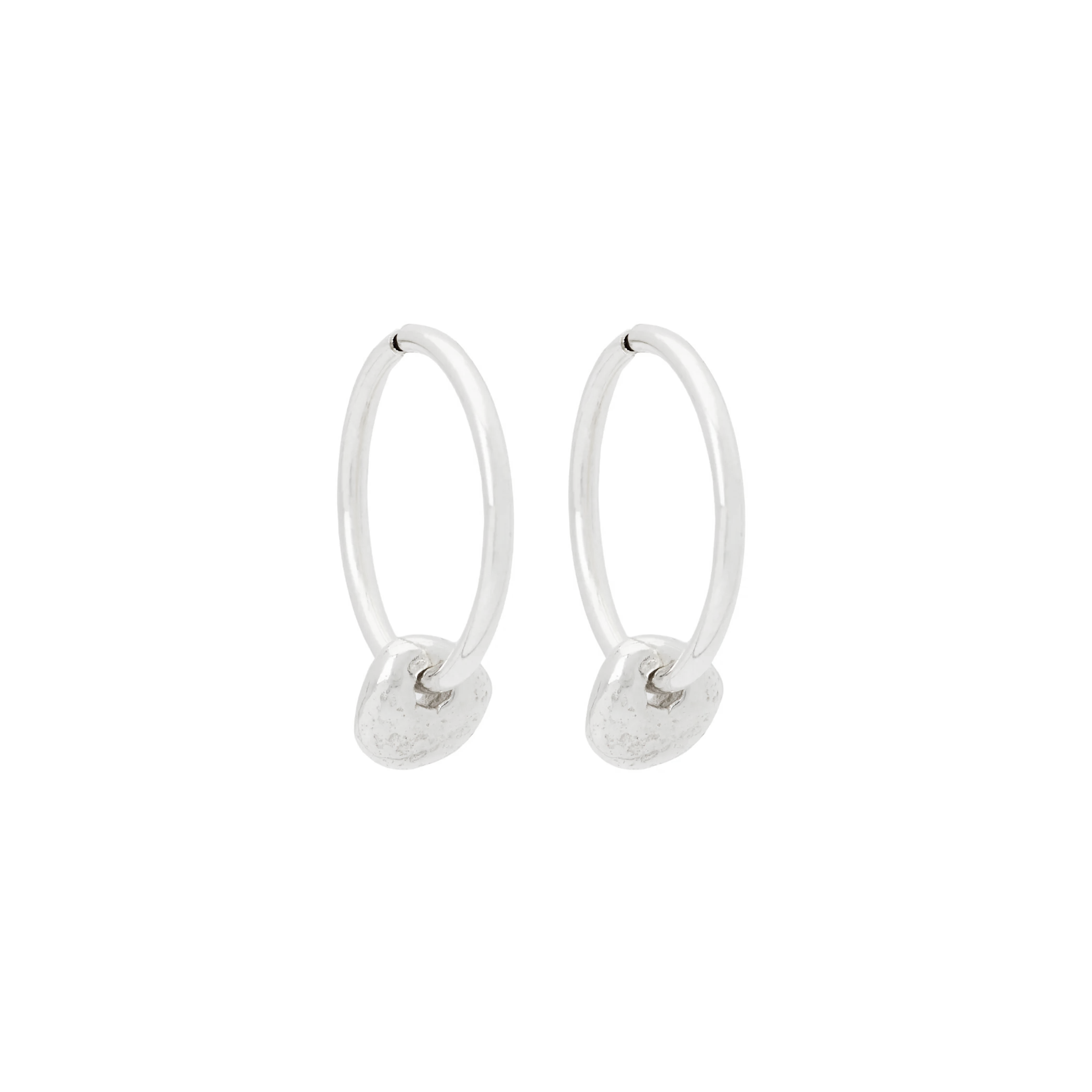 A pair of stunning sleep hoops featuring a little dangling lucky stone named chip.