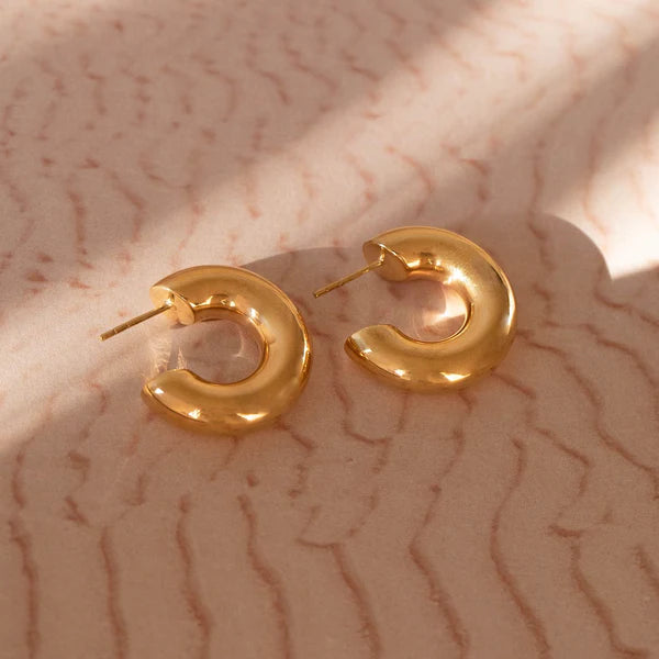 A bold hoop that won't weigh you down, or in our opinion a Saturday night staple! The Rhodes Hoops are our boldest hoop yet, made with hollow tubing to keep them super lightweight. An effortless choice on their own, or the perfect finale for any ear stack.
