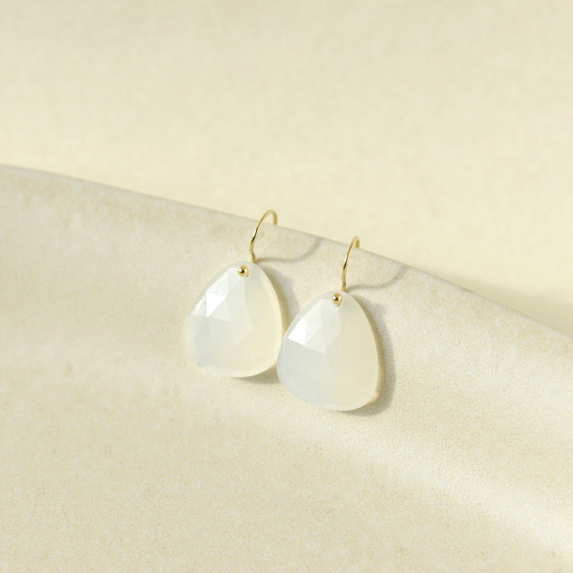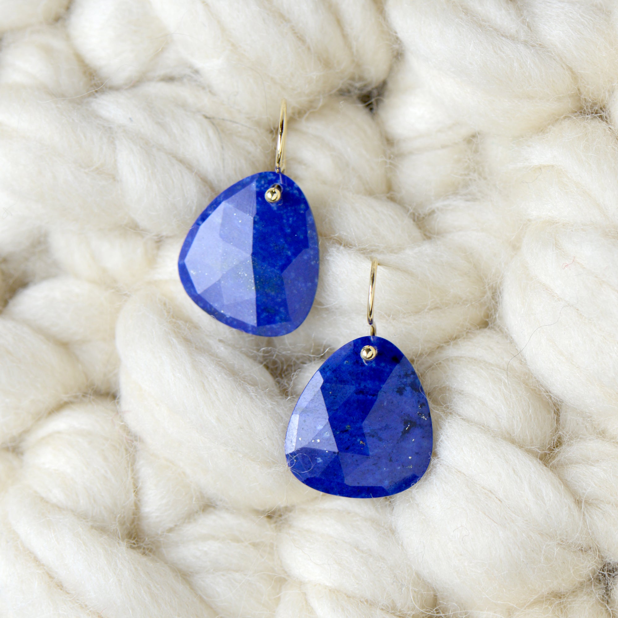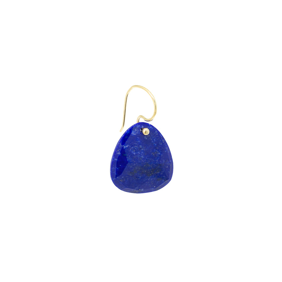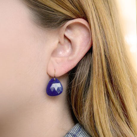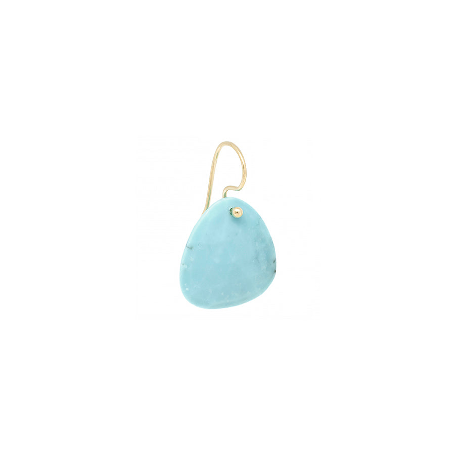 Gold earring with trillium shaped blue-green turquoise, lapis, or moonstone drop
