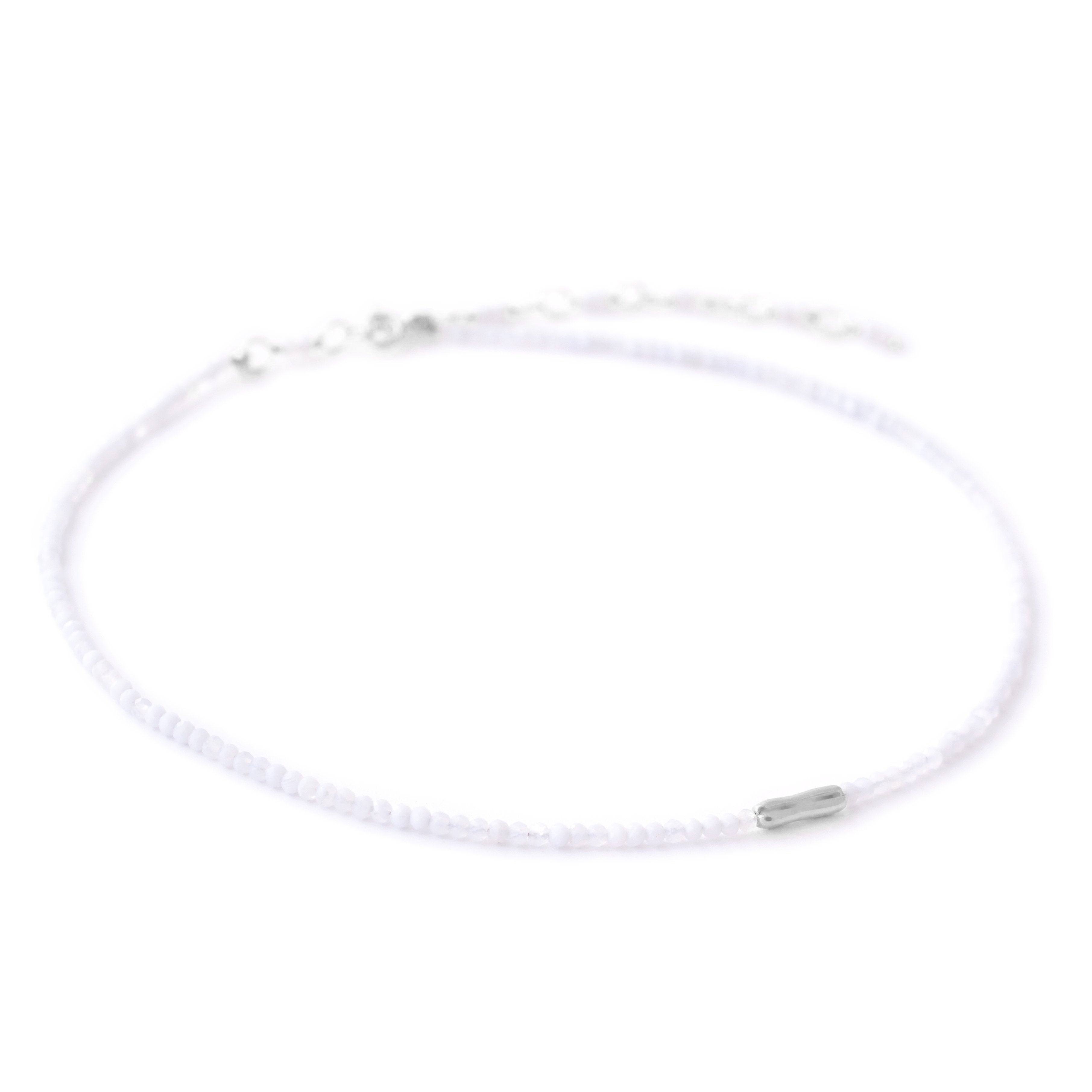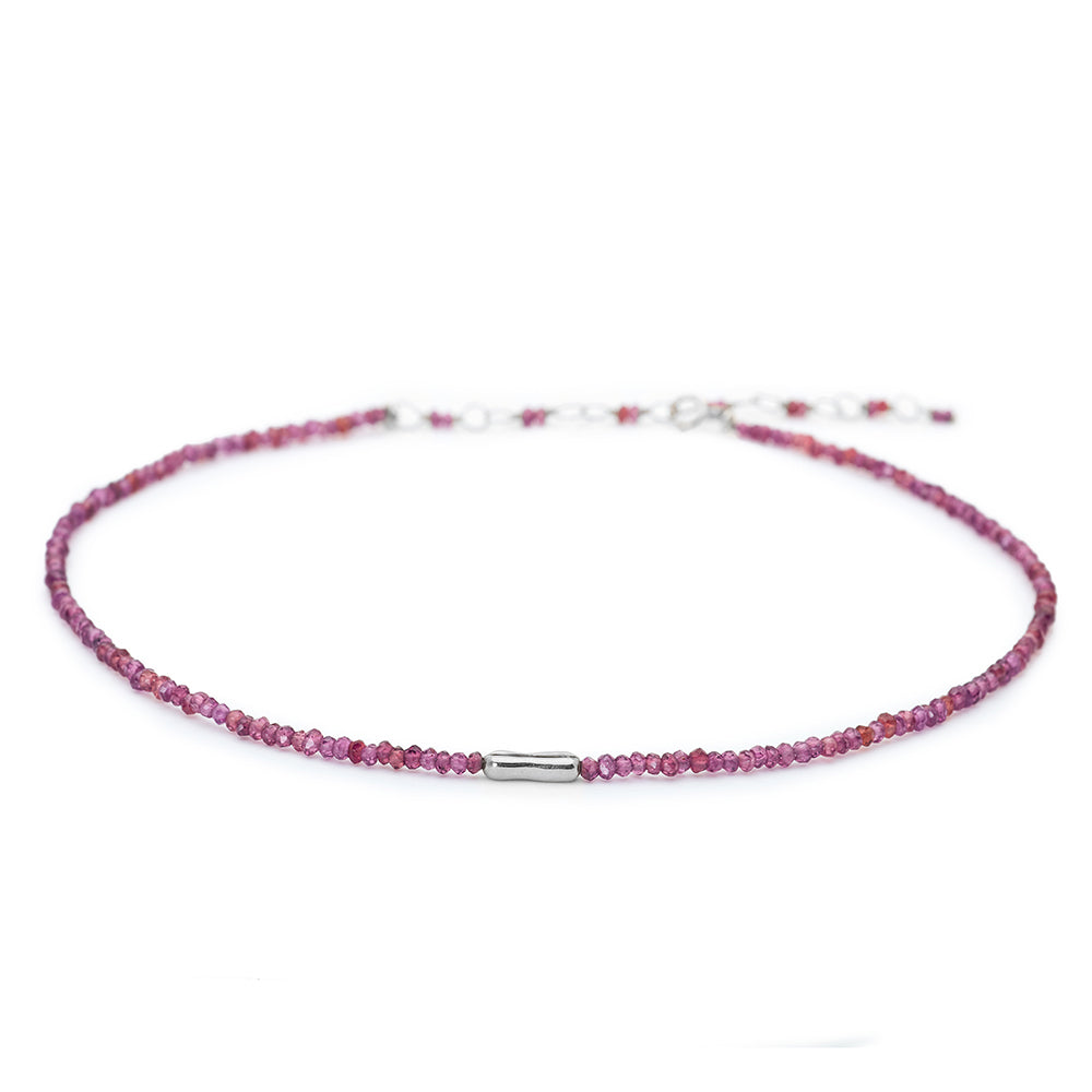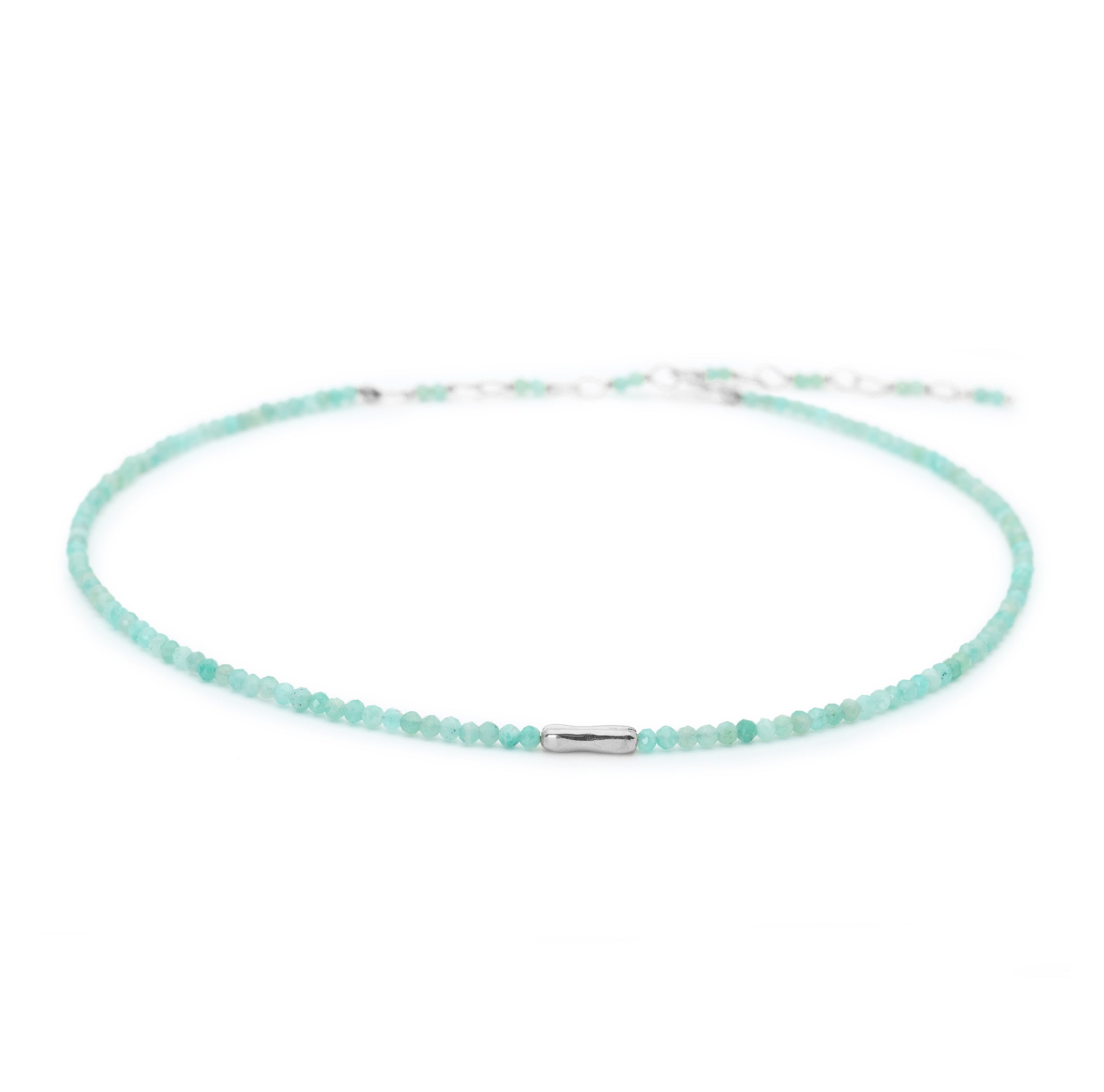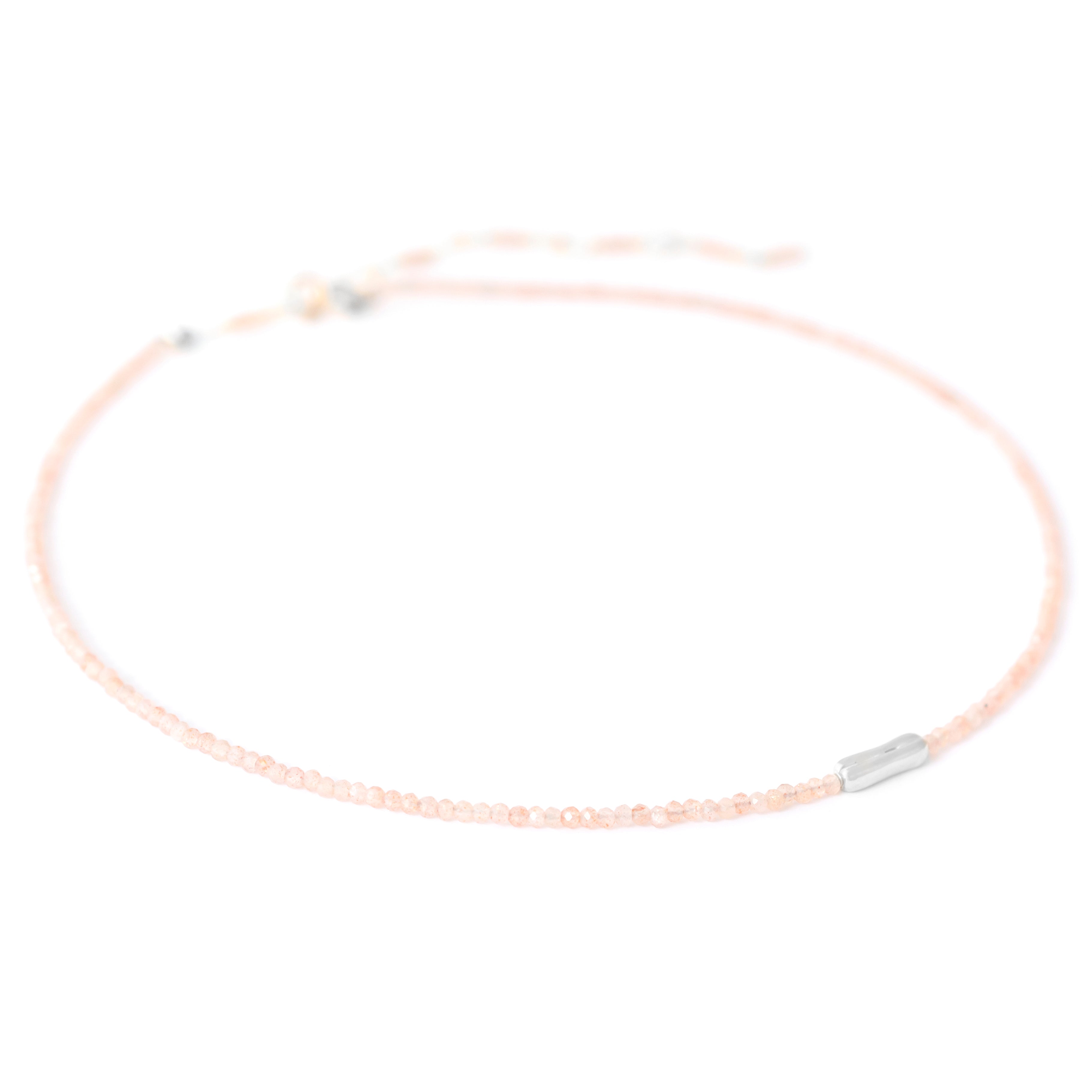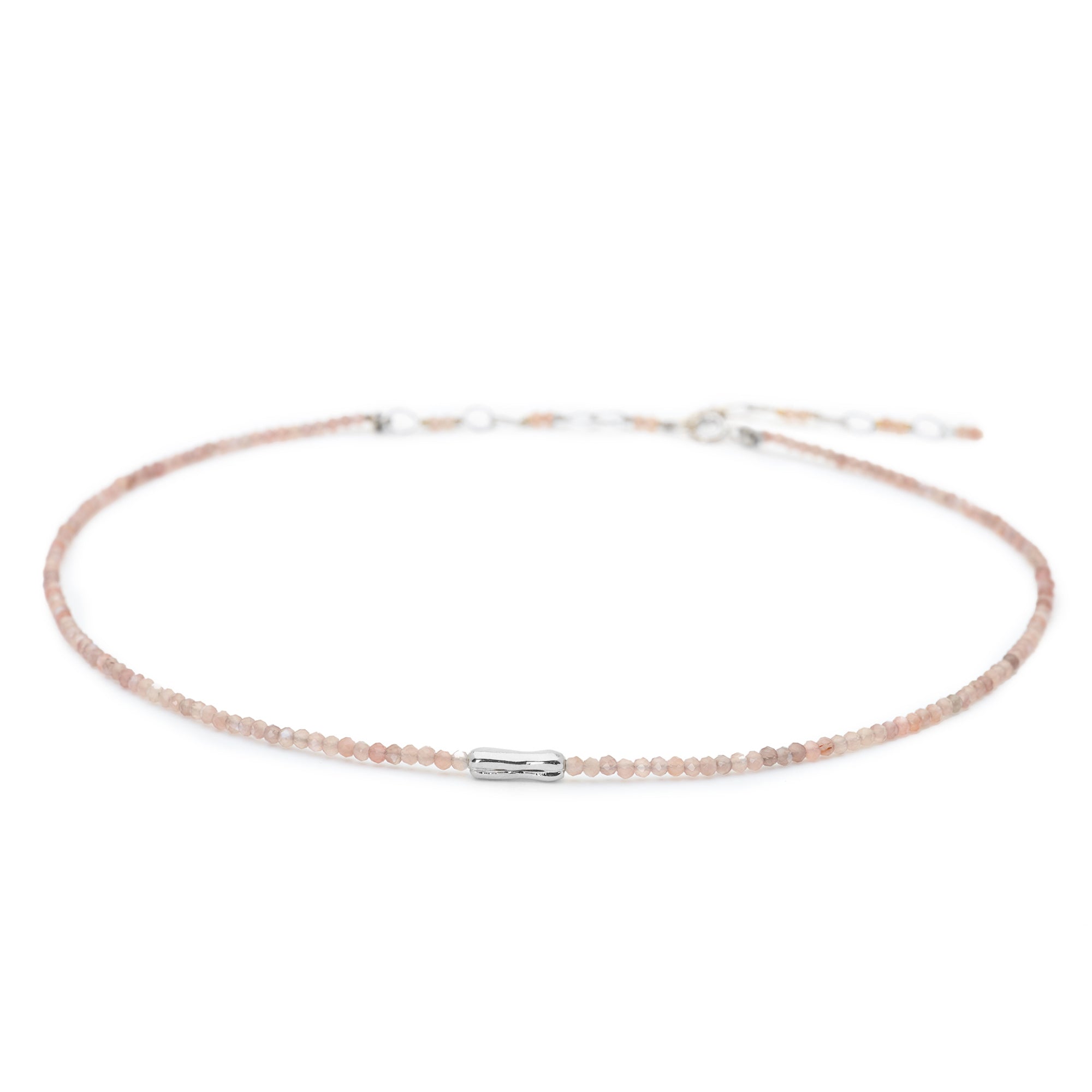 Gold "Wrap" gemstone bead choker necklace with gold organic log bead, clasp and tied extension. 12-15" Length.
