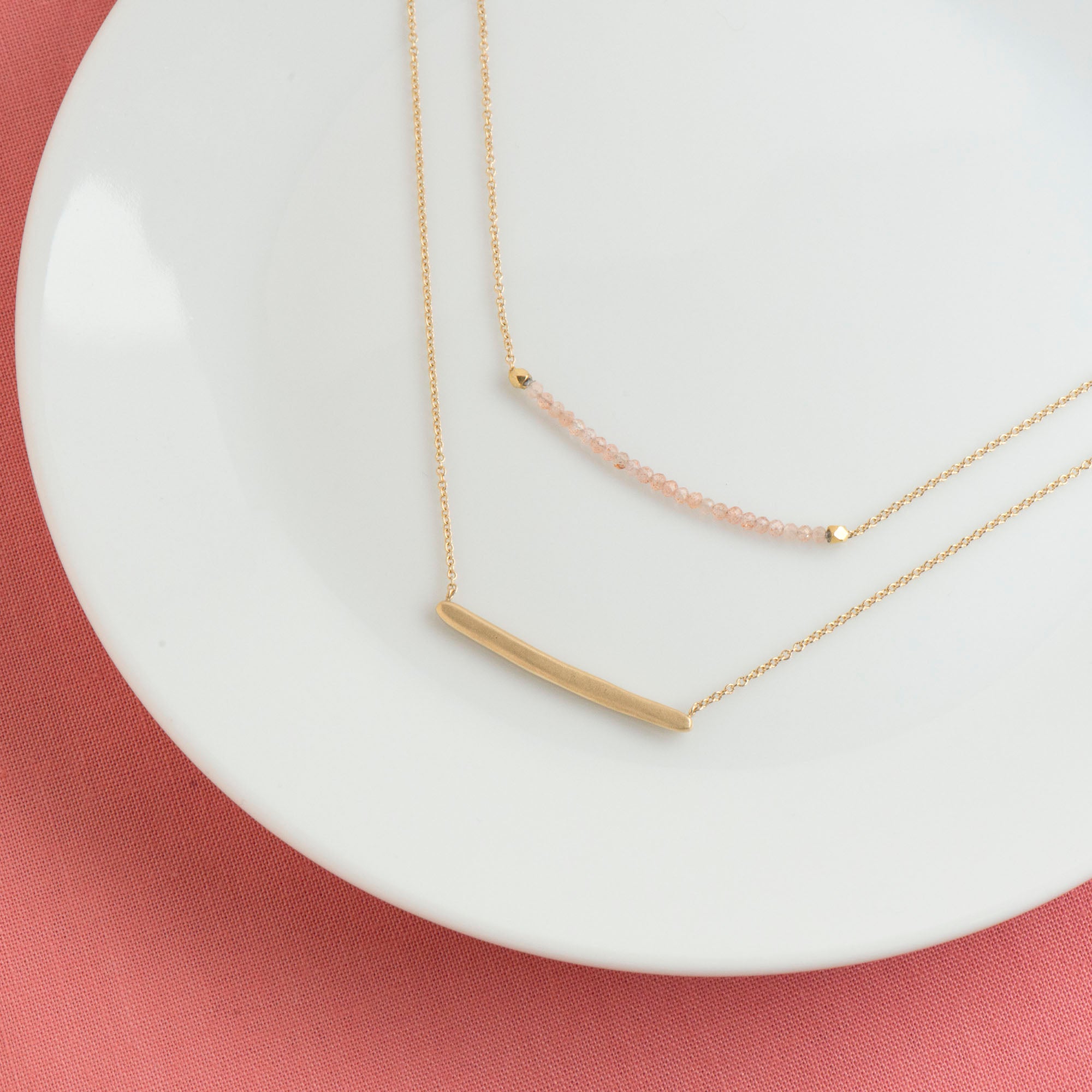 Classic, simple, precious everyday! 18k yellow or 14k white gold necklace with matte finish gold bar. 16-18" variable length cable chain.