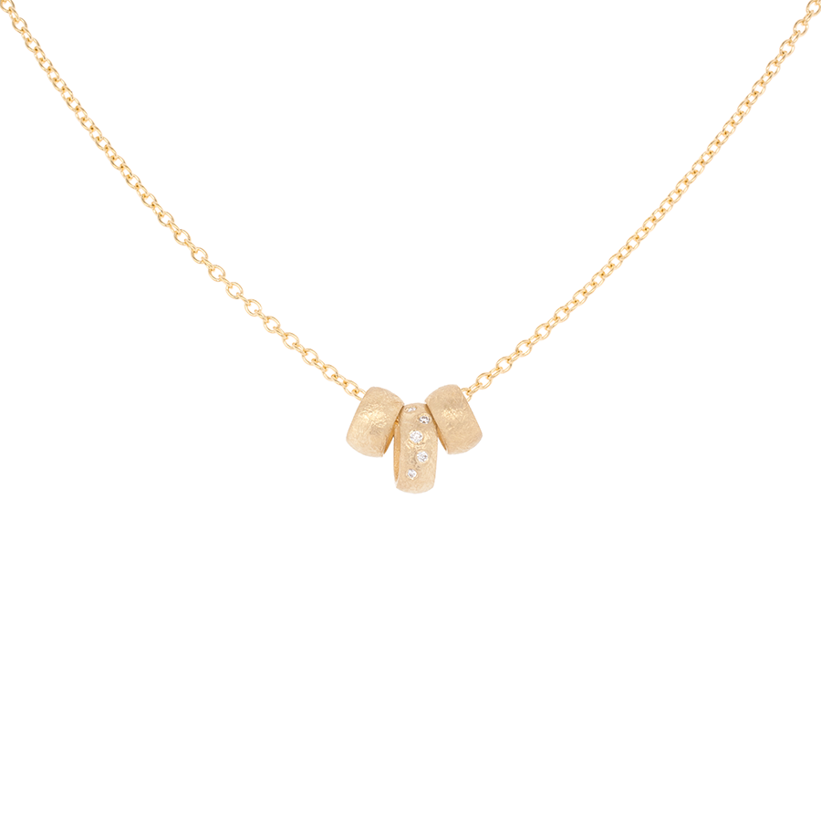 Triple 'Boulder' Bead Scattered Diamond Necklace