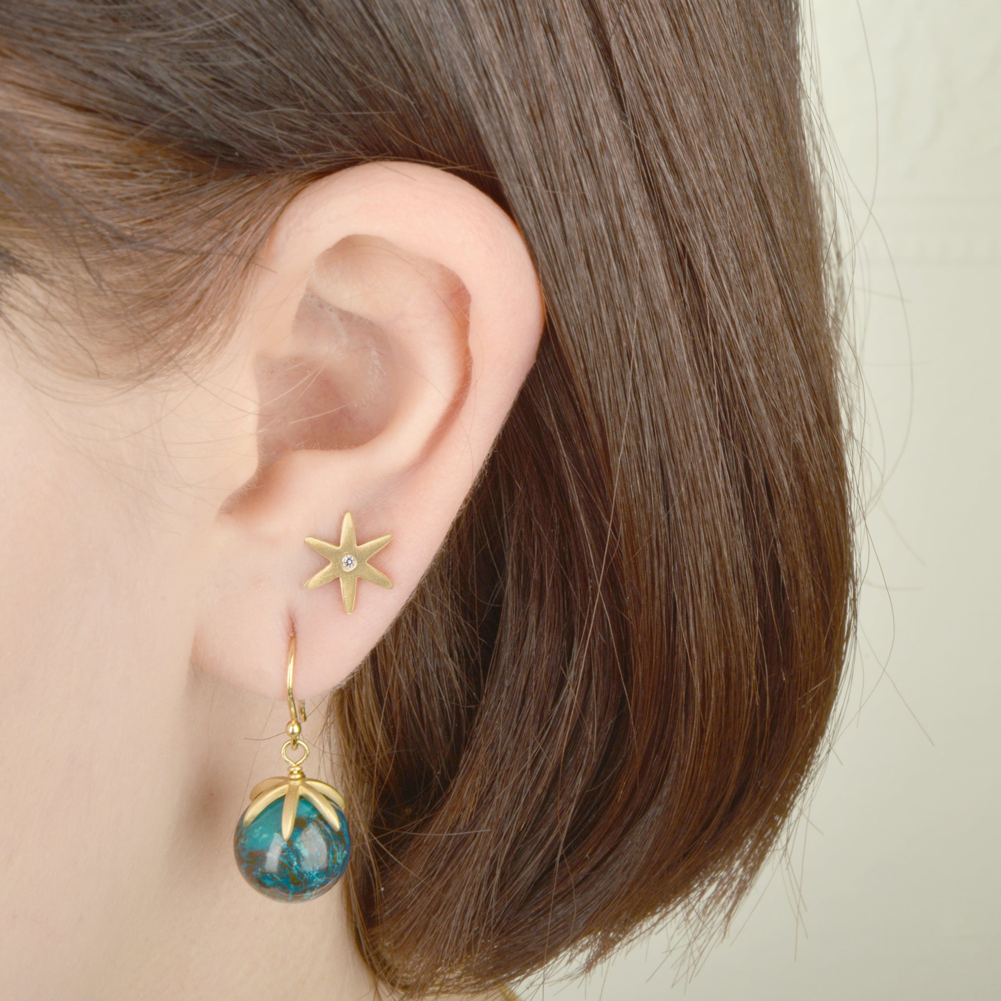 Gold 'Celestial' collection star stud earrings with brilliant white diamond in the center.
