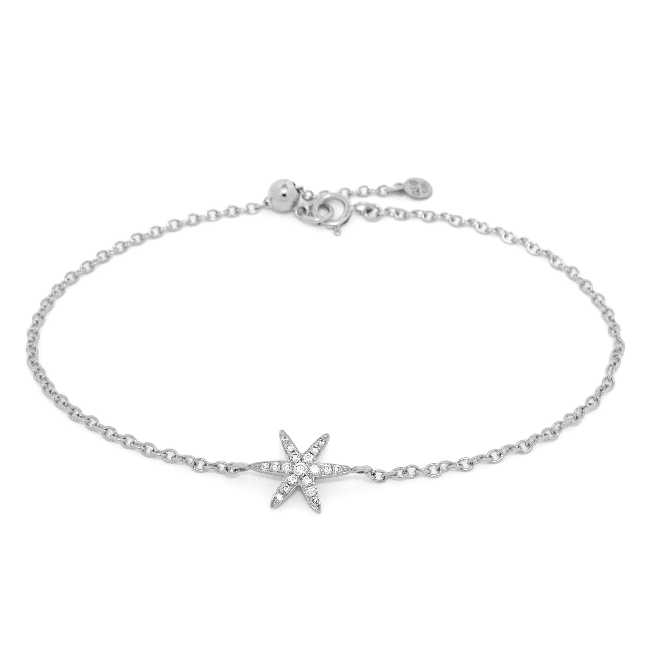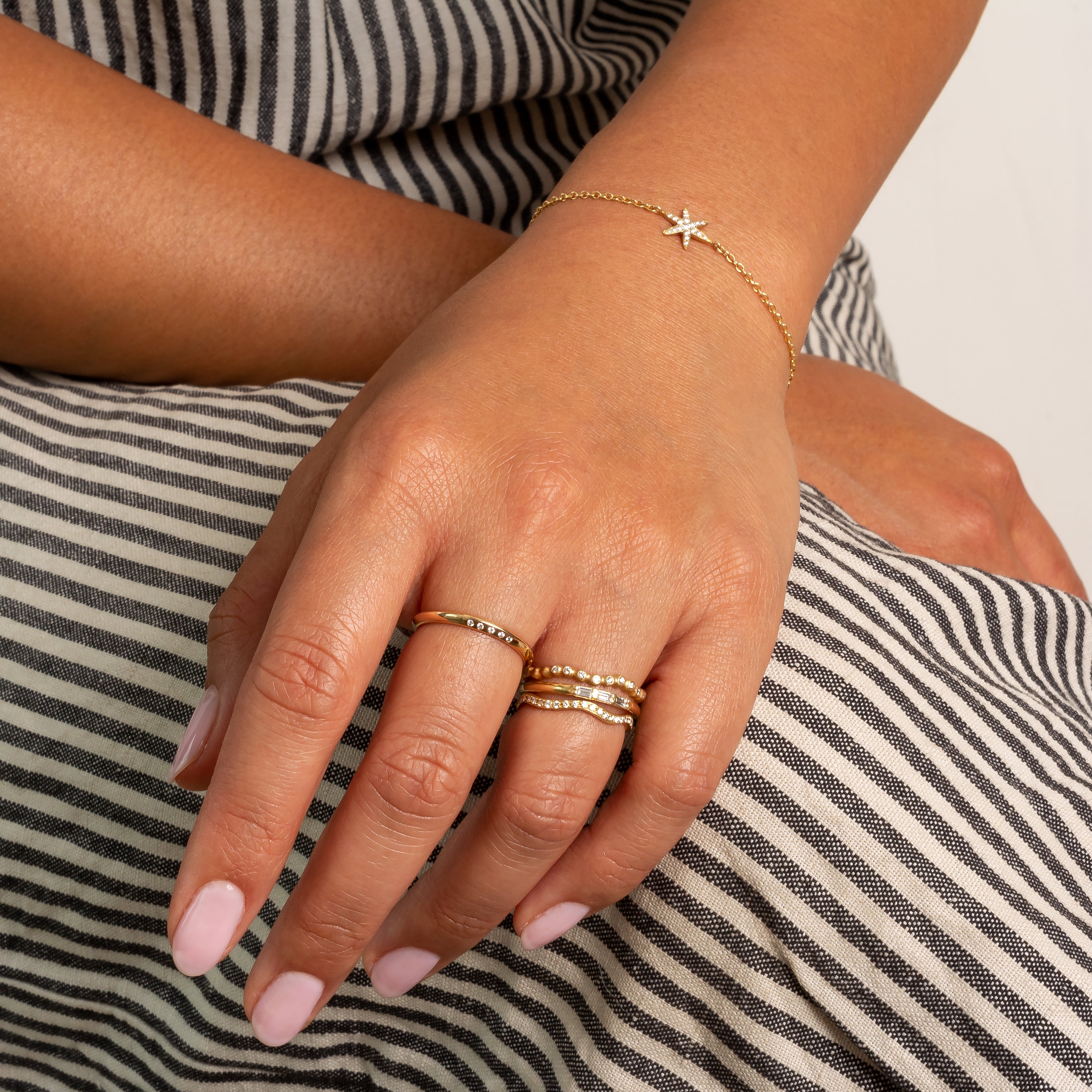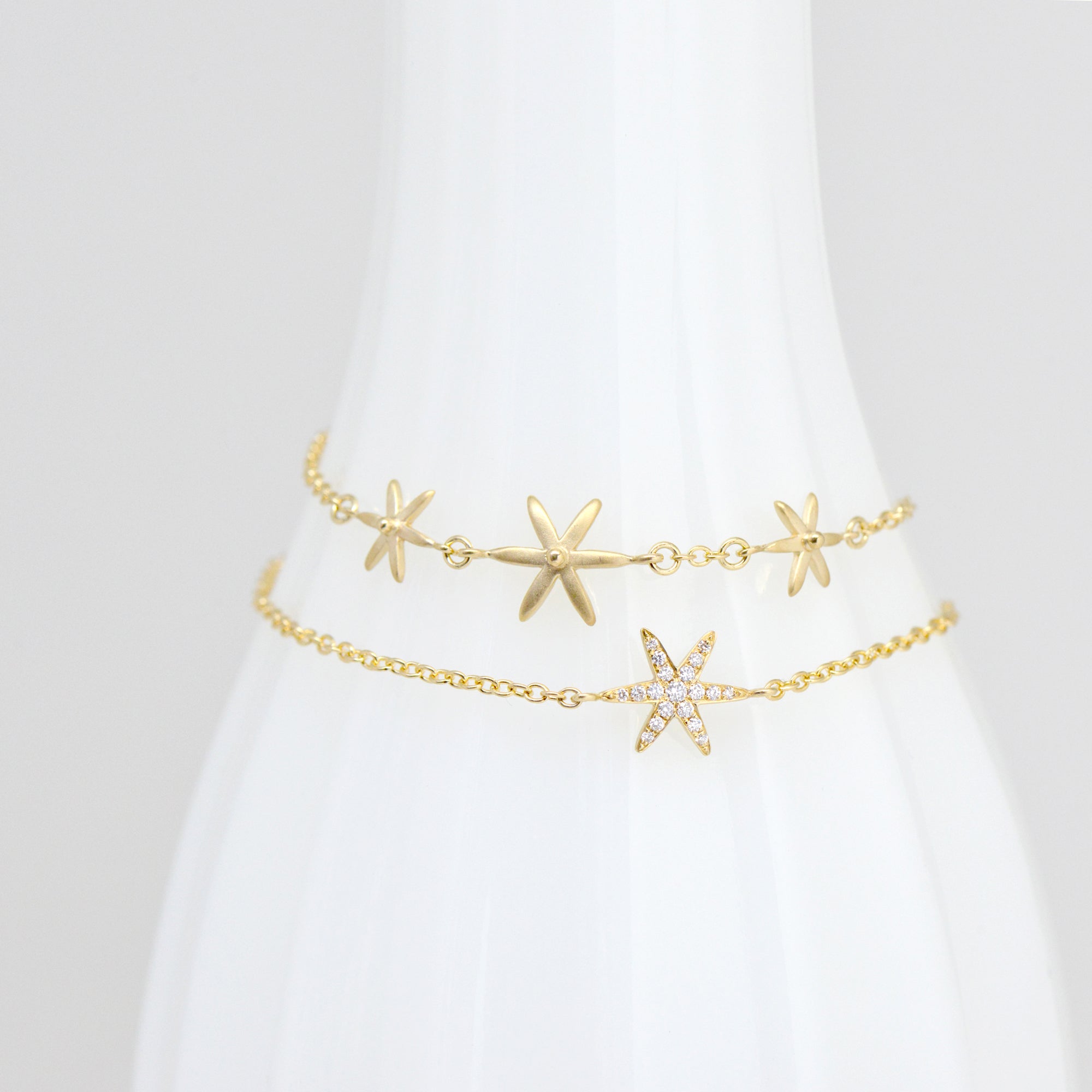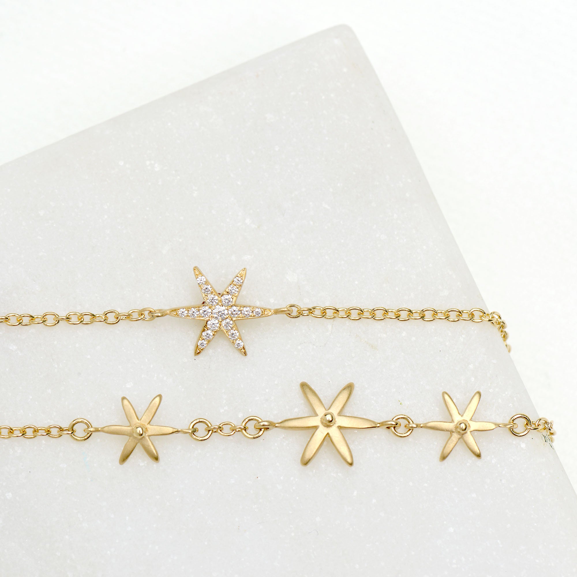 Gold bracelet with star charm with graduating sizes of diamonds paved on one side.