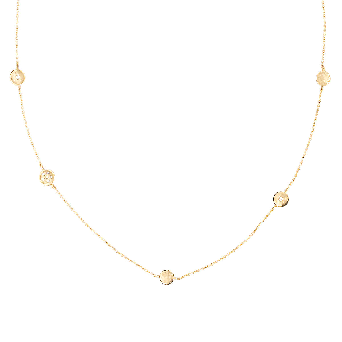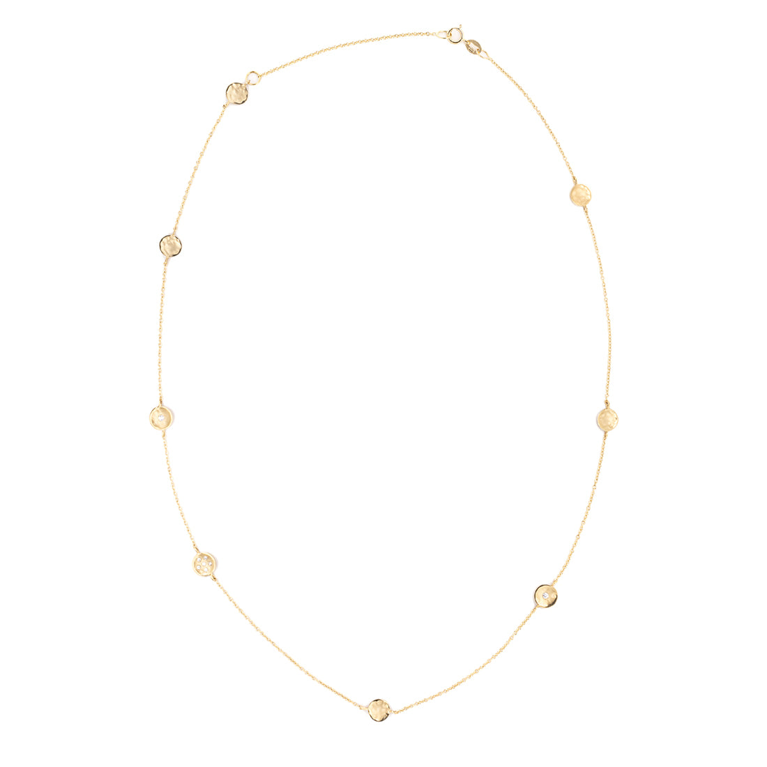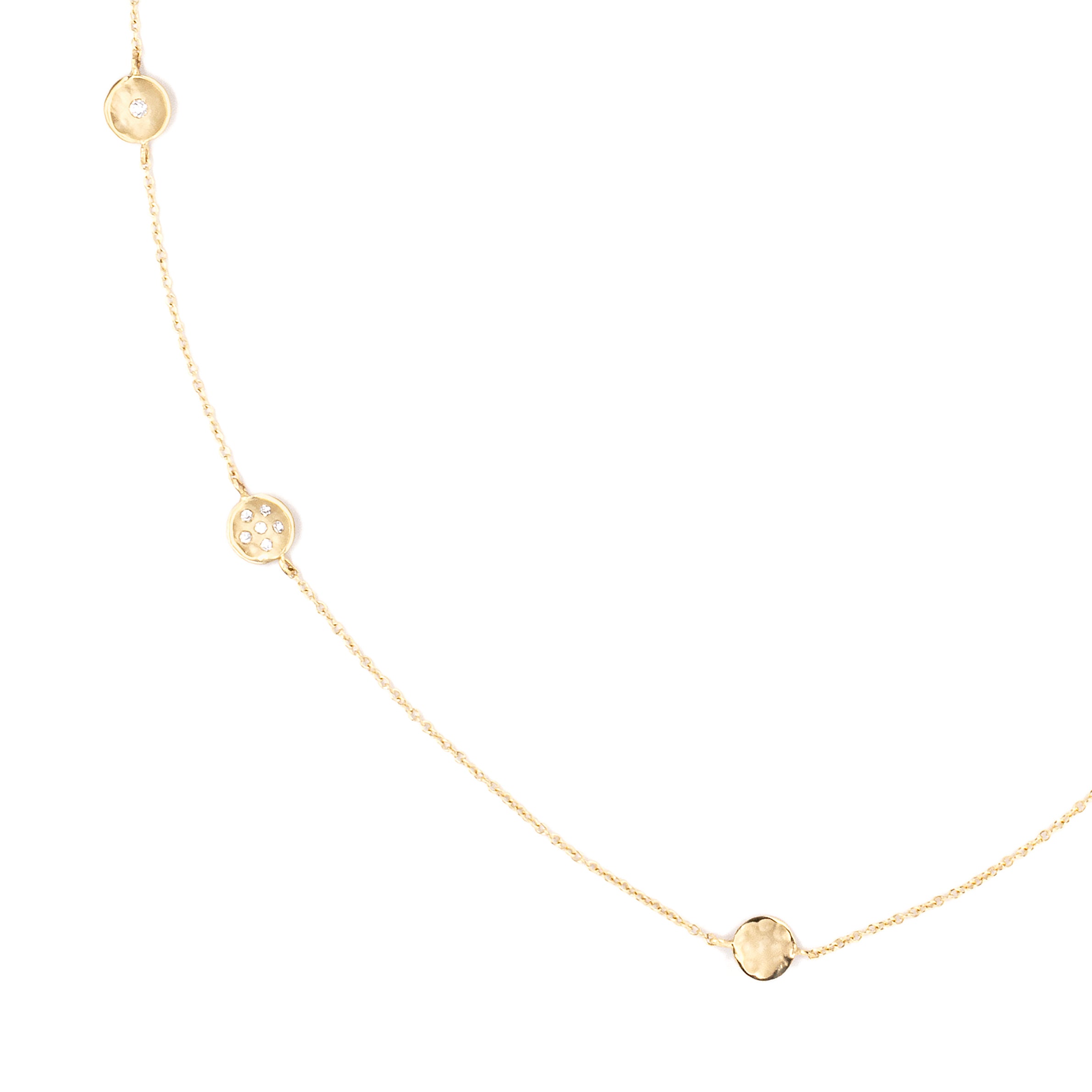 Diamond detail solid gold discs stationed on a fine cable chain.