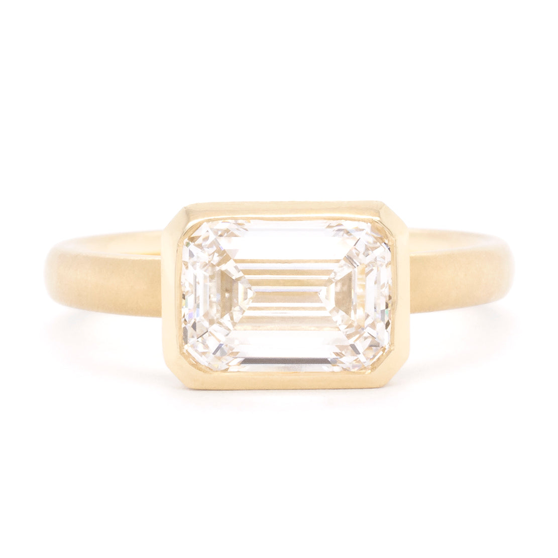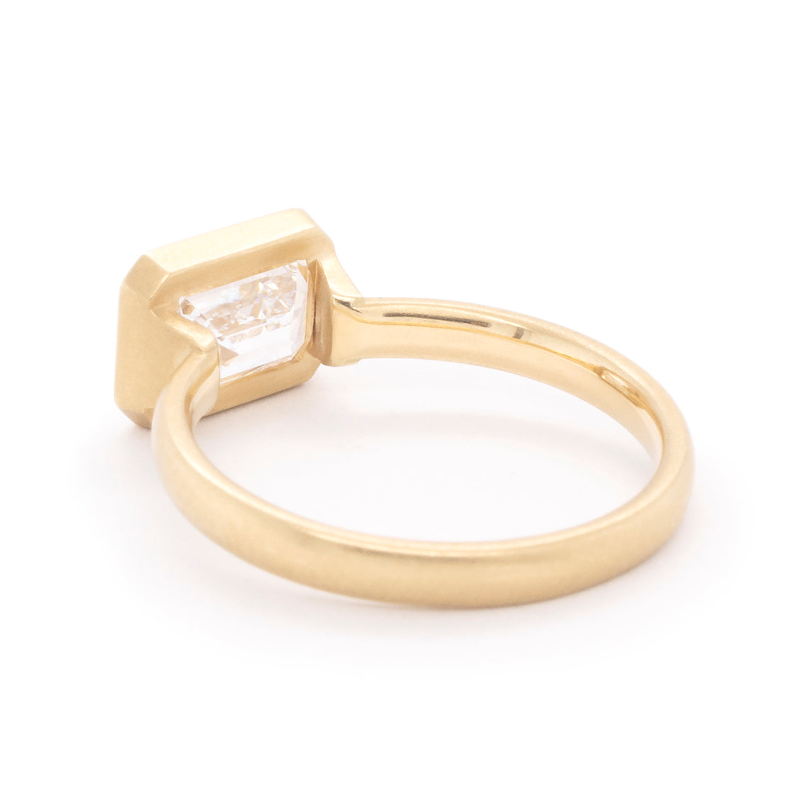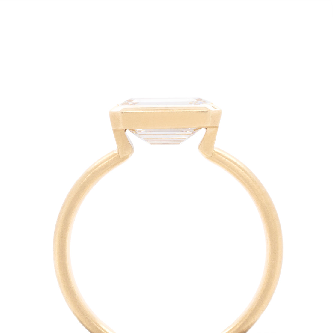 One-of-a-Kind 'Piper' ring with 2.10 carat Emerald Cut Diamond, Bezel and thick comfort fit band.