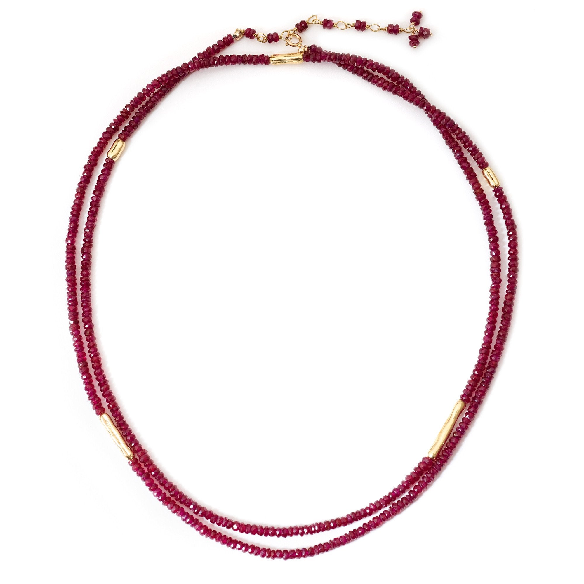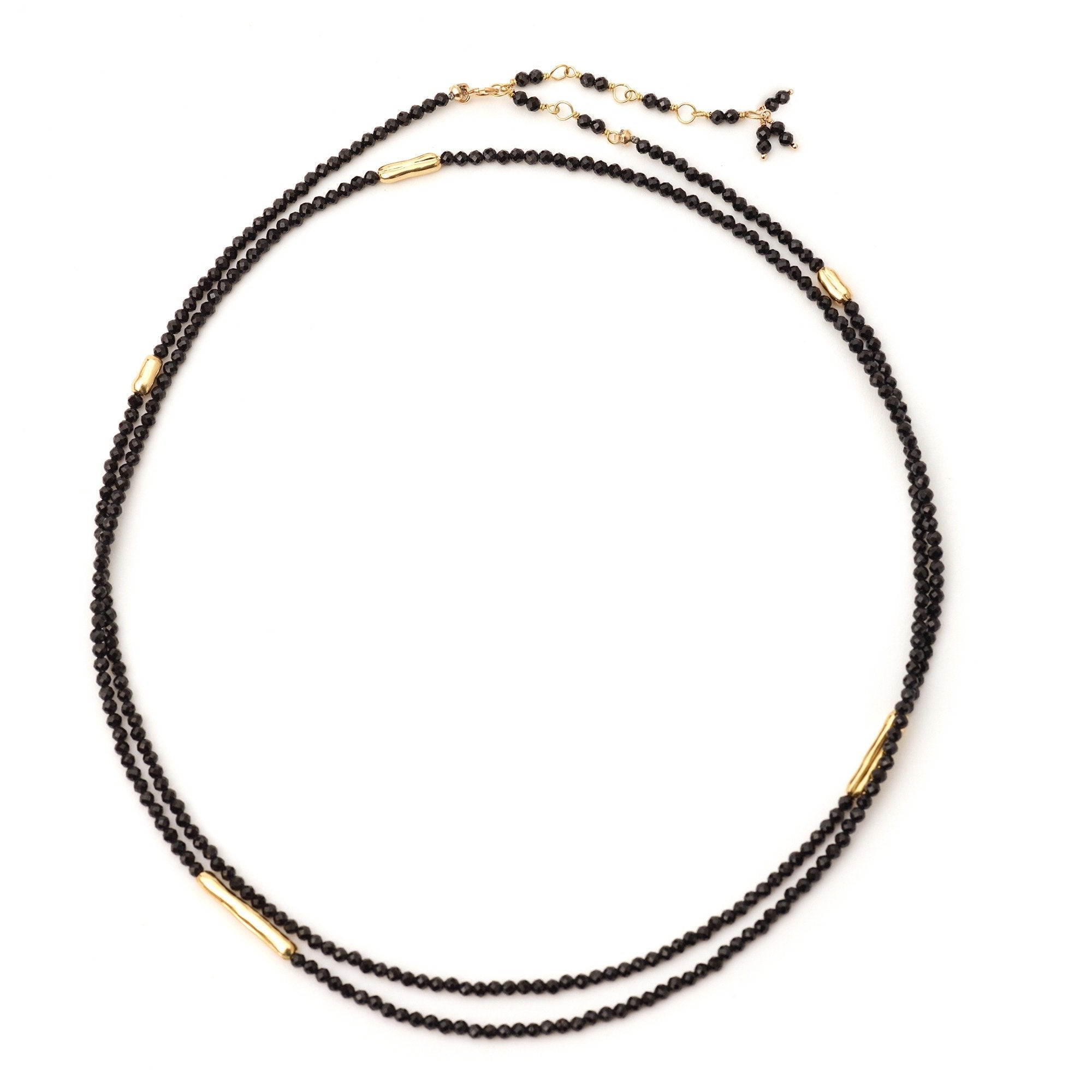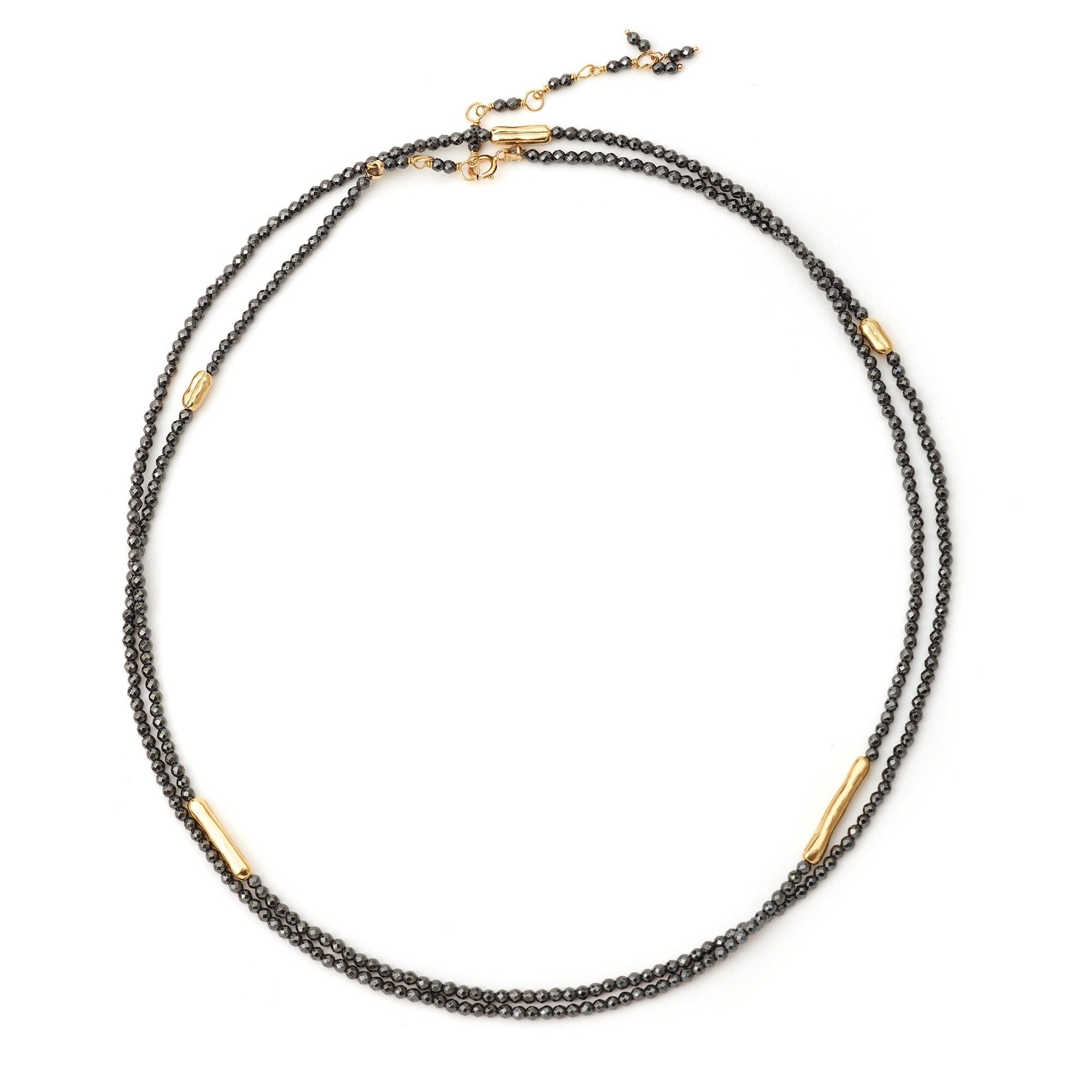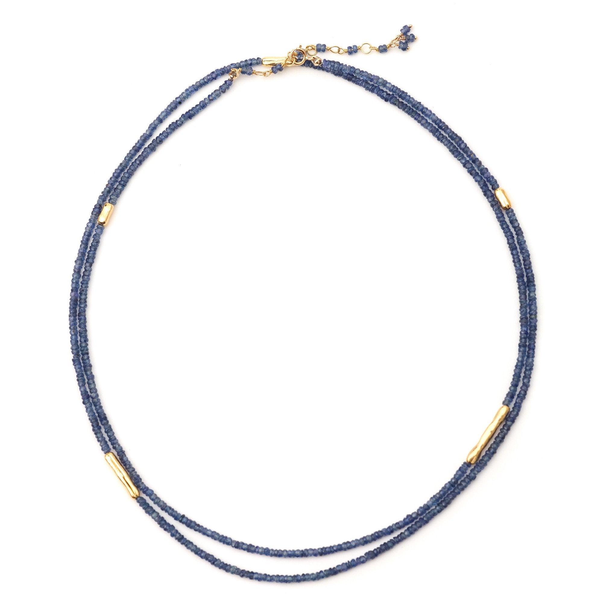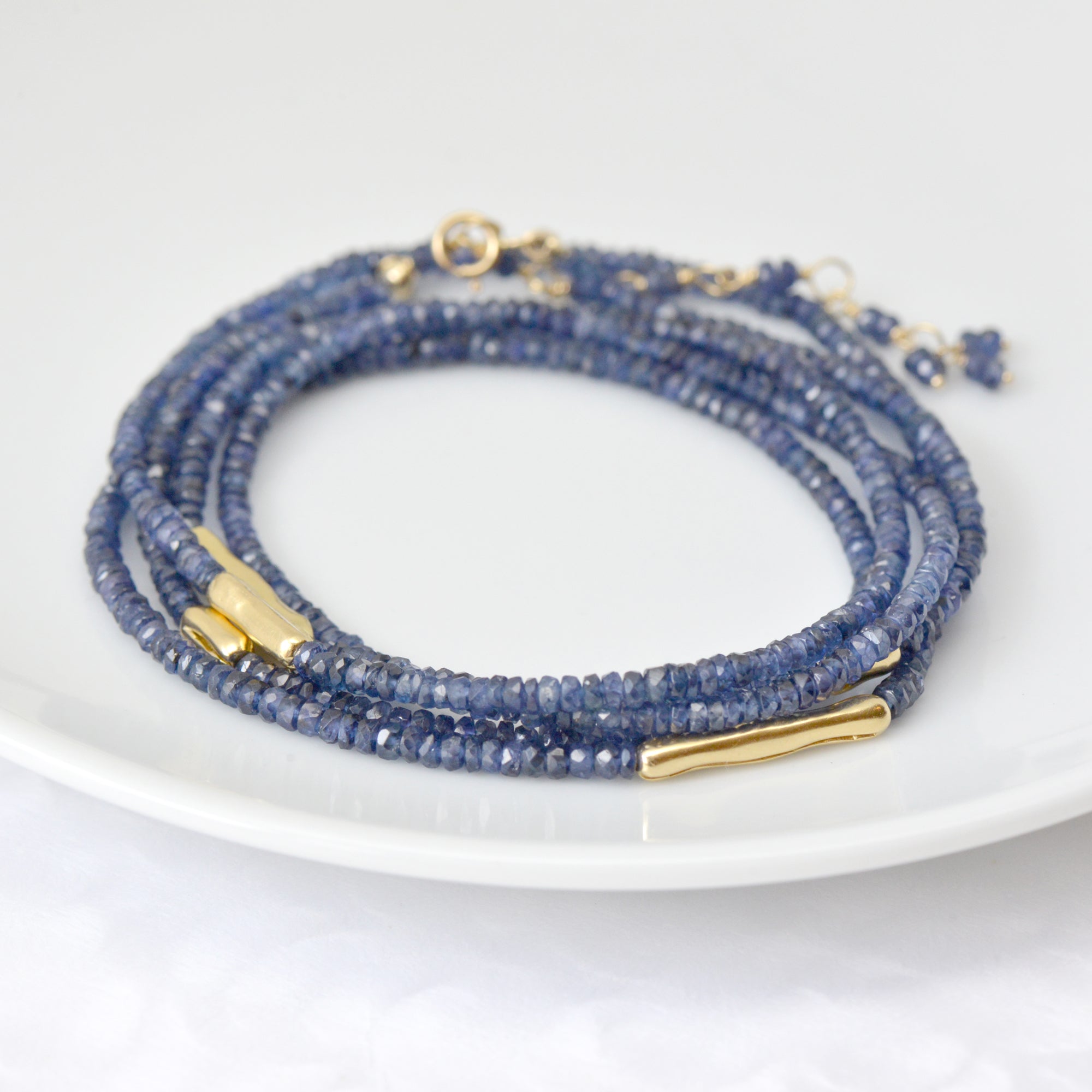 Strung 'Wrap' gemstone bracelet with 5 x gold organic log beads, clasp and tied extension.