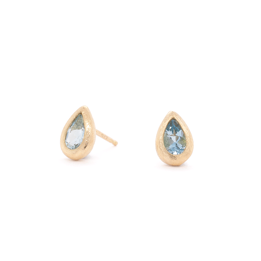 Sparkling pear gemstones in our 'Boulder' texture bezel set stud earrings for a classic and elegant everyday piece.