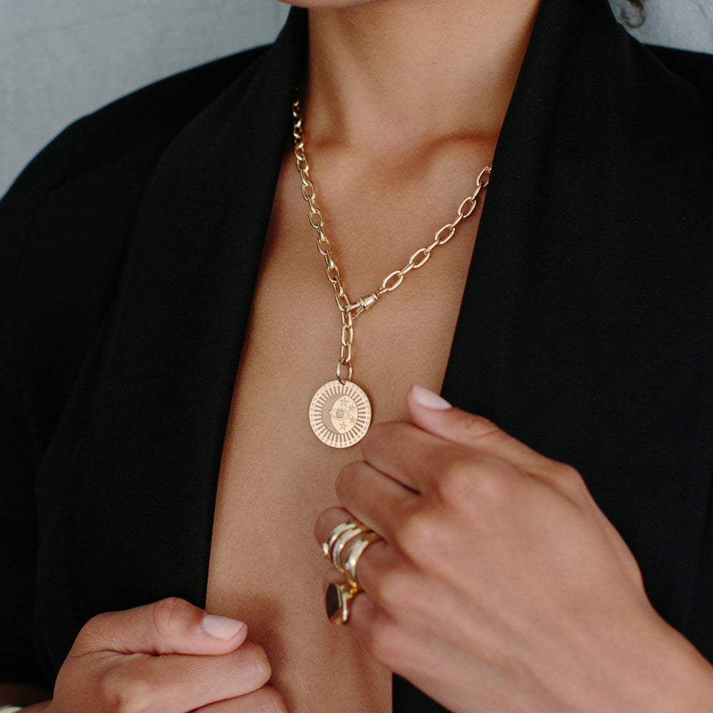 Large Diamond Celestial Protection Medallion Oval Chain Necklace | 14k