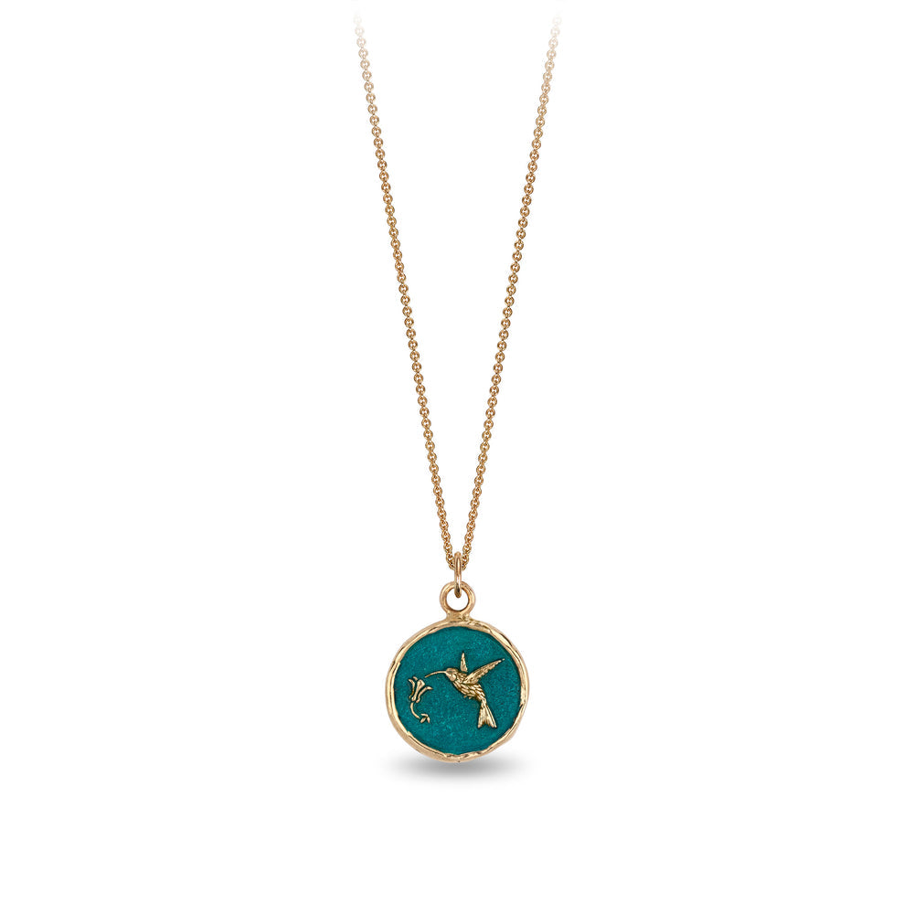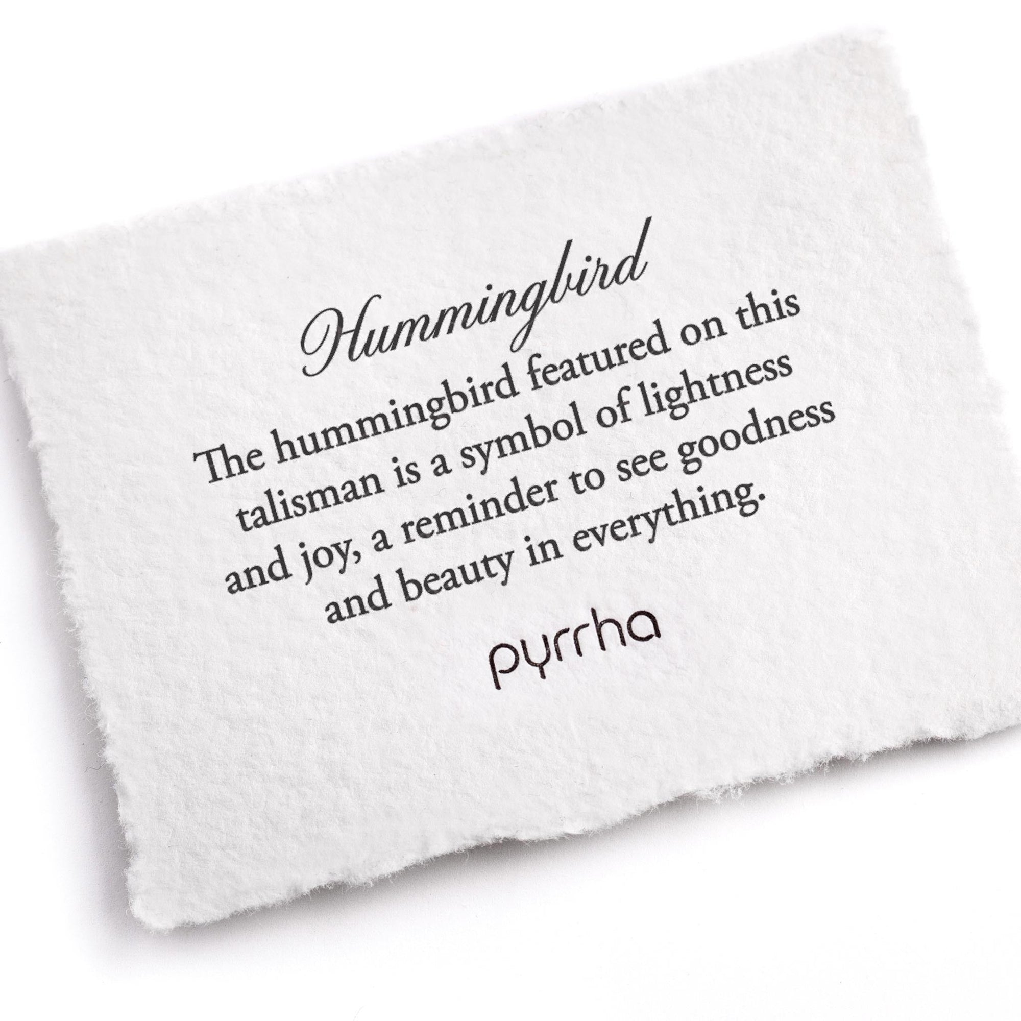 The hummingbird featured on this talisman is a symbol of lightness and joy, a reminder to see goodness and beauty in everything.