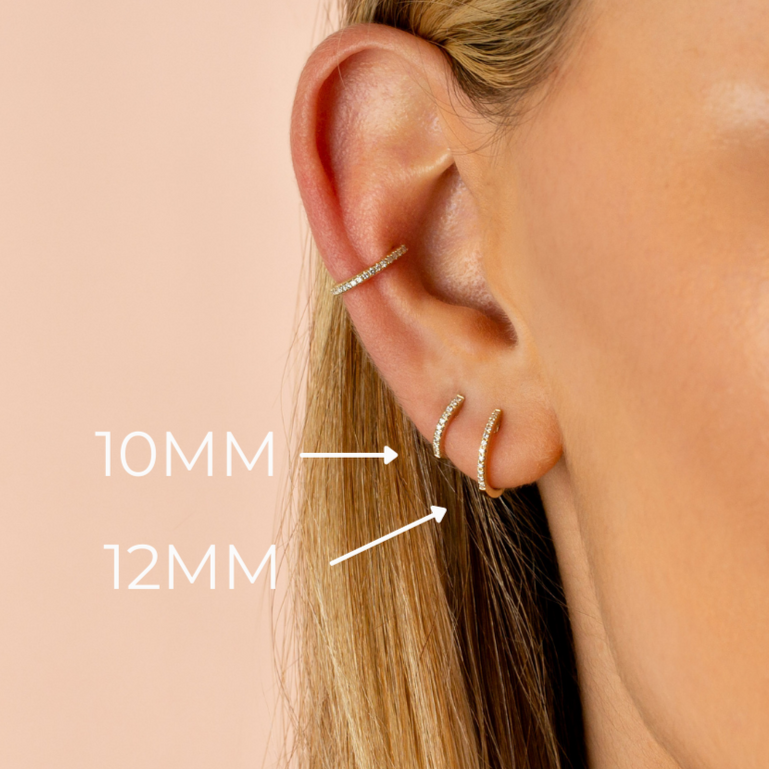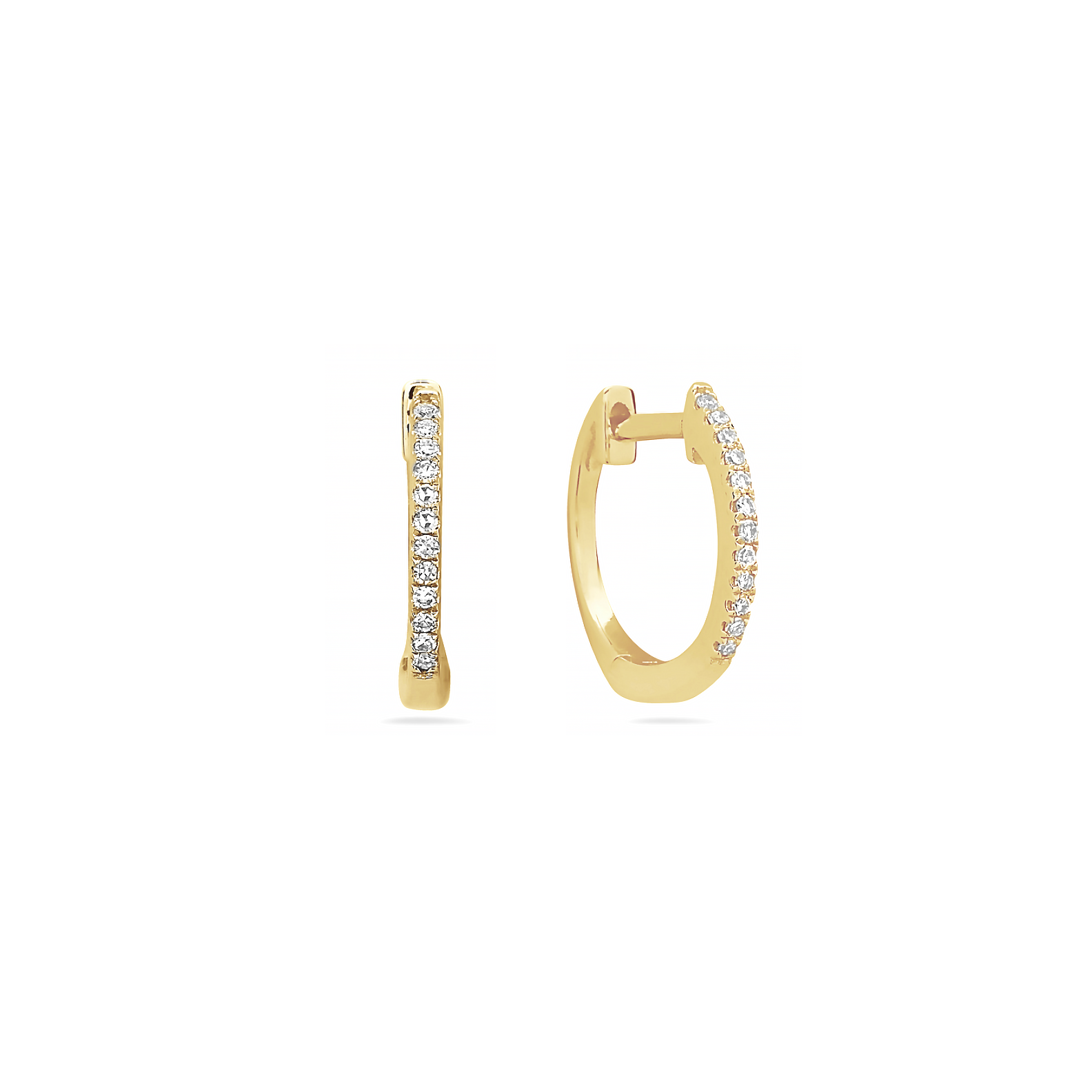 Solid 14k gold and diamonds, these 12mm hinge huggies can live in your ears!