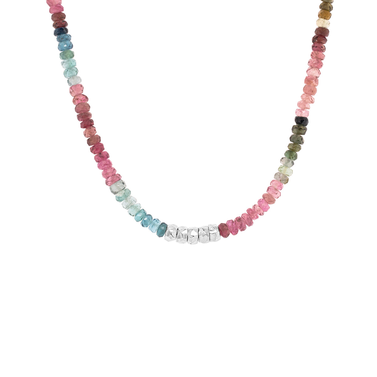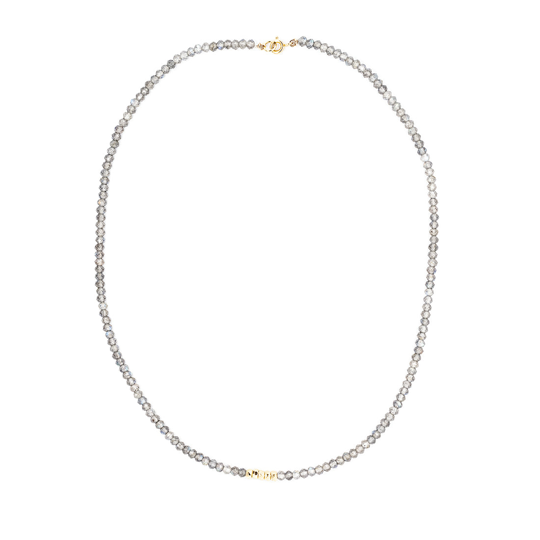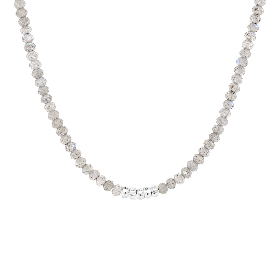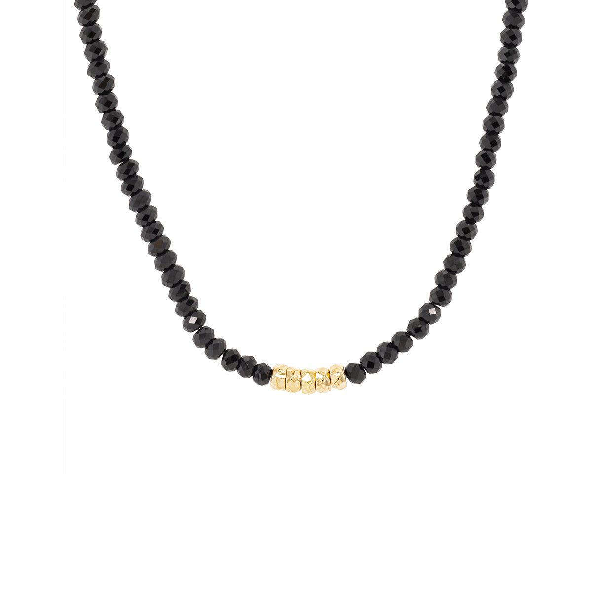 Bold Sparkling gemstone beads perfectly complemented by 5 of our hand carved hammer faceted gold beads in the center front.