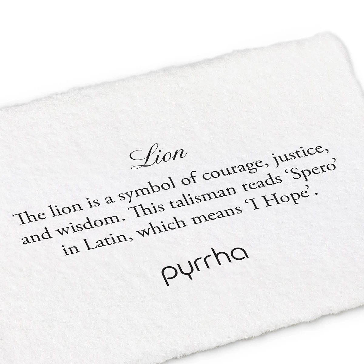 The lion is a symbol of courage, justice, and wisdom. This talisman reads 'Spero' in Latin, which means 'I Hope'.