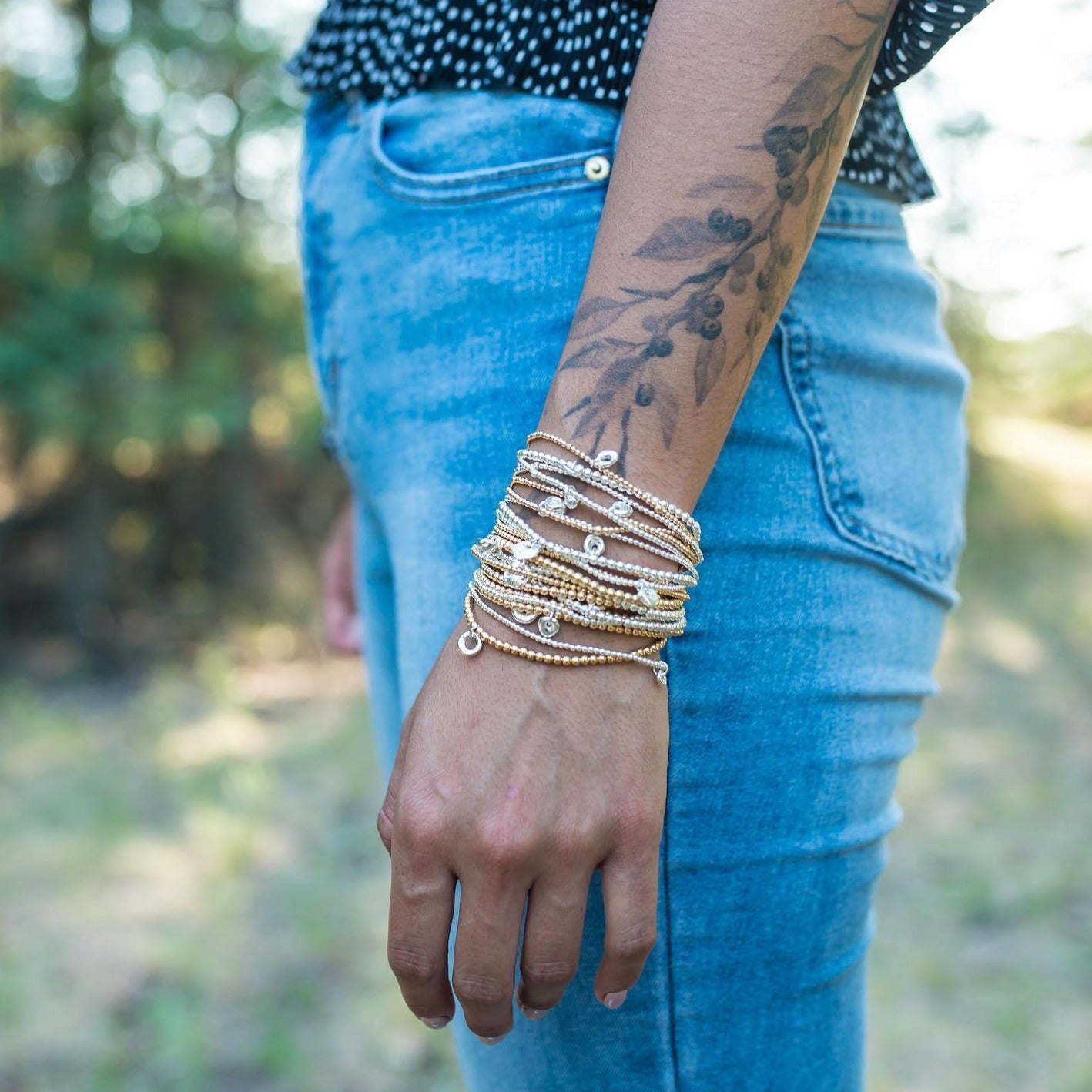 Medium Stretchie Baby Bracelet meant for stacking and layering.