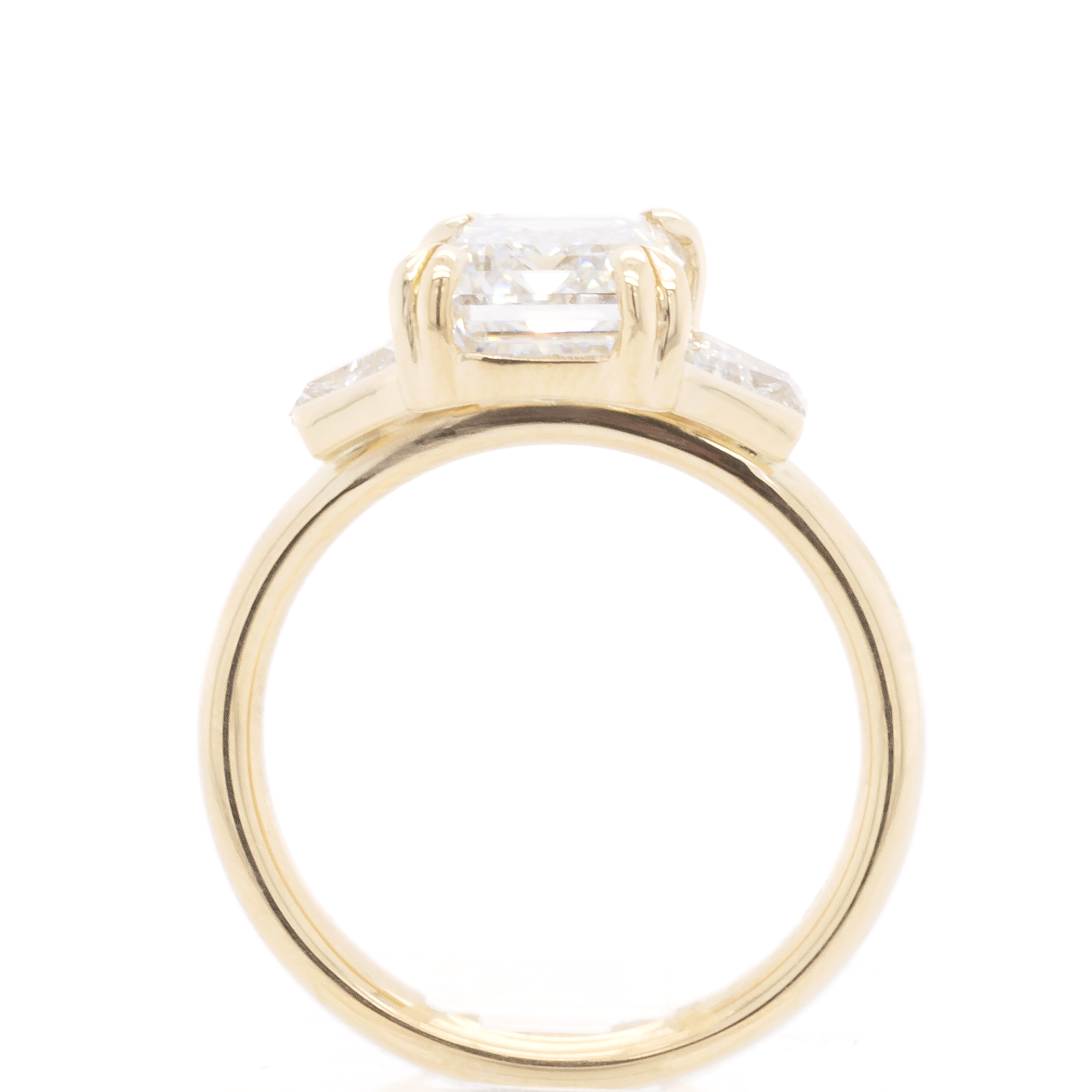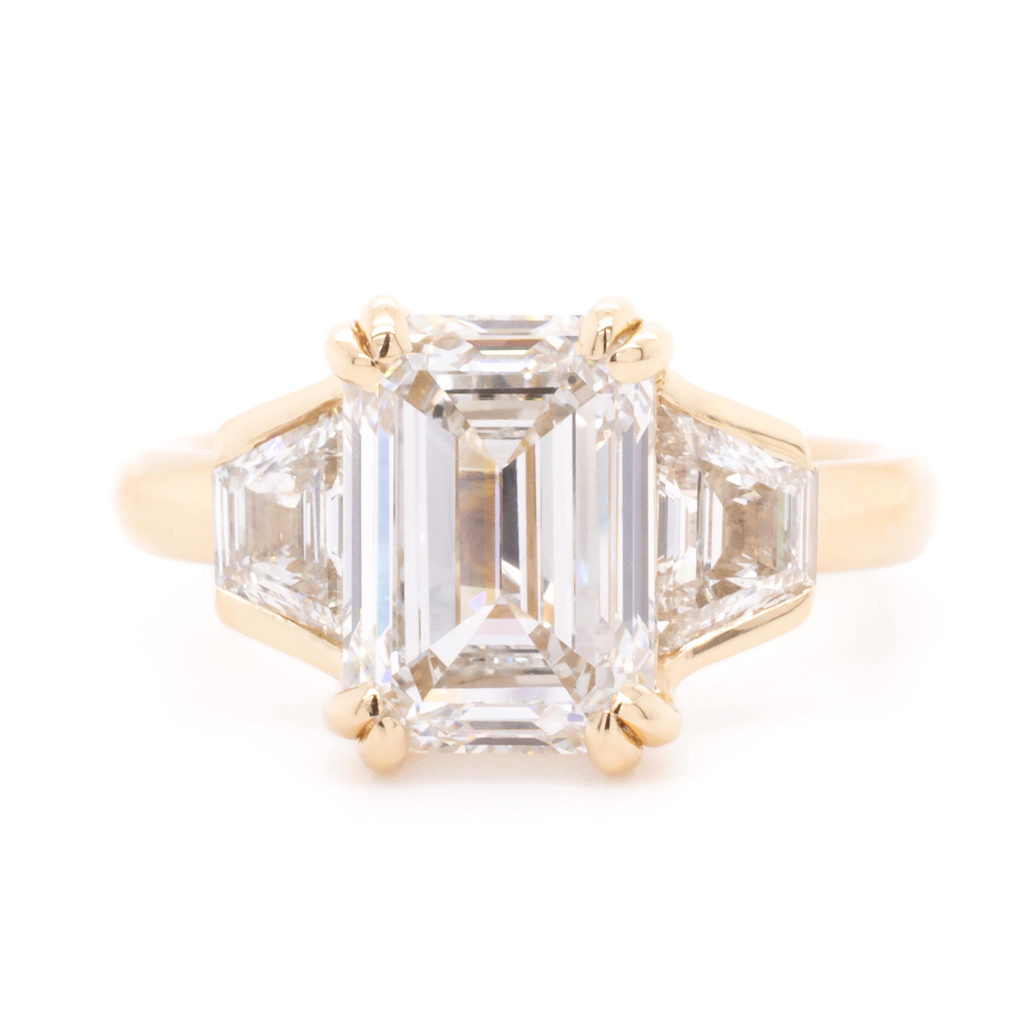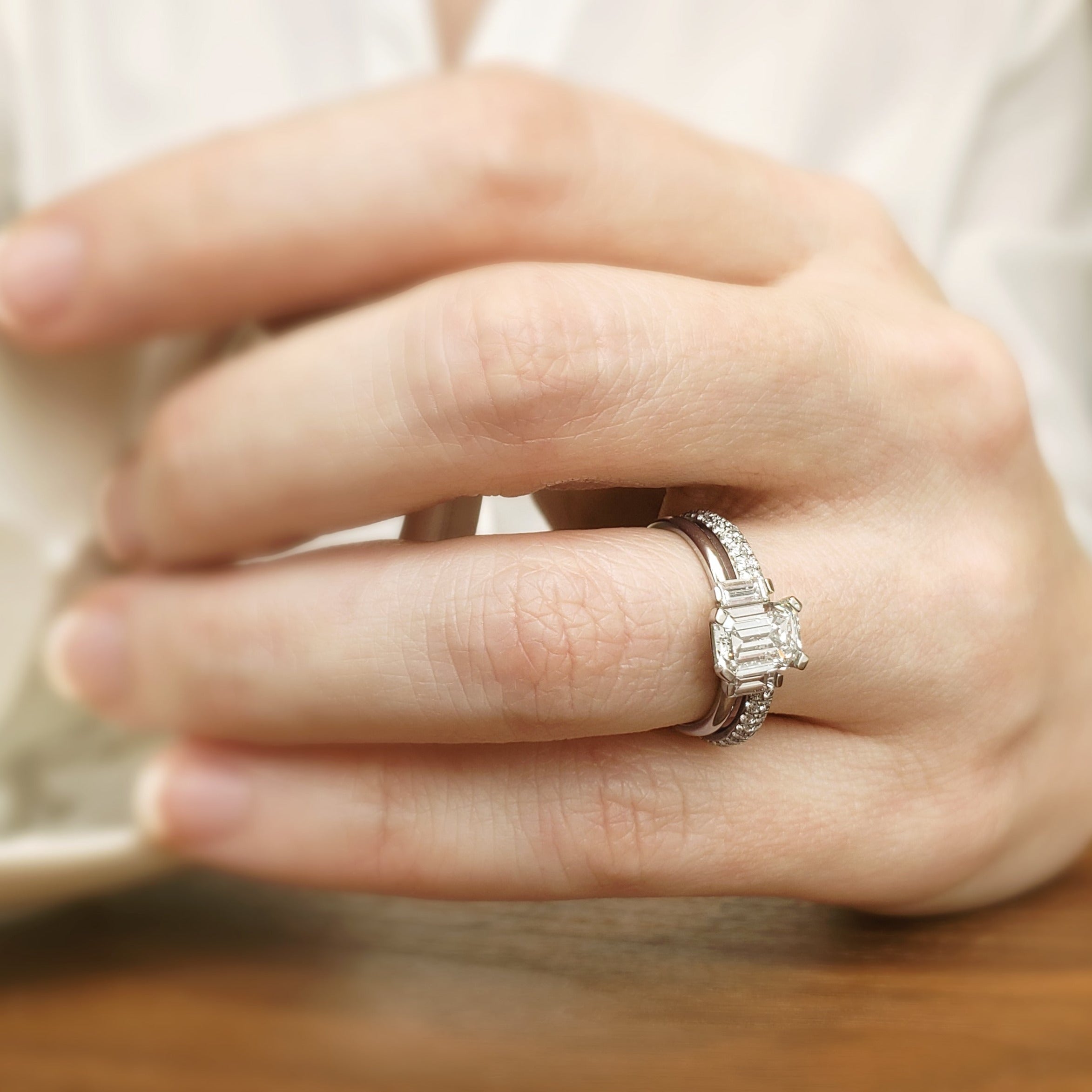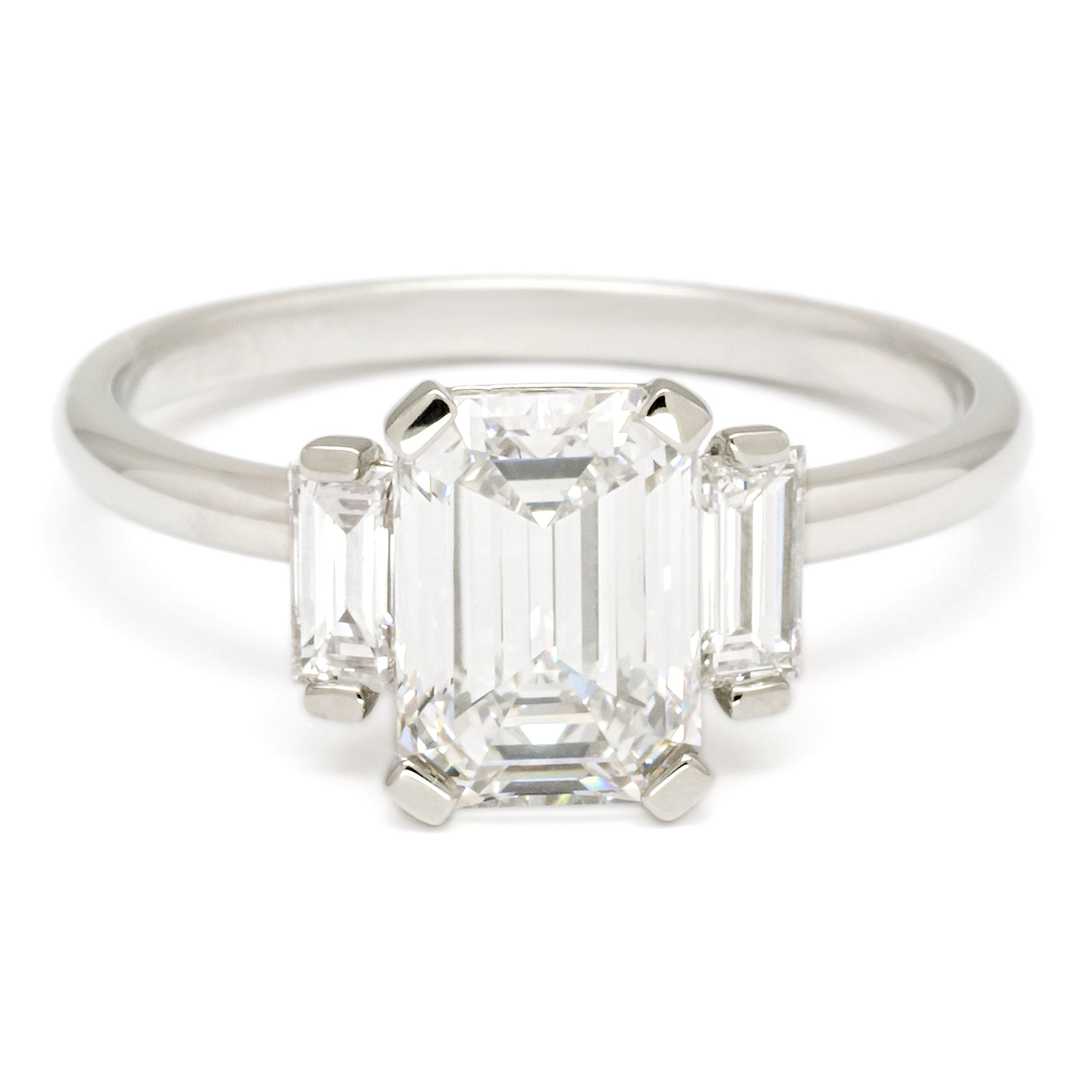 Sure to take your loved one's breath away, Choose this stunning trinity claw setting with an emerald cut diamond in the centre, and 2 x baguette diamonds on either side.