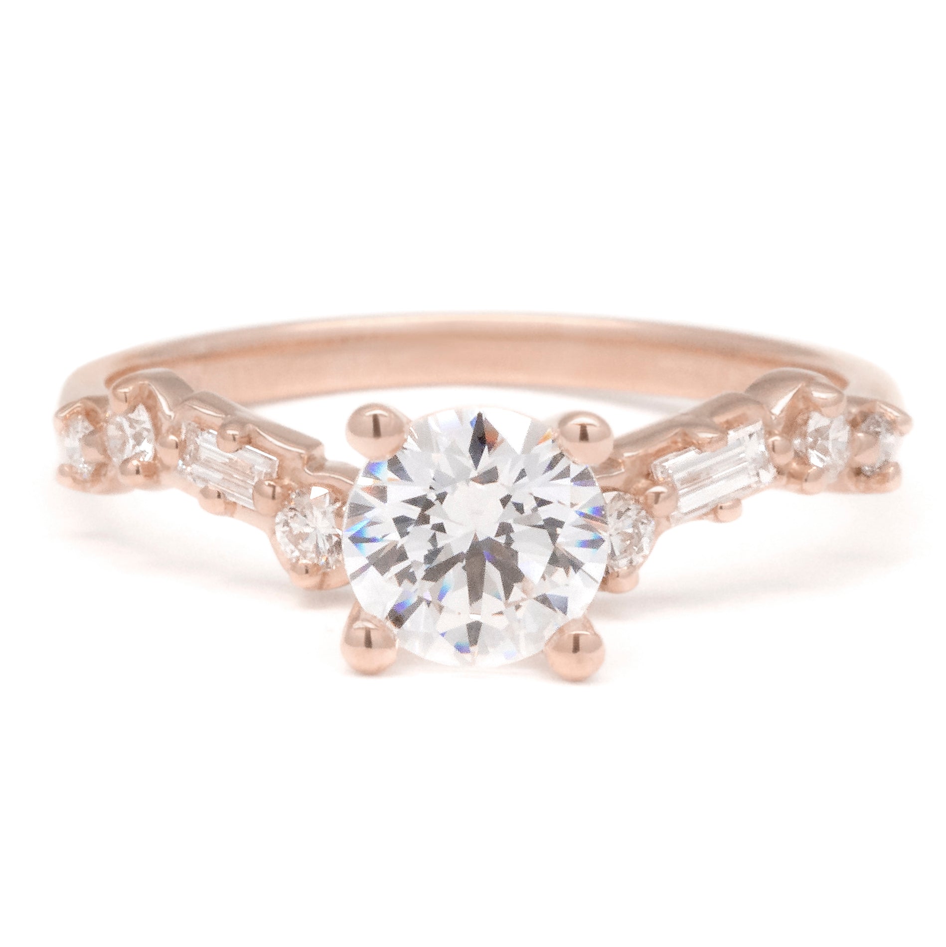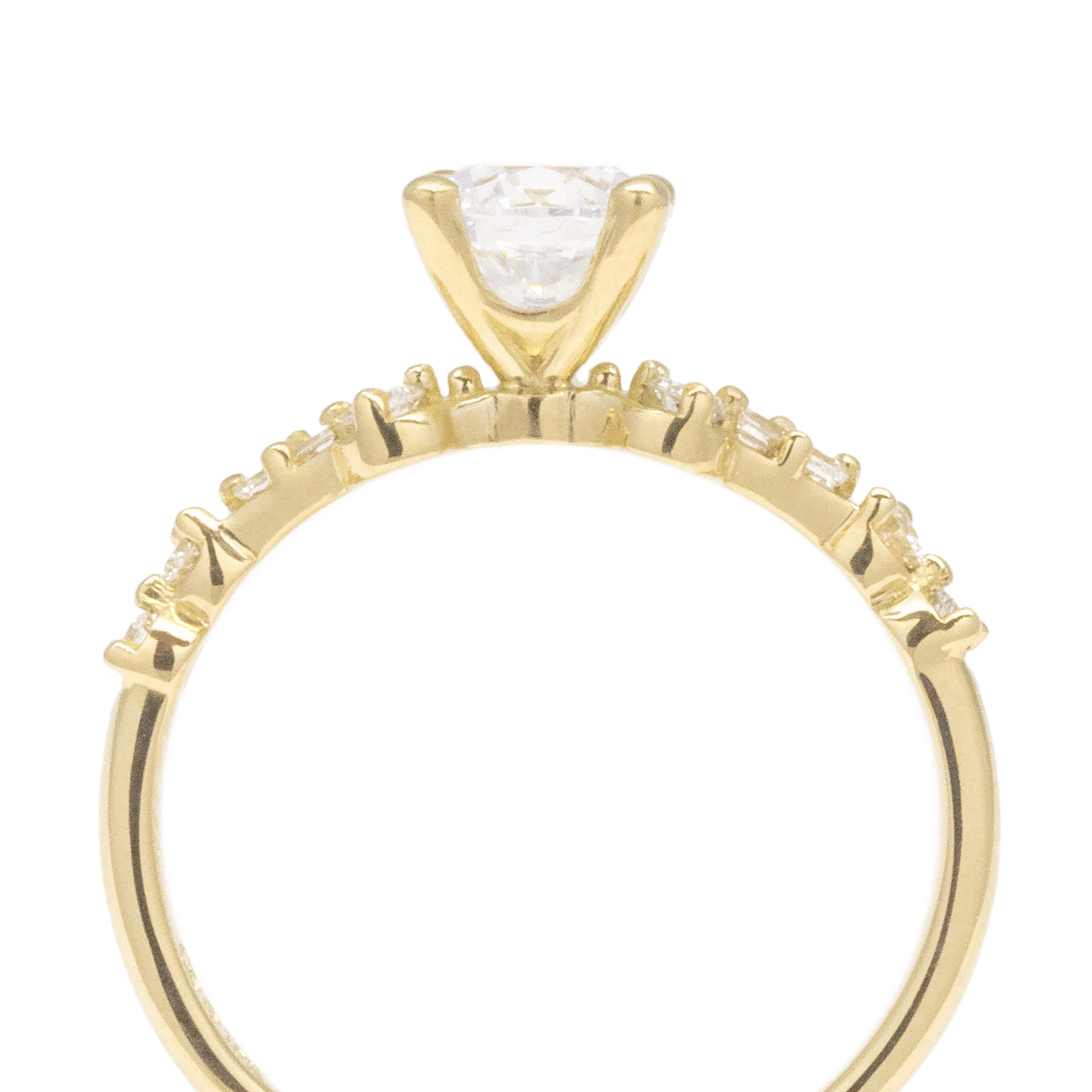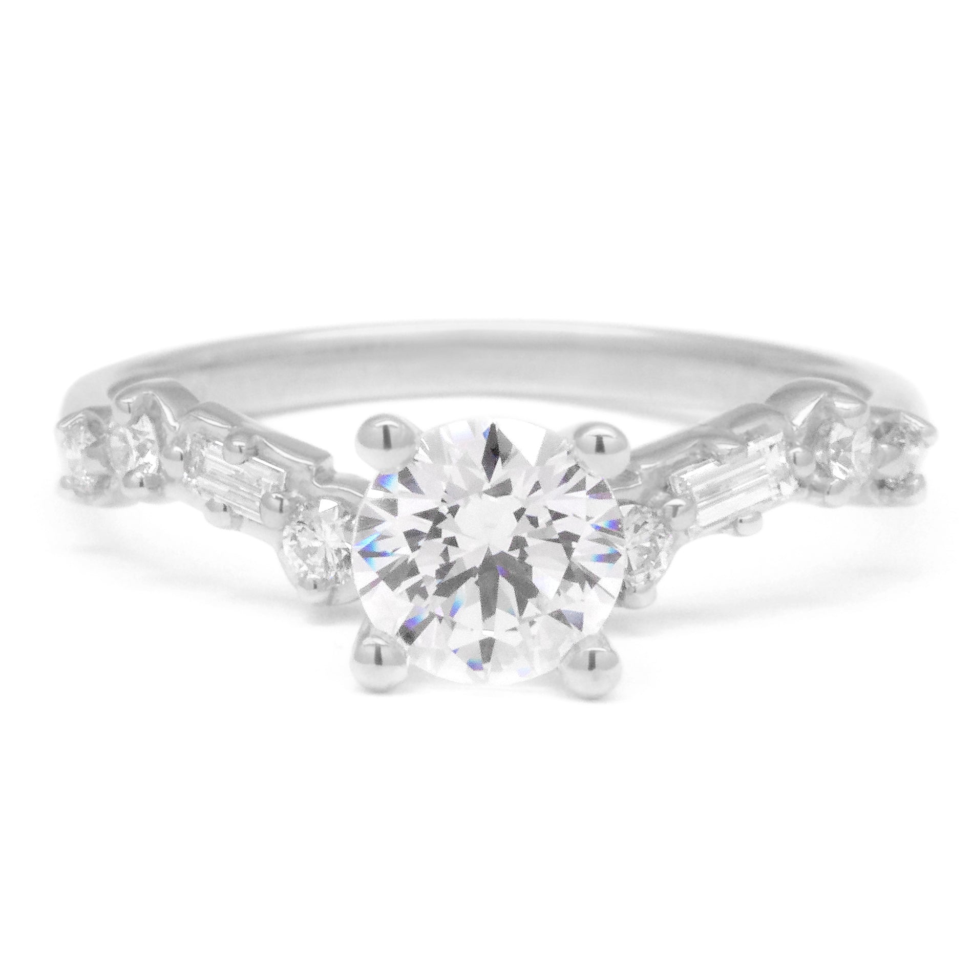 Bring your diamond to life with the unique addition of our cascade diamond shoulders. This 4 prong-set solitaire mount engagement ring is made to stack with any of our beautiful wedding bands. Comes in your choice of 14k white gold, 14k rose gold, 18k yellow gold or platinum.