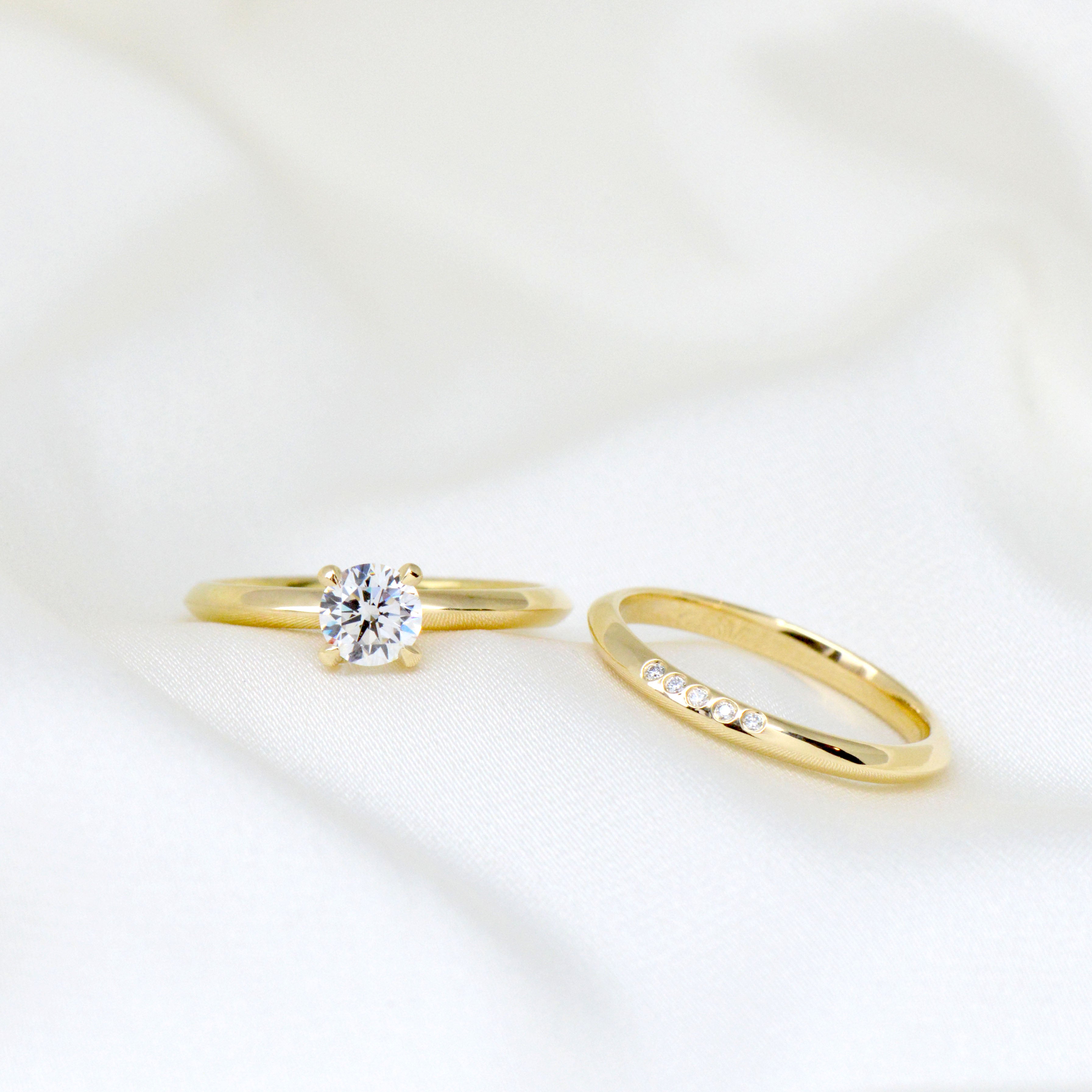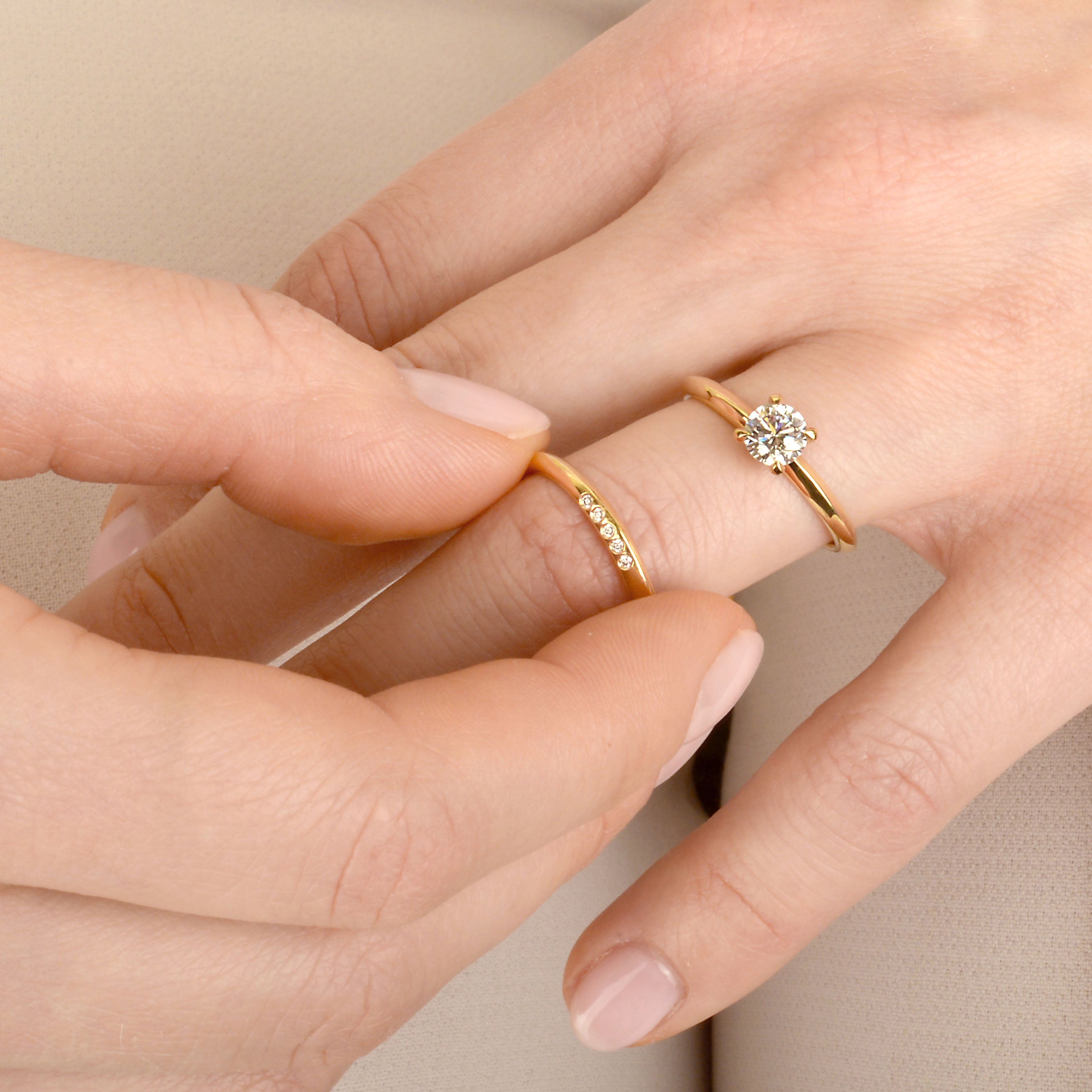 The Side Profile: Our 'swoopy' side profile is designed to stack while showcasing the diamond from the side.