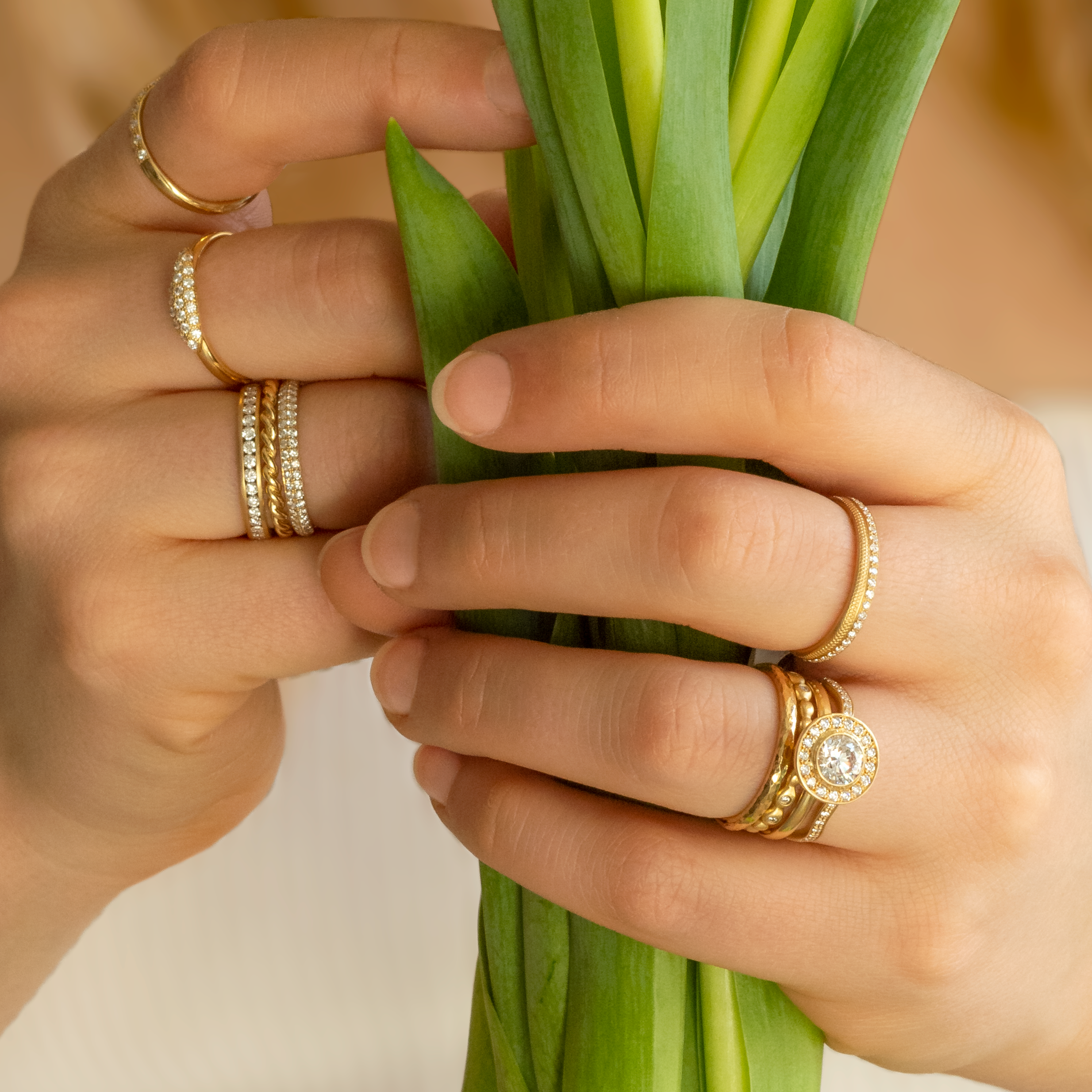 The Martini is customizable and can be used for any stone size, shape, band width, style of prong, texture, and finish on the band.