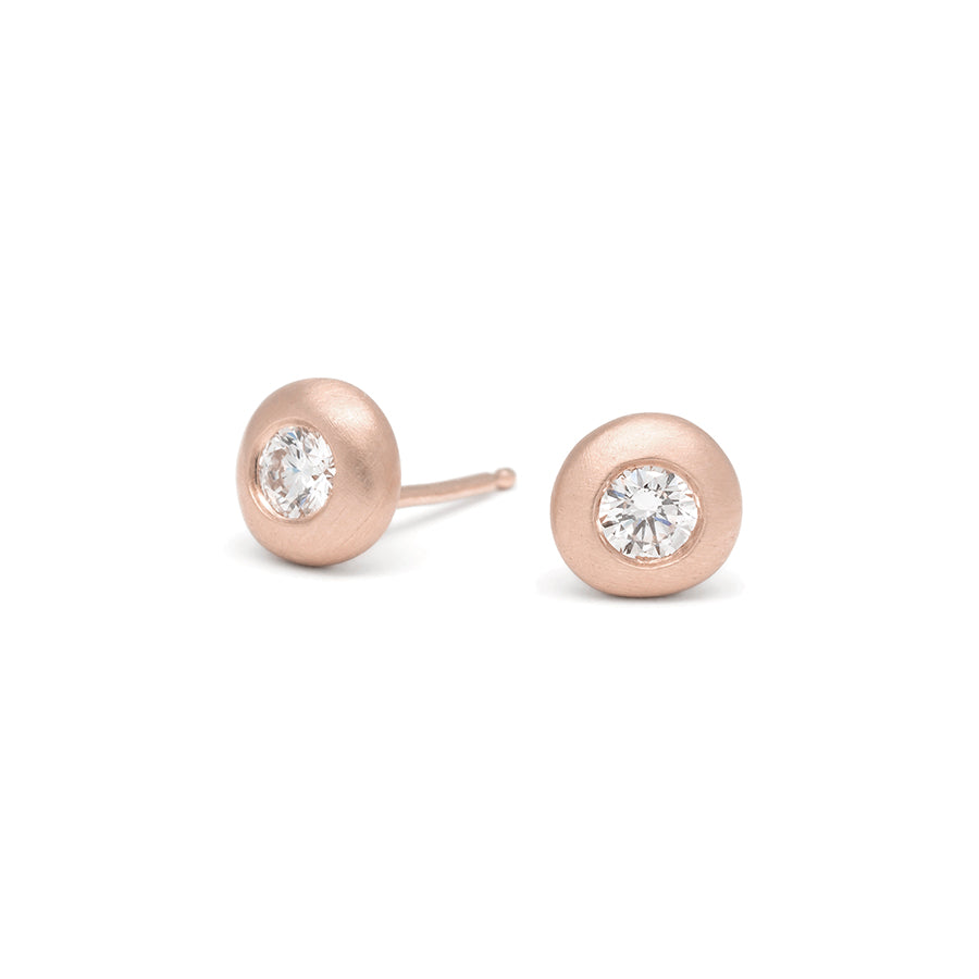 Simply stunning, fall in love with these classic diamond solitaire gold post earrings with an organic bezel.