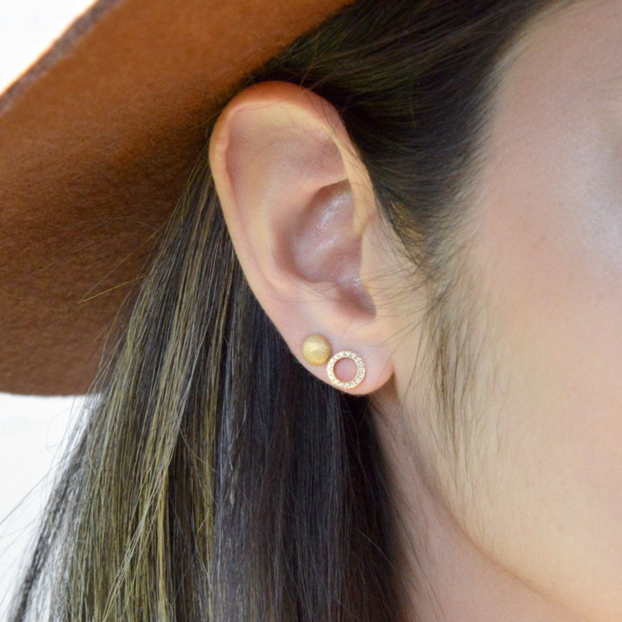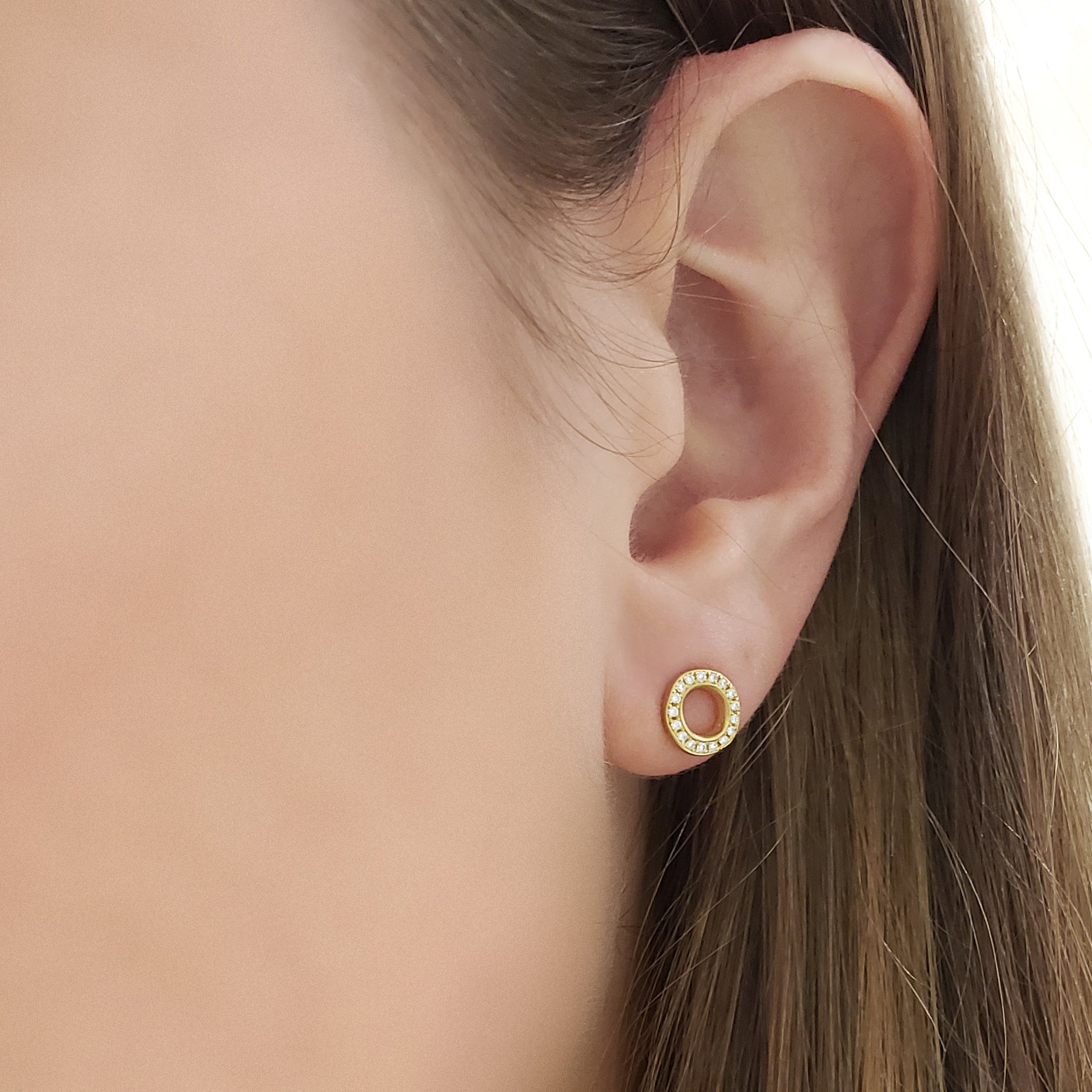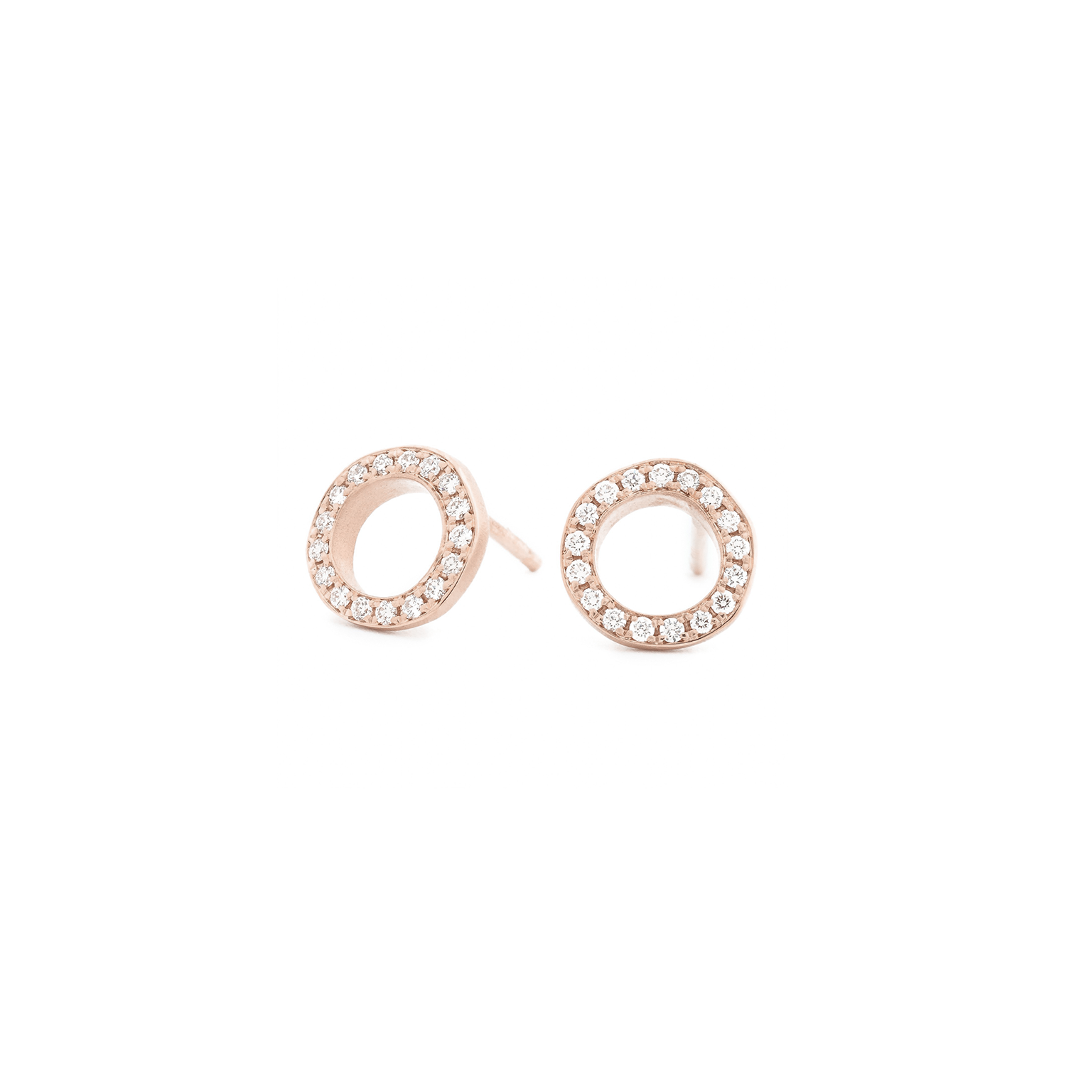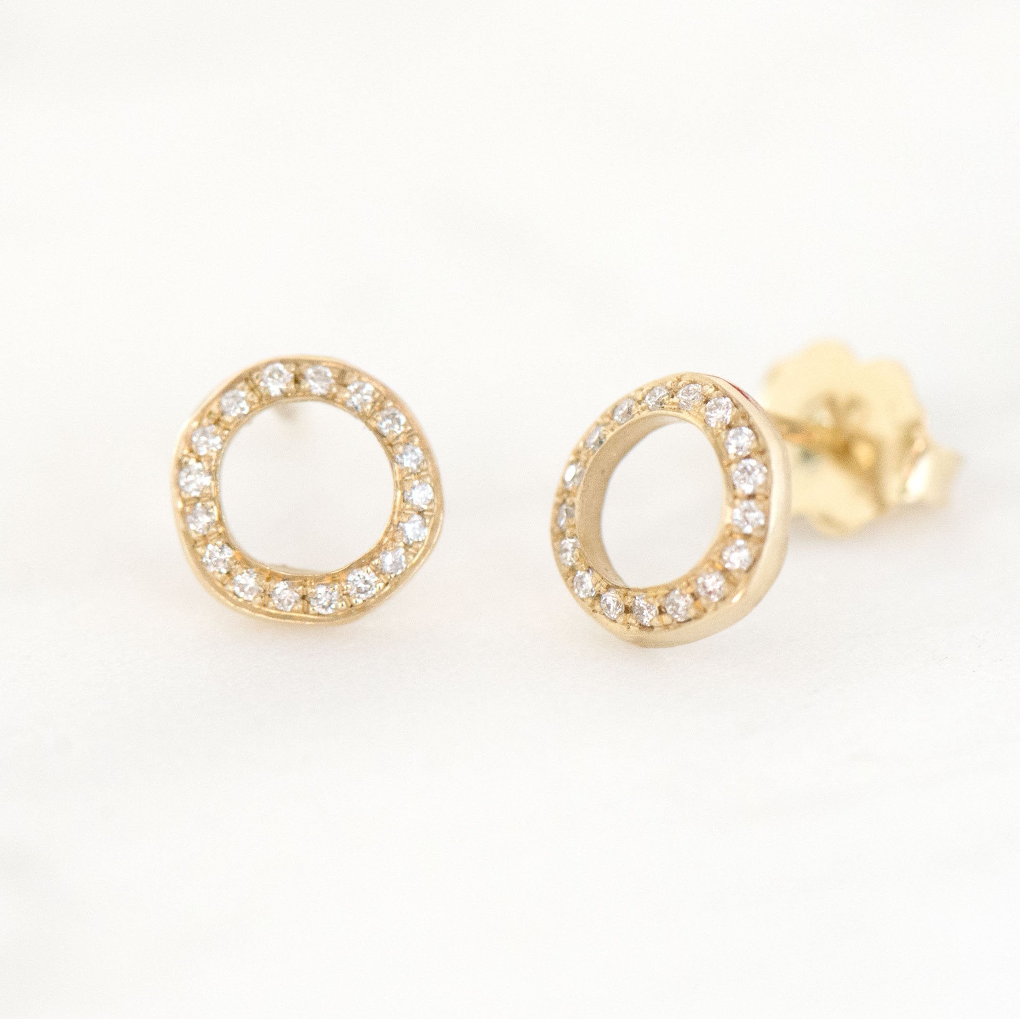 A classic piece from the "Lilydust" collection. Gold stud earrings with organic open circles edged with diamonds.