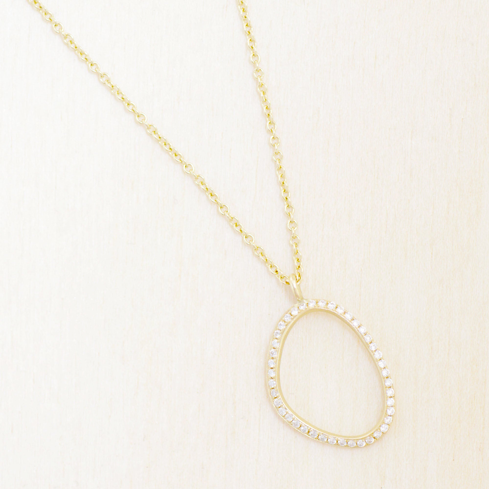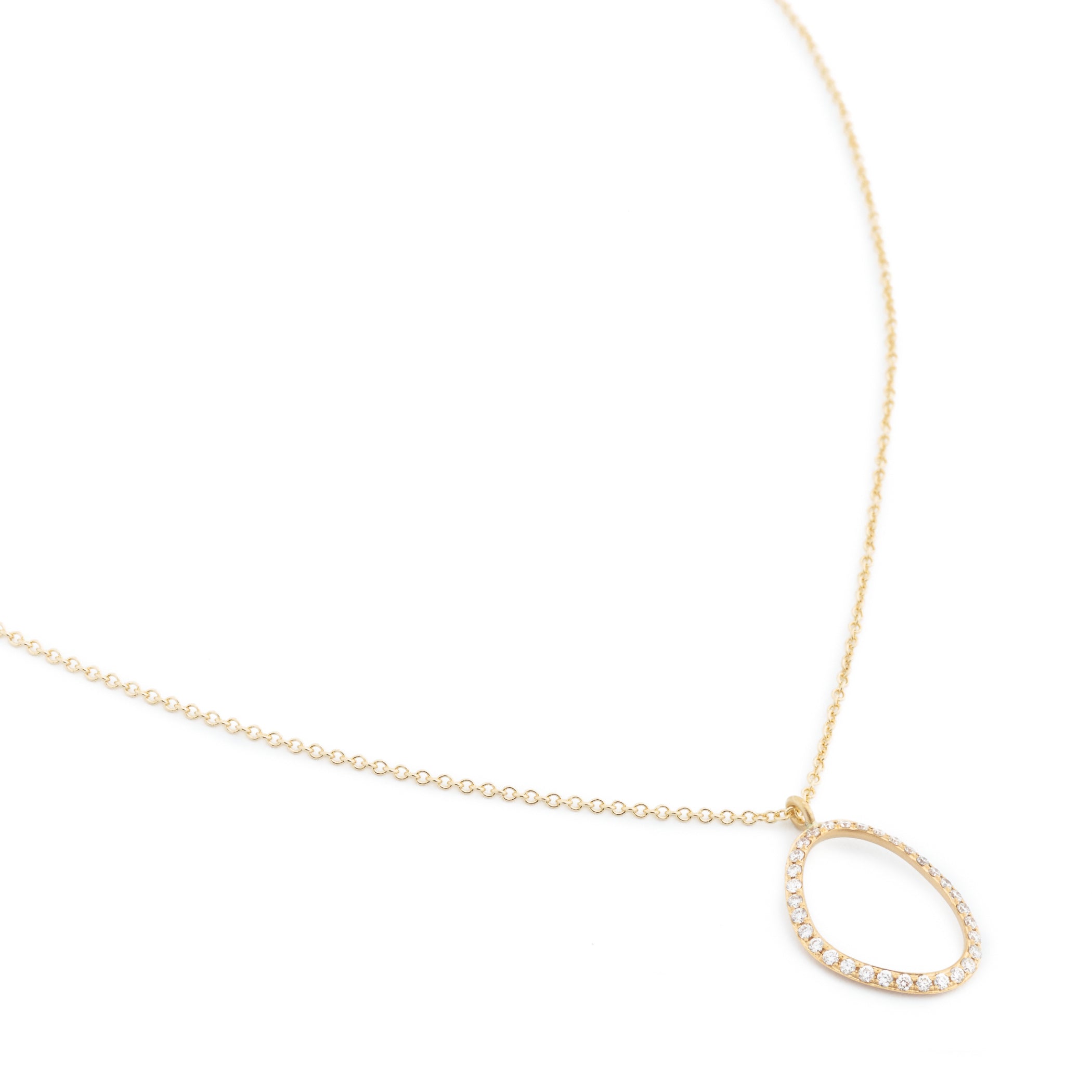 18k yellow or 14k white gold Lilydust necklace with open organic kidney shape (12x16mm) edged in ~42 x 0.003 carat diamonds ~0.12 total carat weight.