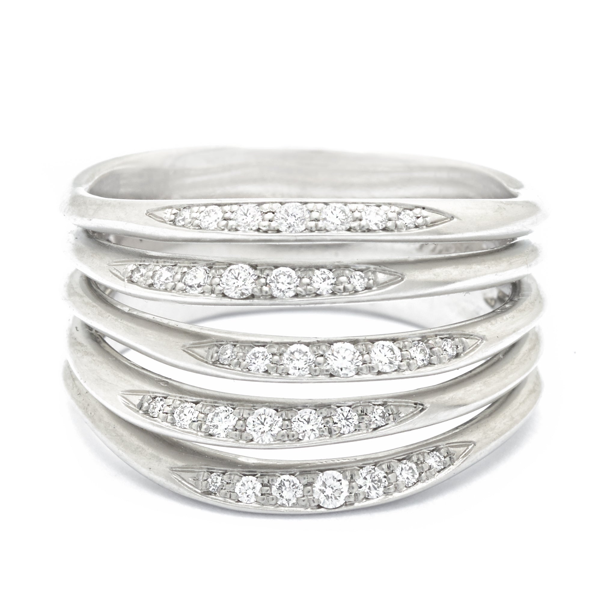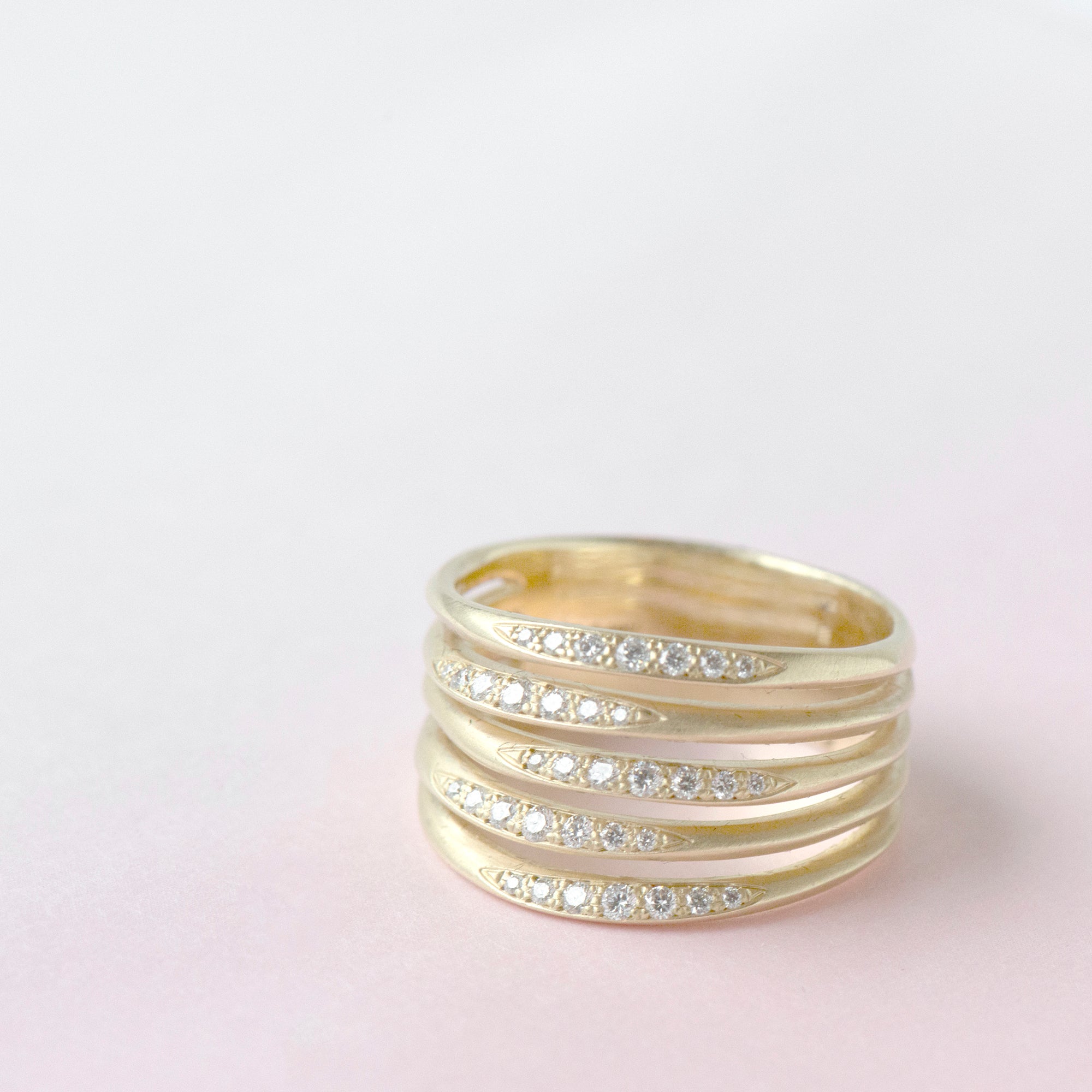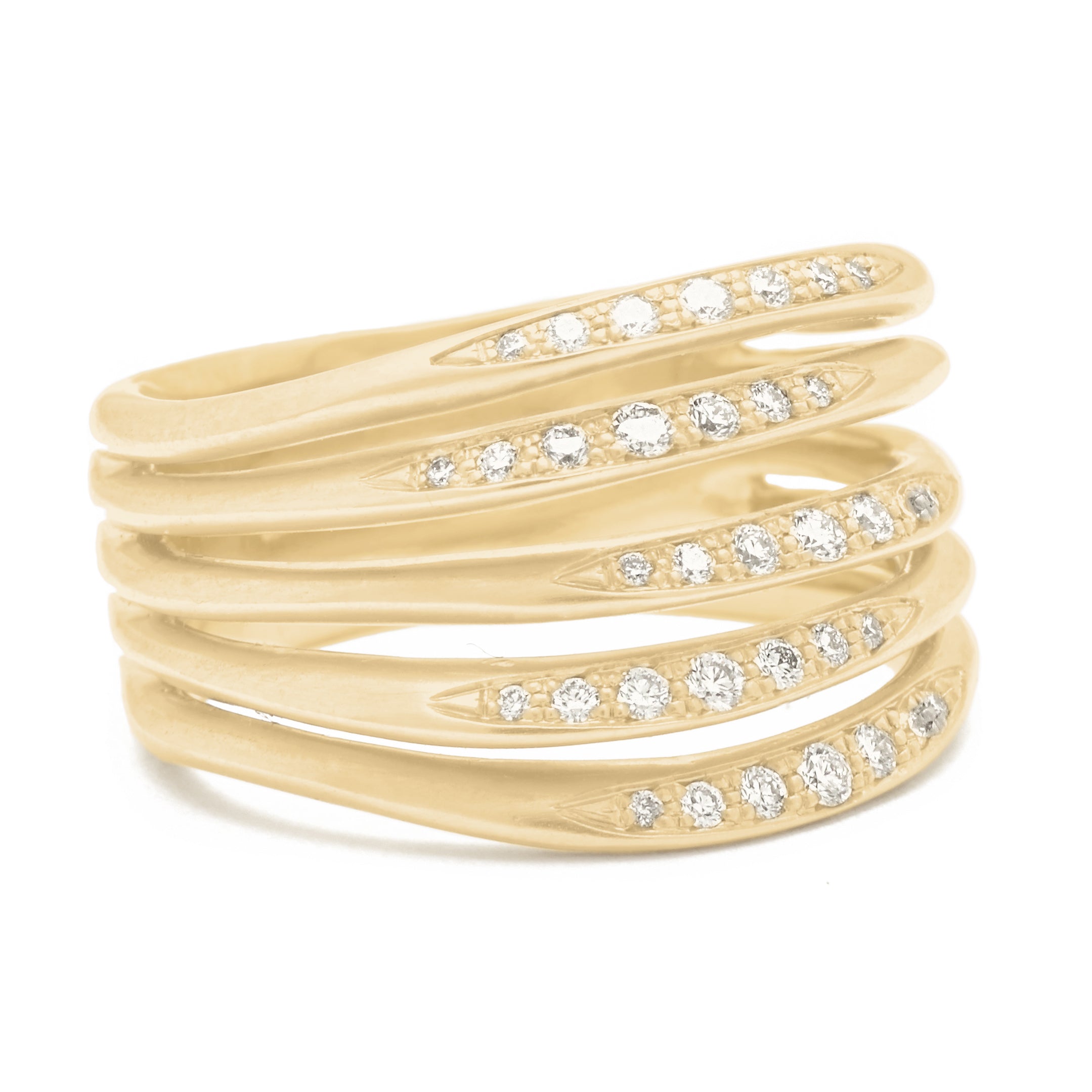 Gold 5 Flow band with paved brilliant round cut diamonds ~0.25 total carat weight.