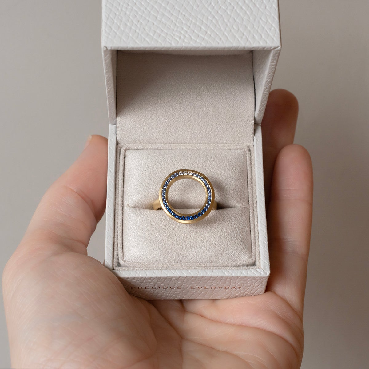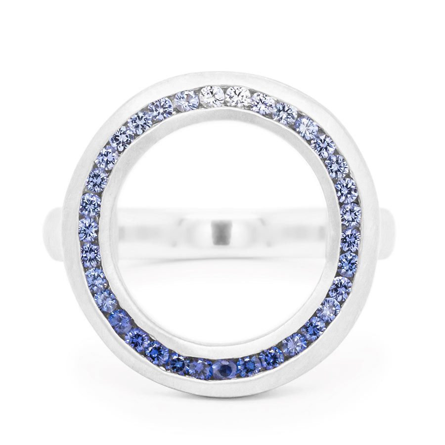 Like an enchanting sea cove... Our gorgeous organic open circle ombre blue sapphire ring transports you to a calm and beautiful moment on the water.