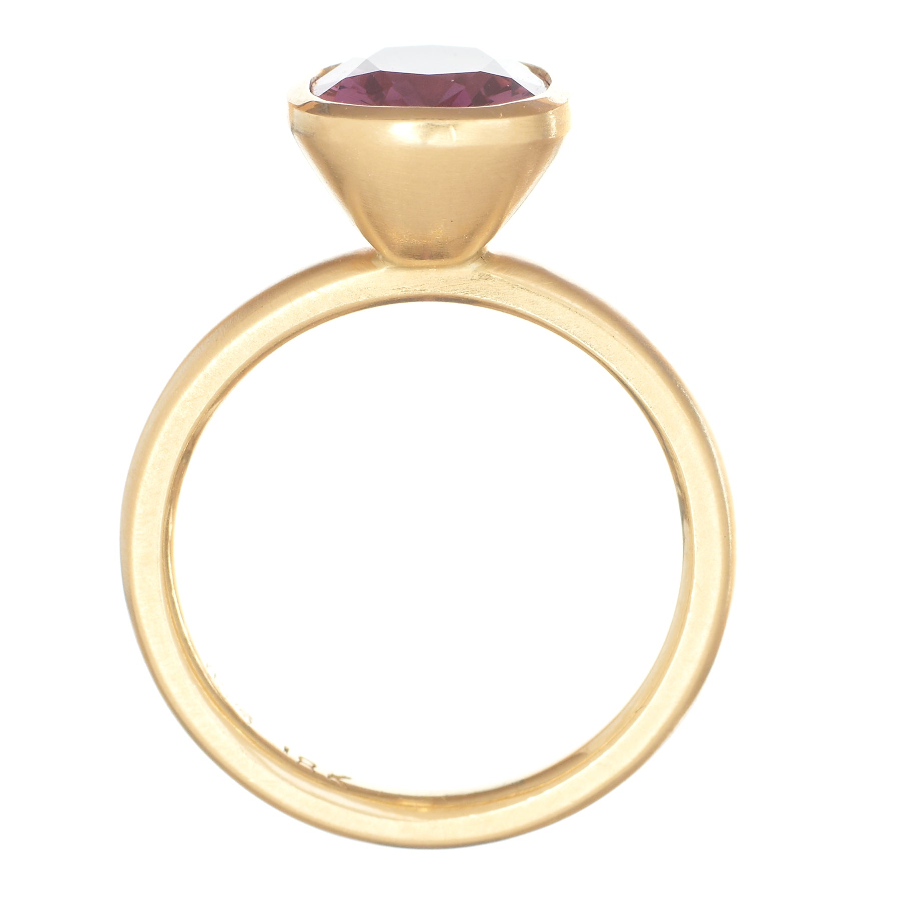 18k yellow gold ring with a beautiful bezel set oval pink/lavender oval spinel.
