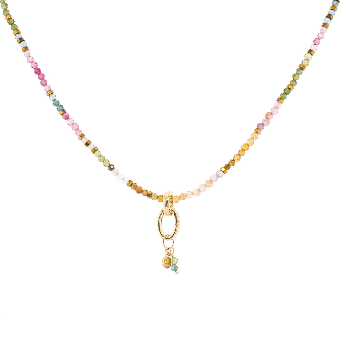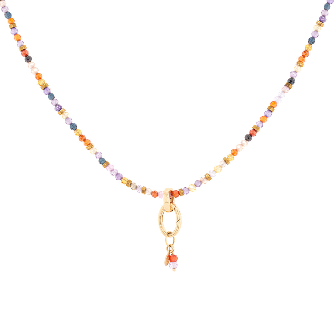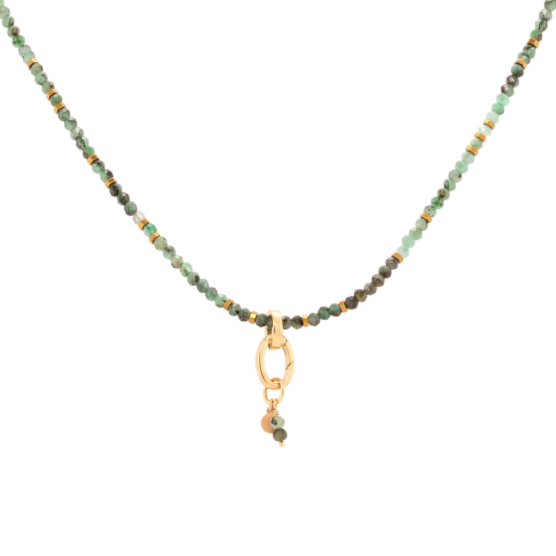 Strung 'Wrap' gemstone bead necklace with attached / integrated charm clasp.