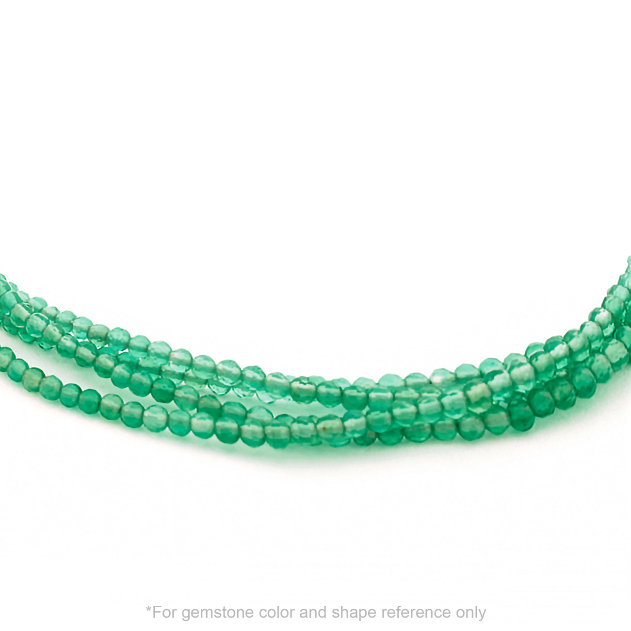 Strung on nylon coated stainless steel wire which ensures both flexibility and strength.