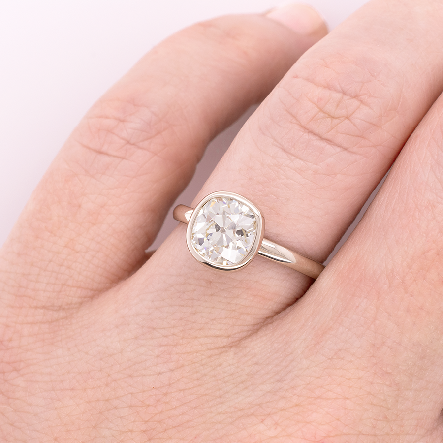 Diamond: Vintage Old Mine Cut Diamond / Q-SI2 / 7.27 x 7.19 x 4.46mm. Supplied by Misfit Diamonds.