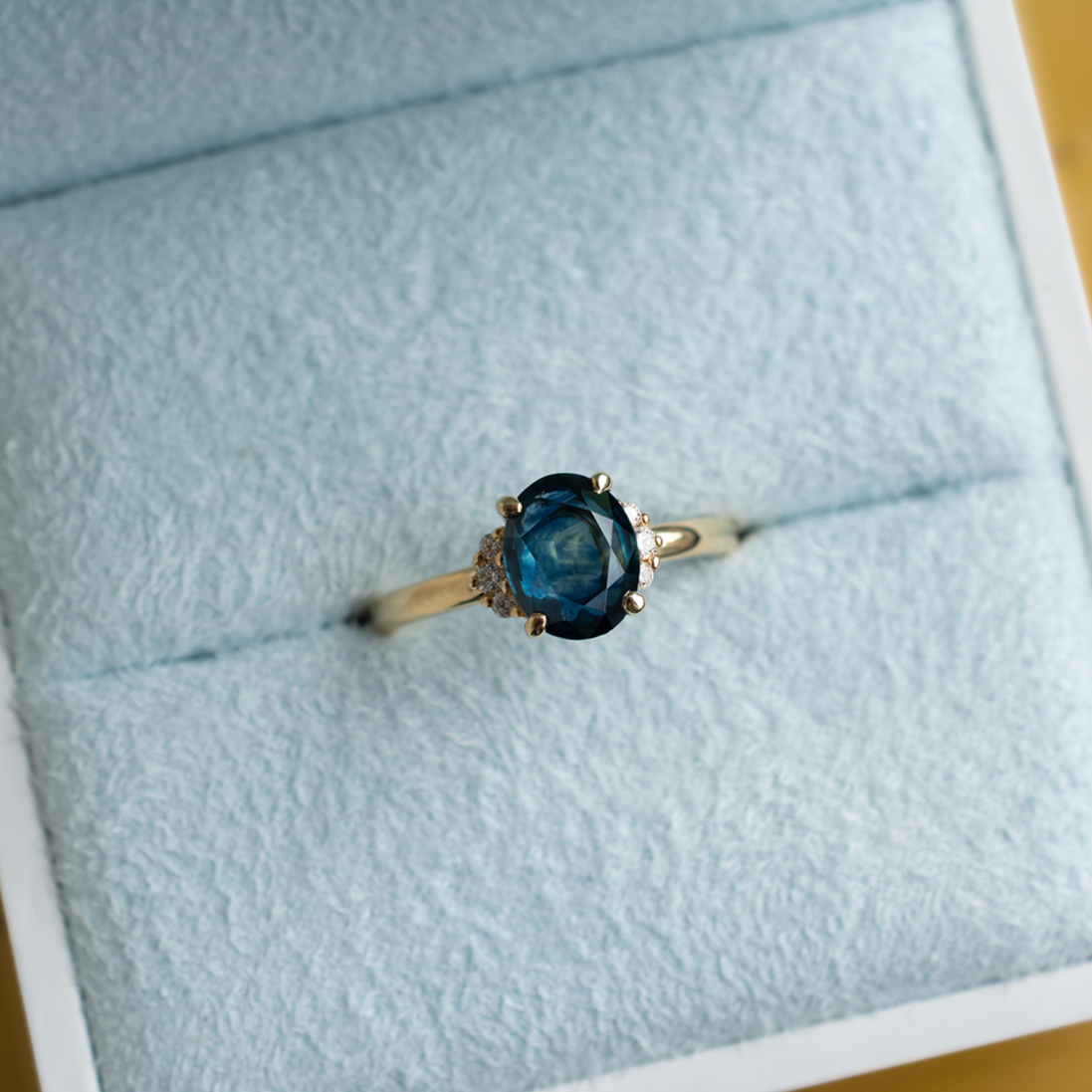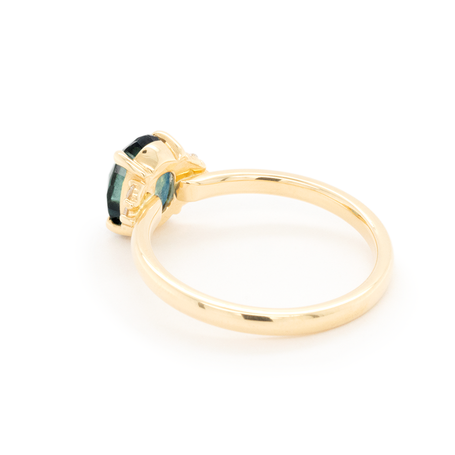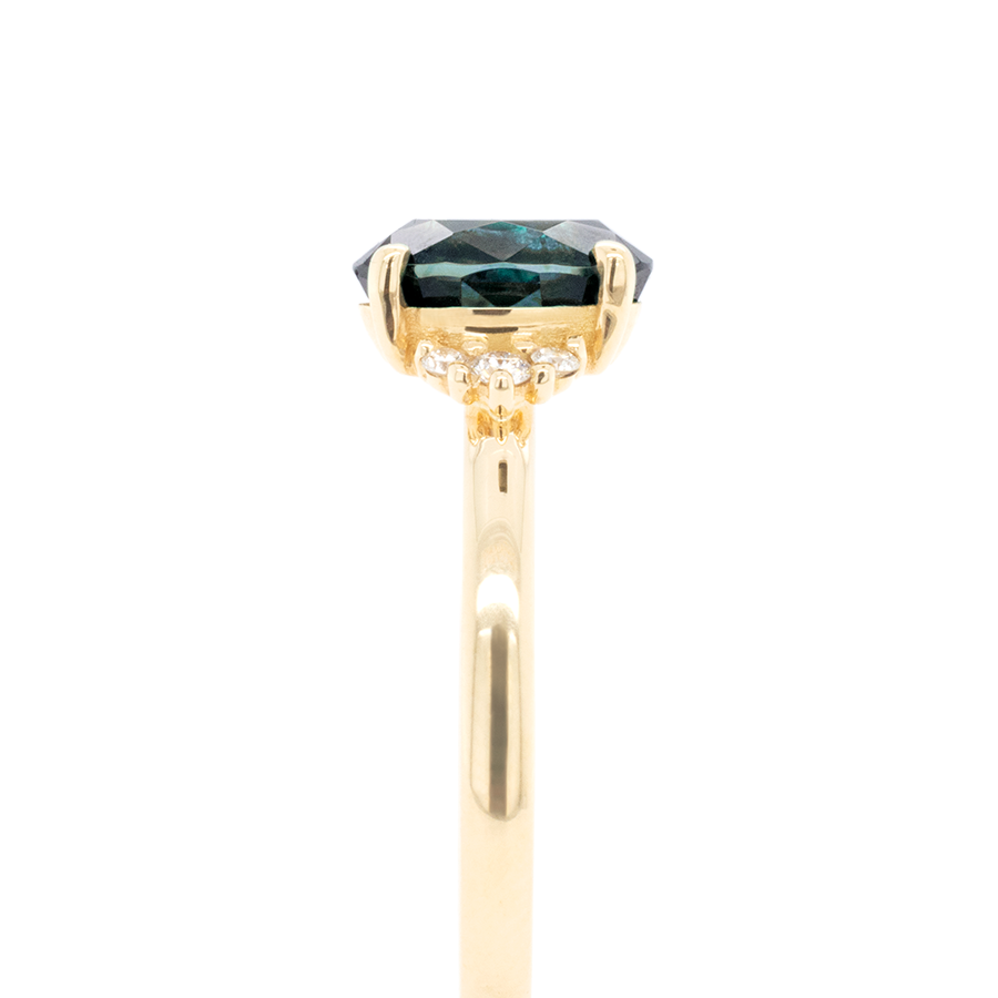 A galaxy in a stone: This Oval Montana sapphire has depth and variation that truly will entrance you. Handmade in solid 18k yellow gold and set in our classically popular Kathleen Setting. Made to stack with all of our bands.