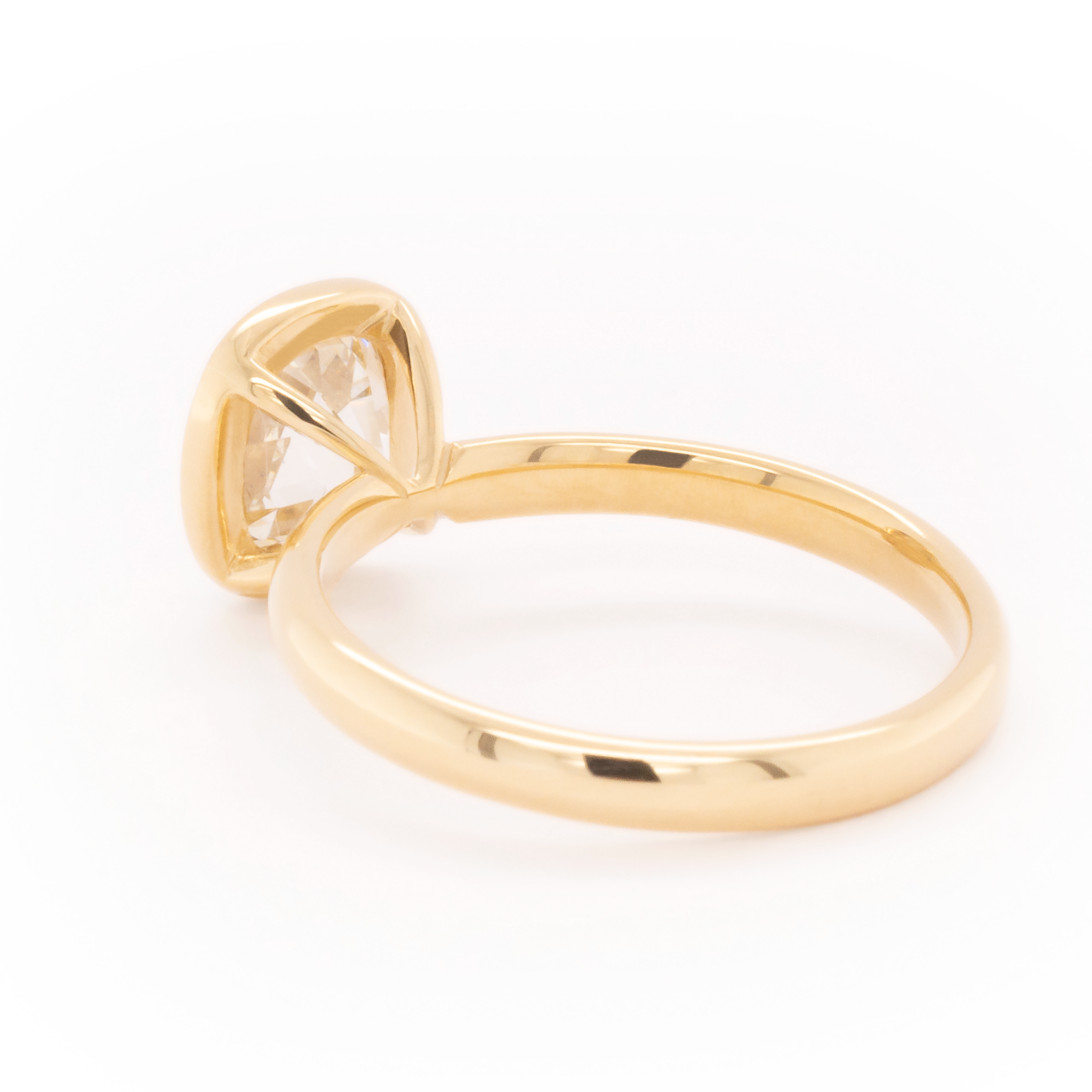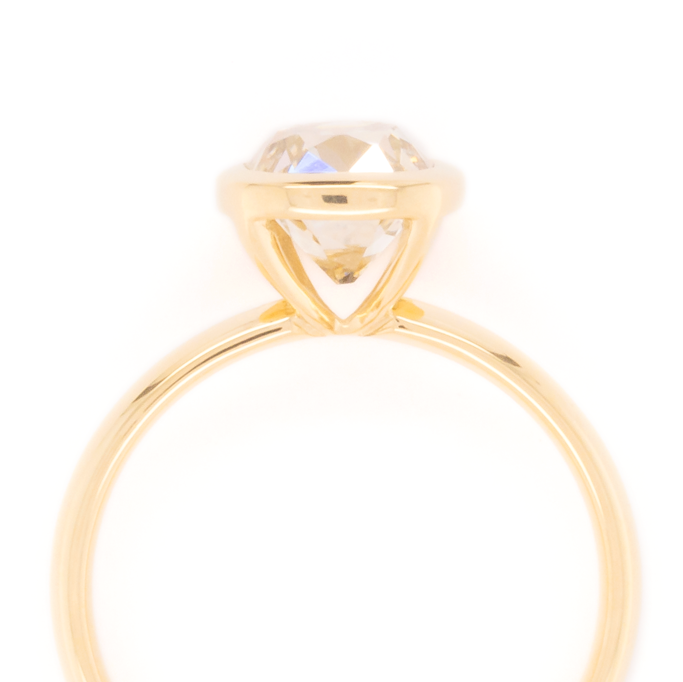Experience the timeless beauty of an antique old mine cut diamond, set in an intricate cage bezel; the perfect marriage of classic and modern styles.