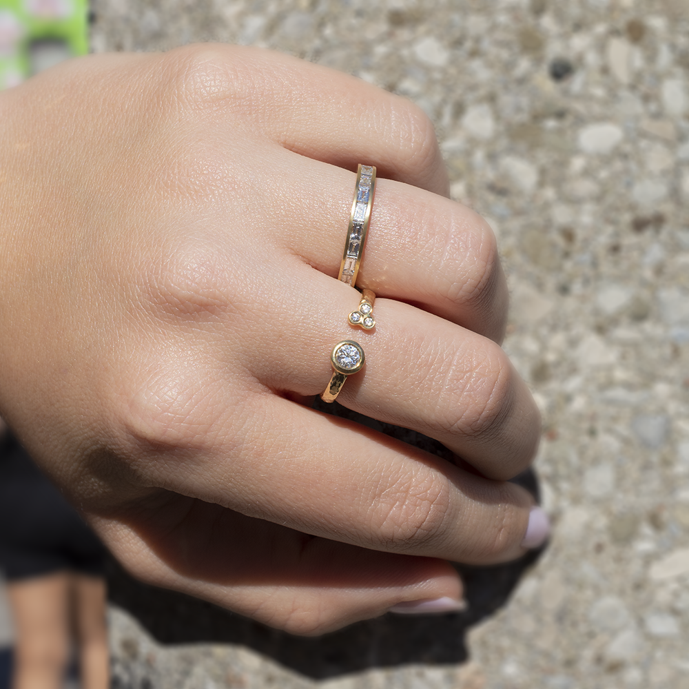 Bezel set trio of Diamonds: 3 x 1.5mm / 0.015ct G-VS