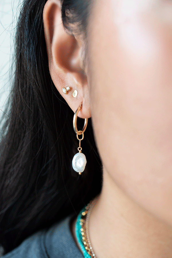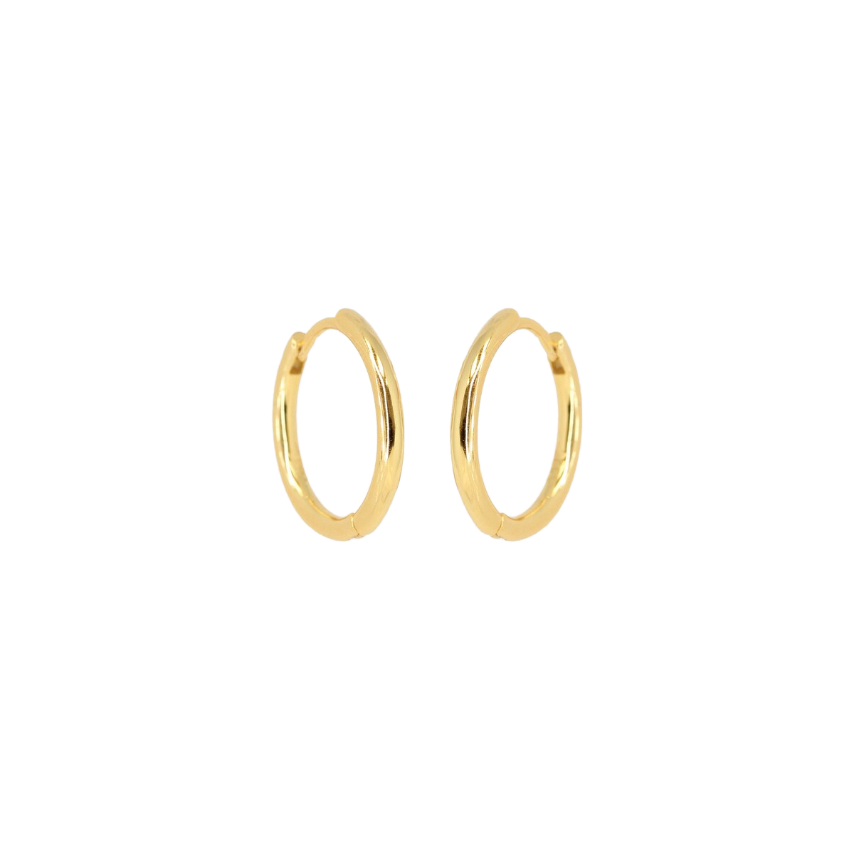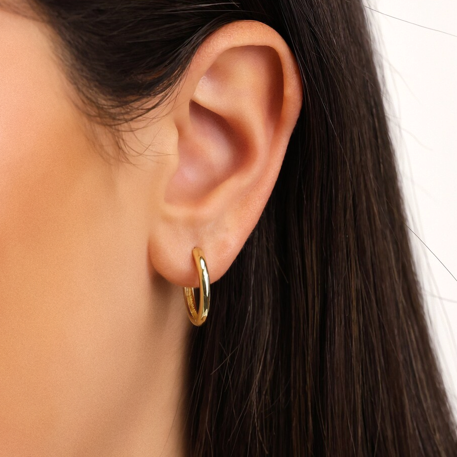 Just the right size, Just the right width, Just the right fit: The Perfect Hinge Huggie Hoop, Solid 10k yellow gold. Easily add charms to these hoops - A clever way to add variety and character to an essential hoop.