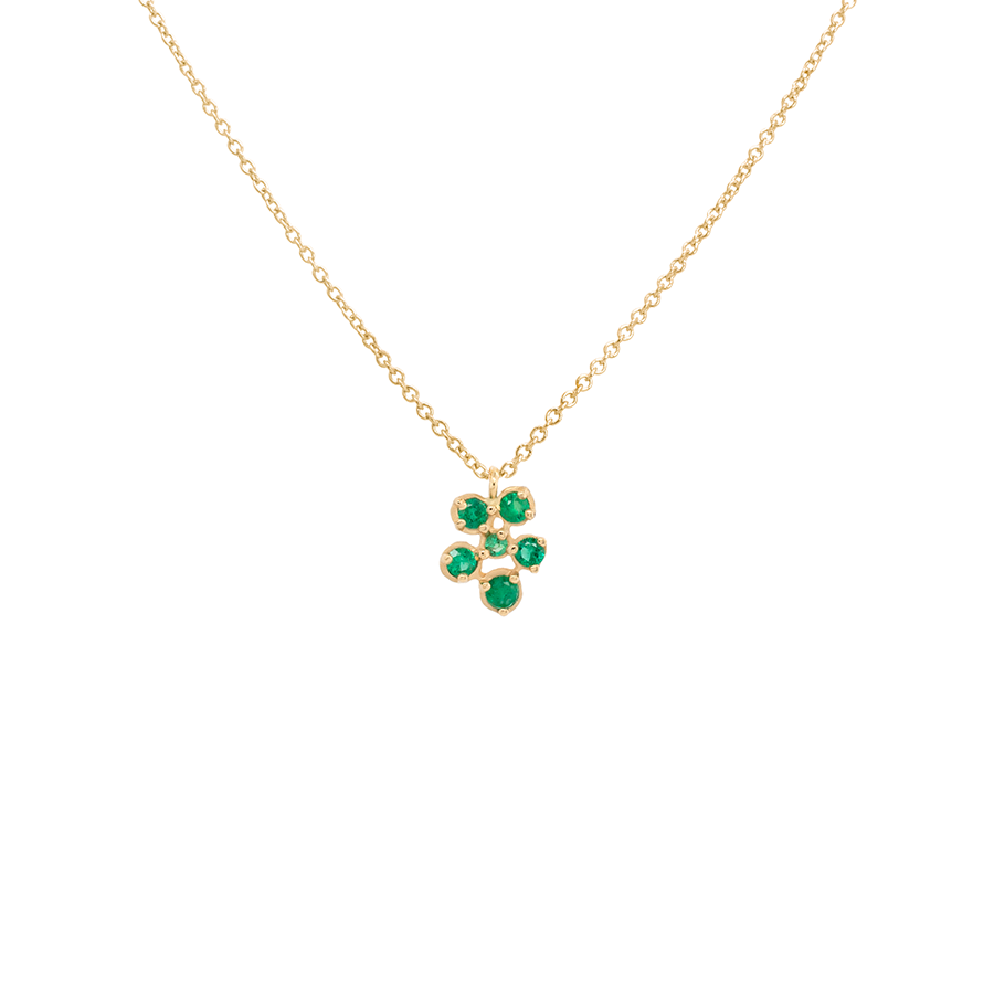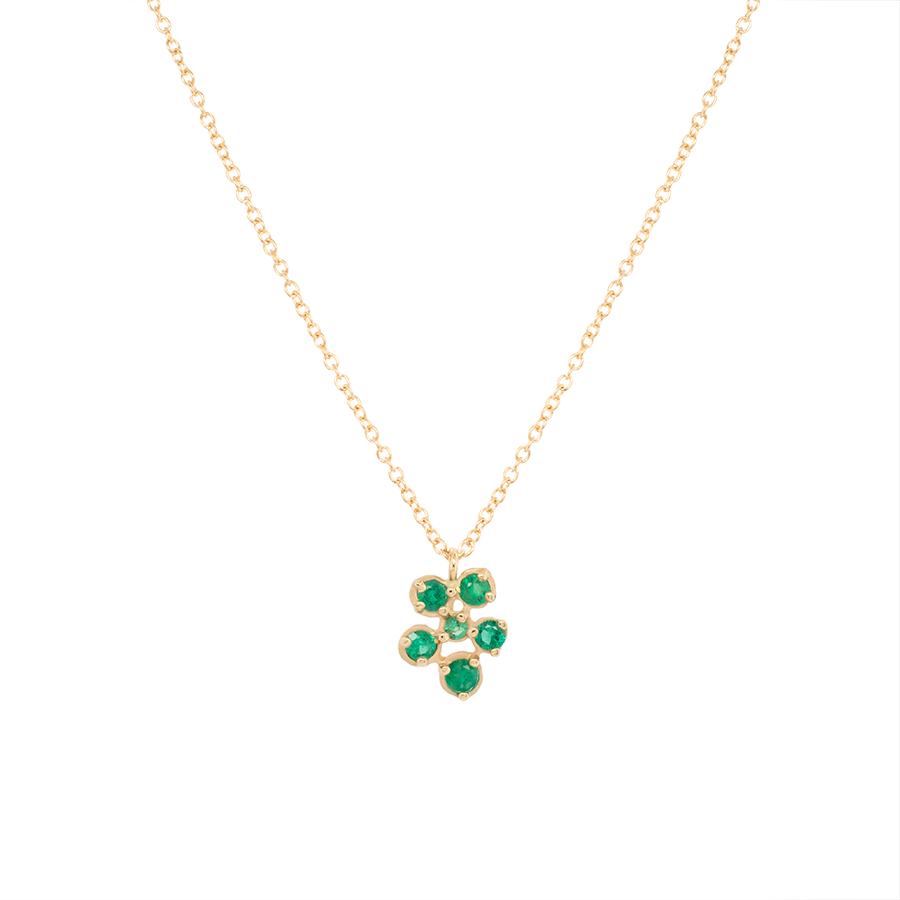 Our 'Festival' collection necklace is pure fun with a touch of sparkle! Featuring our small flower cluster of luscious emeralds, each one unique in size and colour, make every day a party with this dazzler. Sparkle without taking yourself too seriously!
