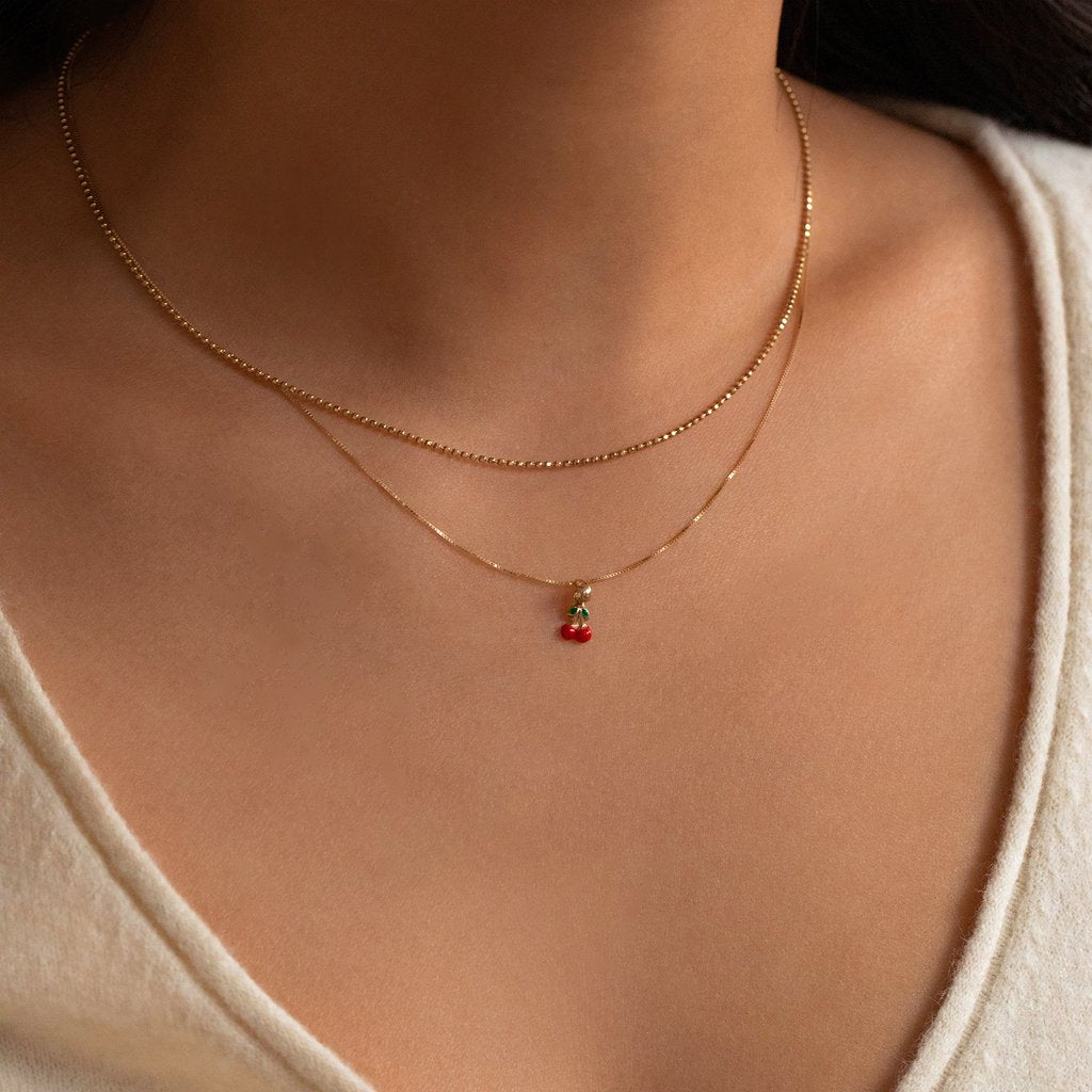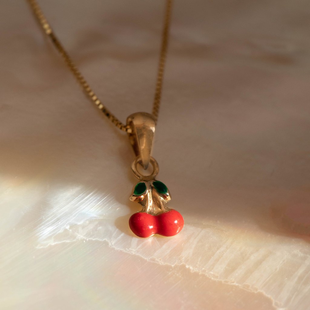 Bring a little colour to your neckline with a necklace so sweet you can almost taste it. This solid gold, enamel necklace is a sunny weather staple.