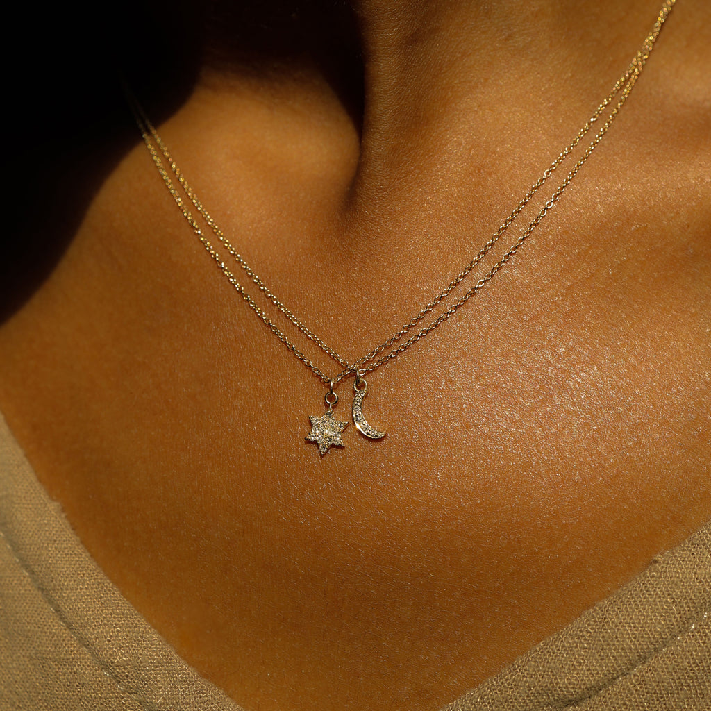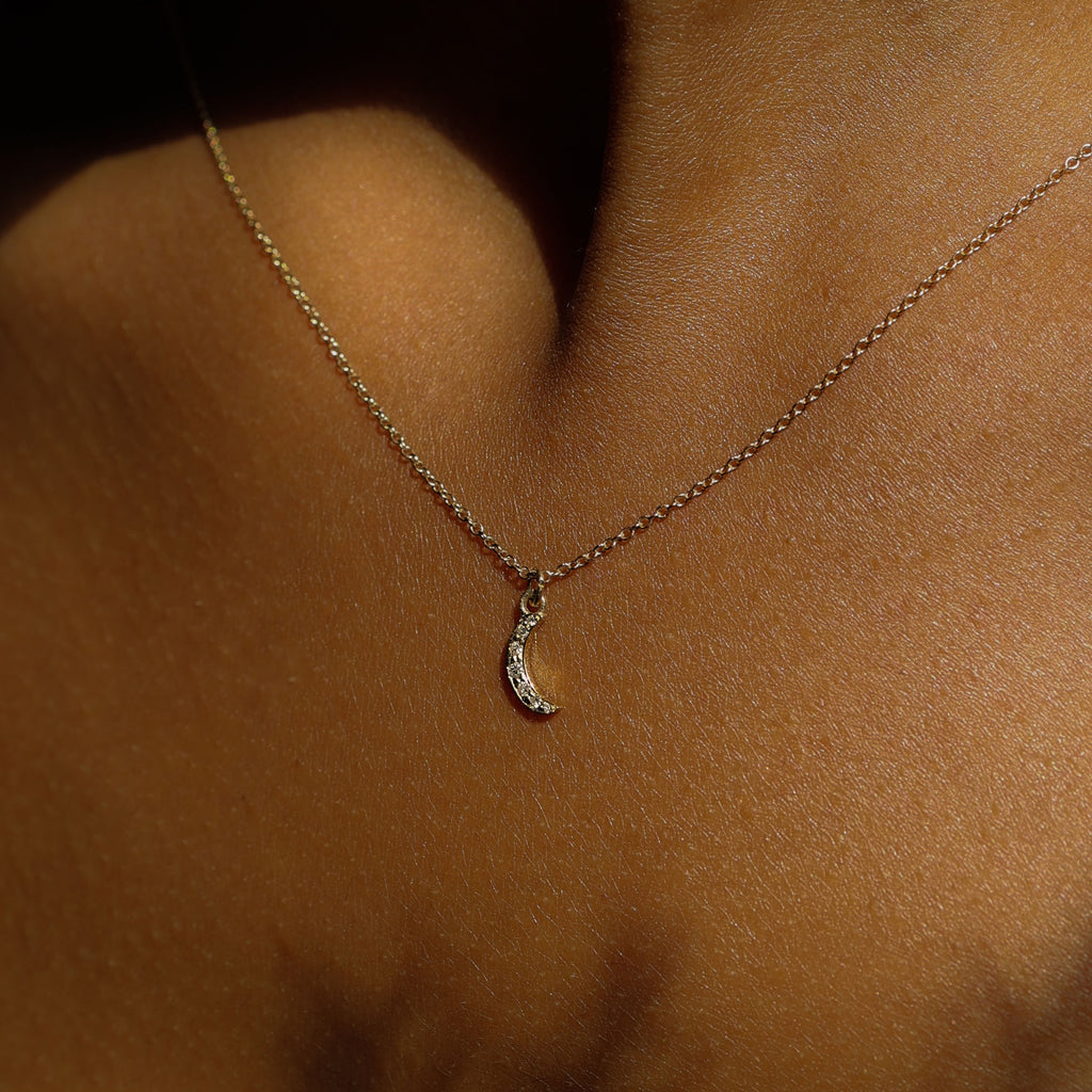 Add this tiny crescent moon for a sophisticated touch of sparkle to your neckline.